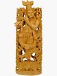 This exquisite wood carving captures the essence of Lord Krishna, the beloved deity revered across India and beyond. Depicted in his iconic form as a celestial musician, he stands serenely, his fingers gracefully poised on the flute. The gentle curve of his body and the soft smile on his face evoke a sense of profound peace and divine joy. The intricate details of his ornate attire, adorned with floral motifs and elaborate borders, speak to the opulence and artistry of his divine persona. The carving is rendered in lustrous white cedar wood, sourced from the verdant region of Trivandrum, a wood known for its fine grain and enduring beauty, making this a piece that will grace any space for generations.