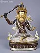 13" Seated Tibetan Buddhist Manjushree With Sword In Copper Gold Plated | Handmade