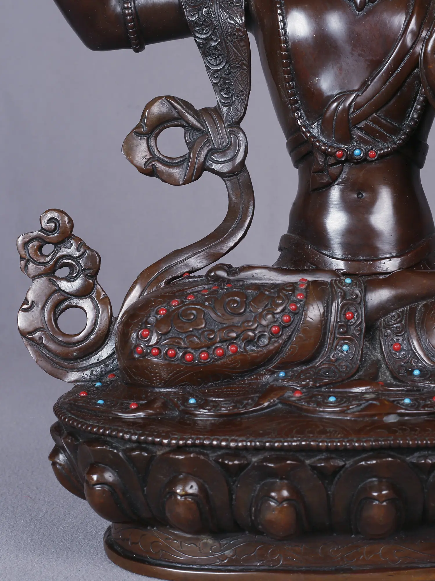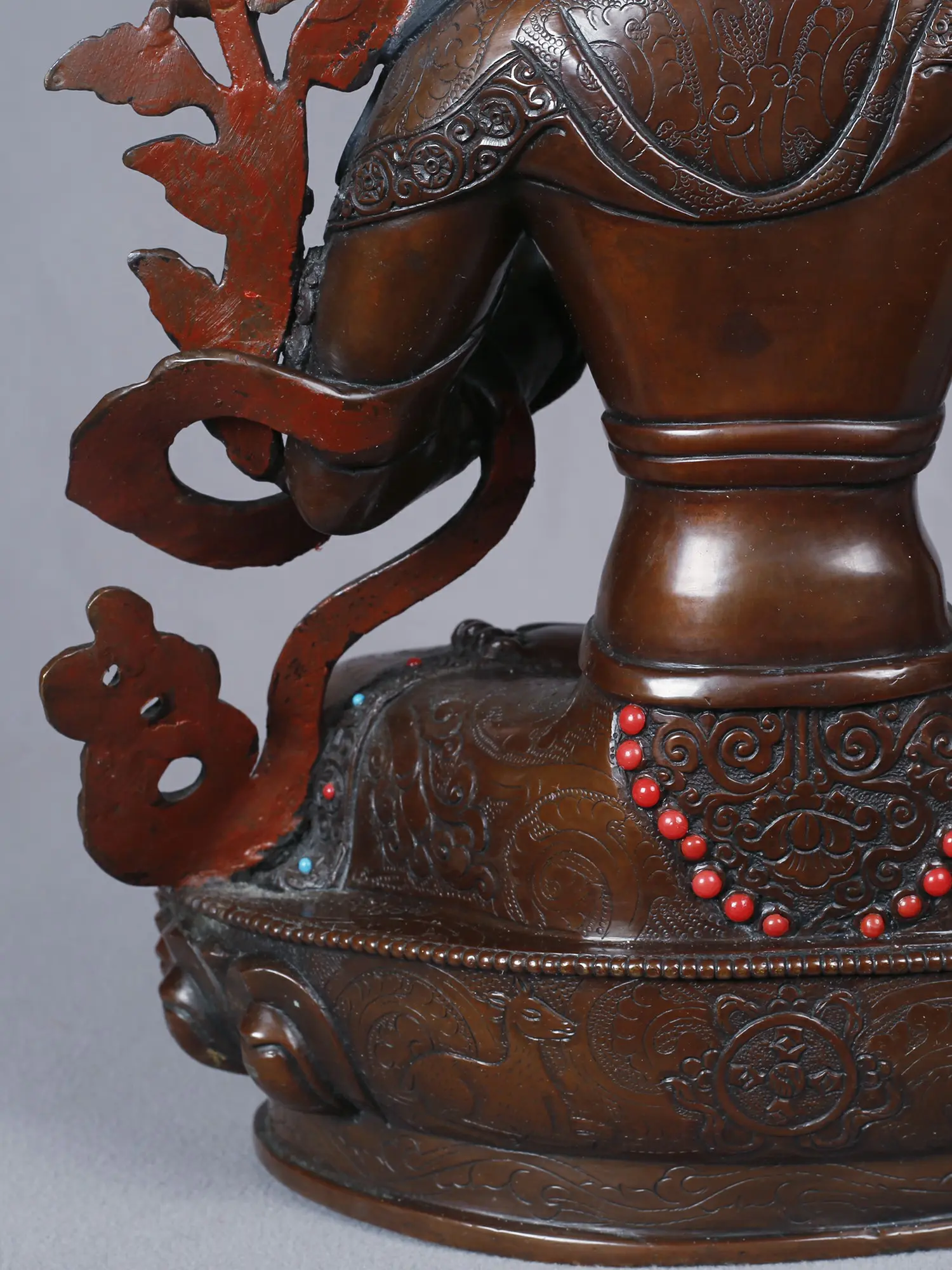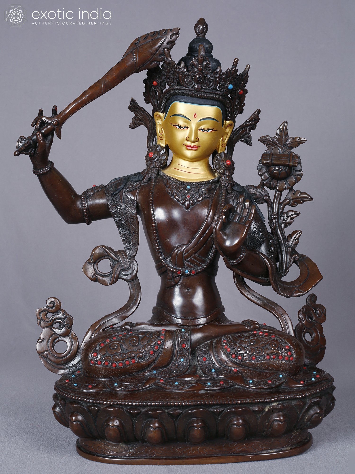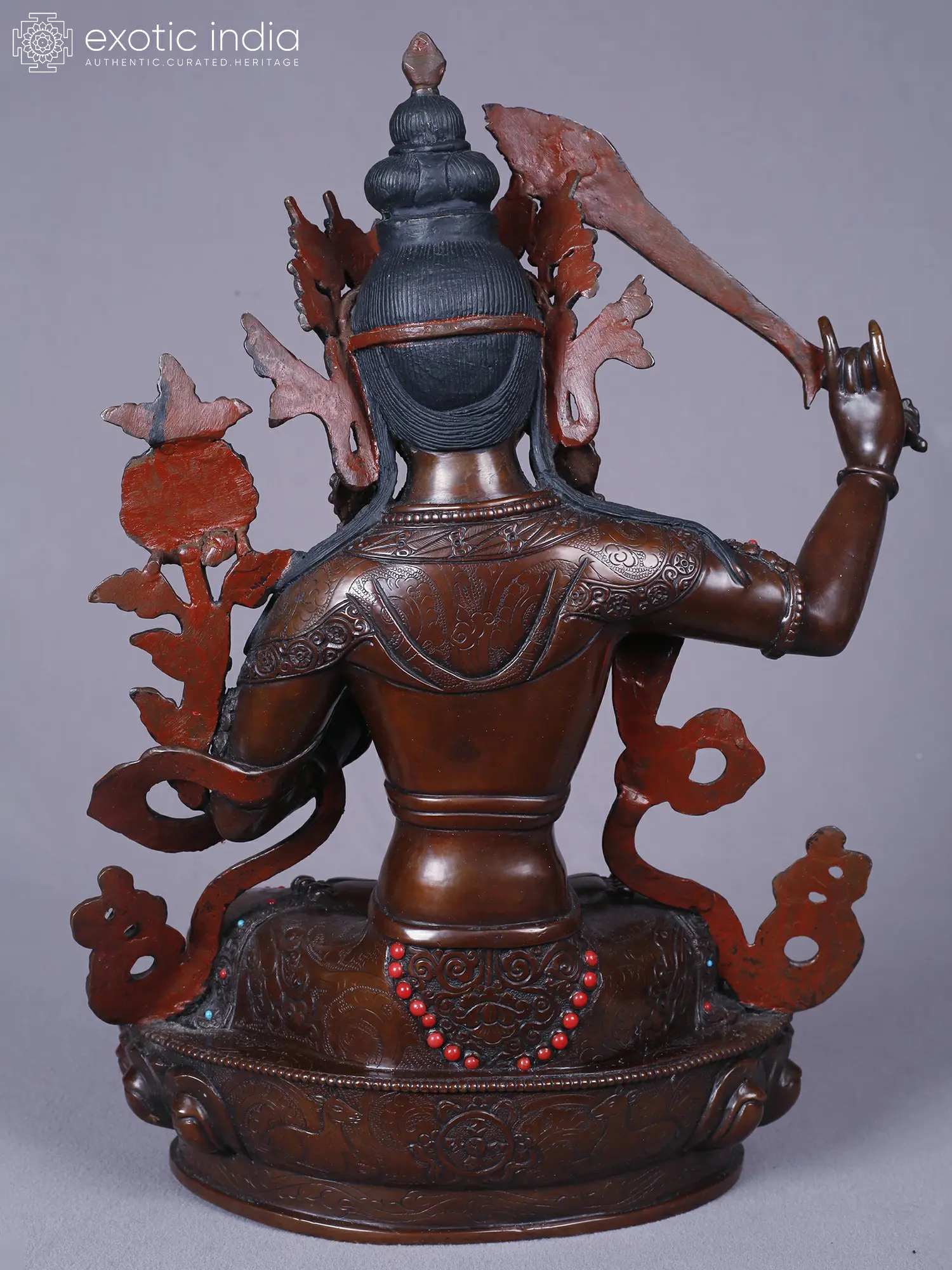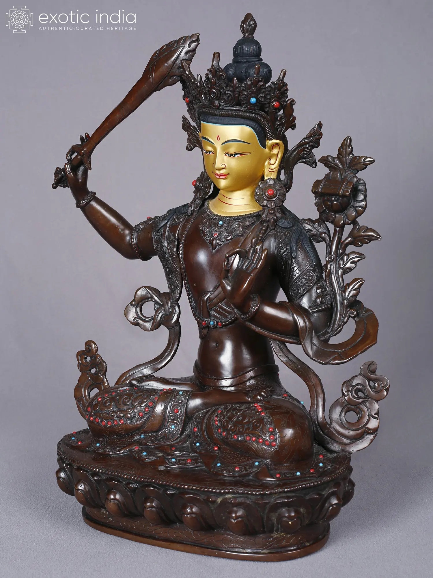 Lord Manjushree Buddhist Deity Idol | Copper with Gold and Silver Plated | Handmade Exquisite Art