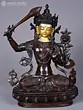 13" Seated Tibetan Buddhist Manjushree With Sword In Copper Gold Plated | Handmade