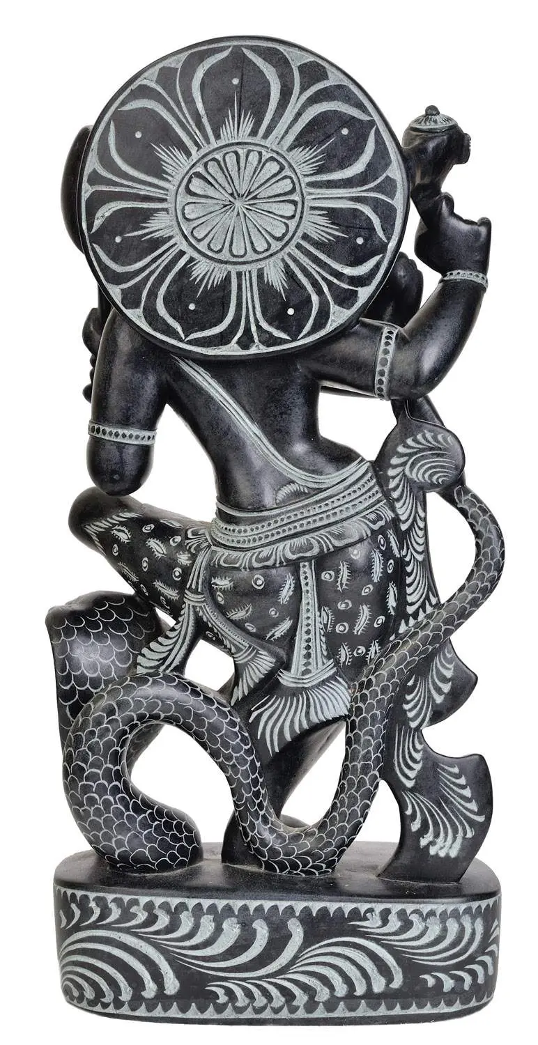 Observe the exquisite detailing that brings this divine figure to life. The graceful flow of the serpent entwined around the dancer's form, its scales rendered with remarkable precision, adds a captivating layer of symbolism. You'll appreciate the intricate adornments, the textured garments, and the serene yet powerful expression on the deity's face, all culminating in a composition that is both aesthetically striking and spiritually resonant. The overall dimensions of 10.0 x 5.0 x 2.4 inches allow it to be a substantial yet elegantly proportioned addition to any collection.