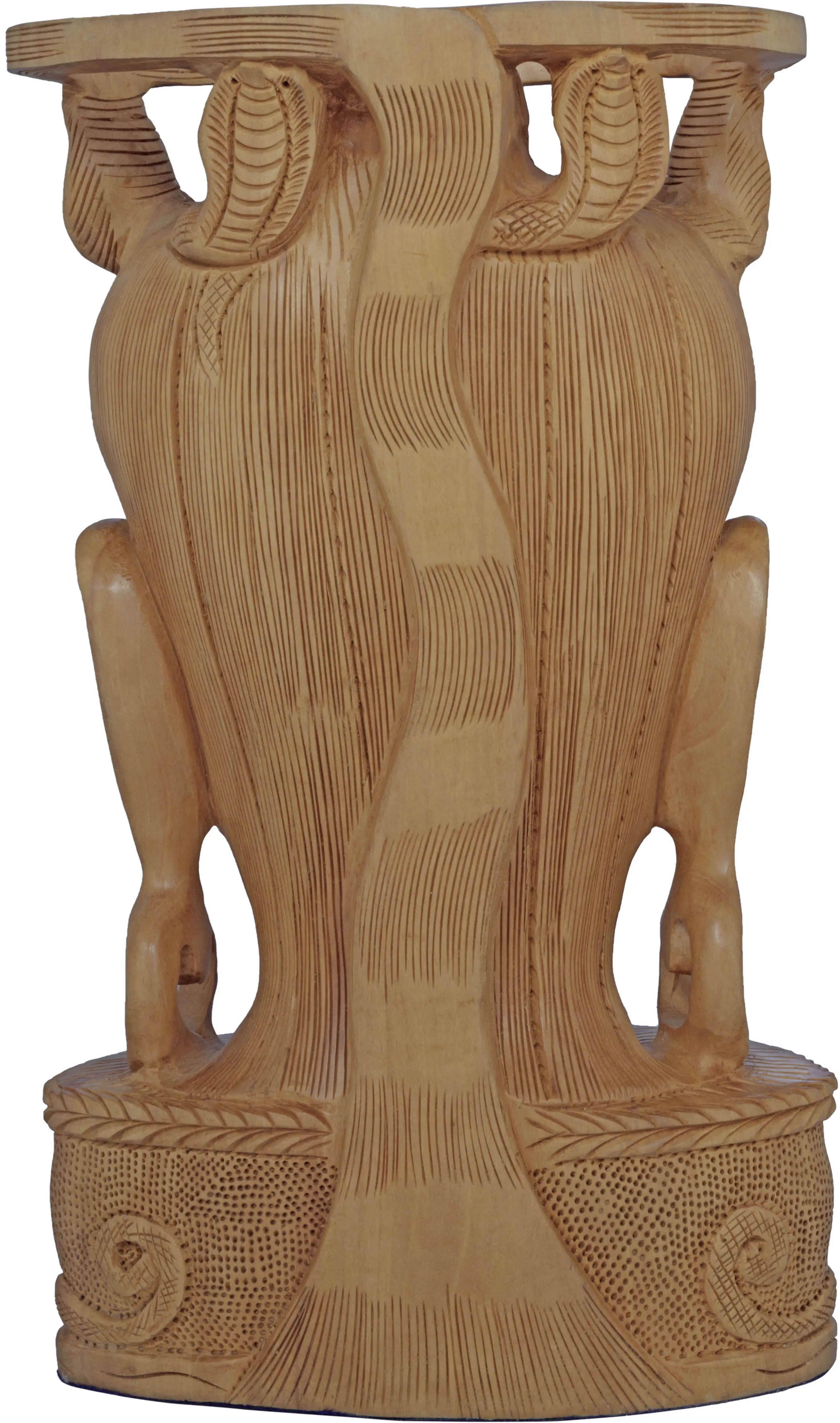This statue is a testament to the artistry of traditional wood carving. Each line and contour has been carefully shaped to bring forth the divine form. The artist's skill is evident in the delicate rendering of the facial features, the textures of the hair and cobra, and the symbolic motifs that enrich the overall composition. The warm, natural hue of the wood enhances the spiritual aura of the piece, offering a tactile connection to ancient traditions and craftsmanship. This is more than just a decorative item; it's a piece of art imbued with deep cultural and spiritual significance.