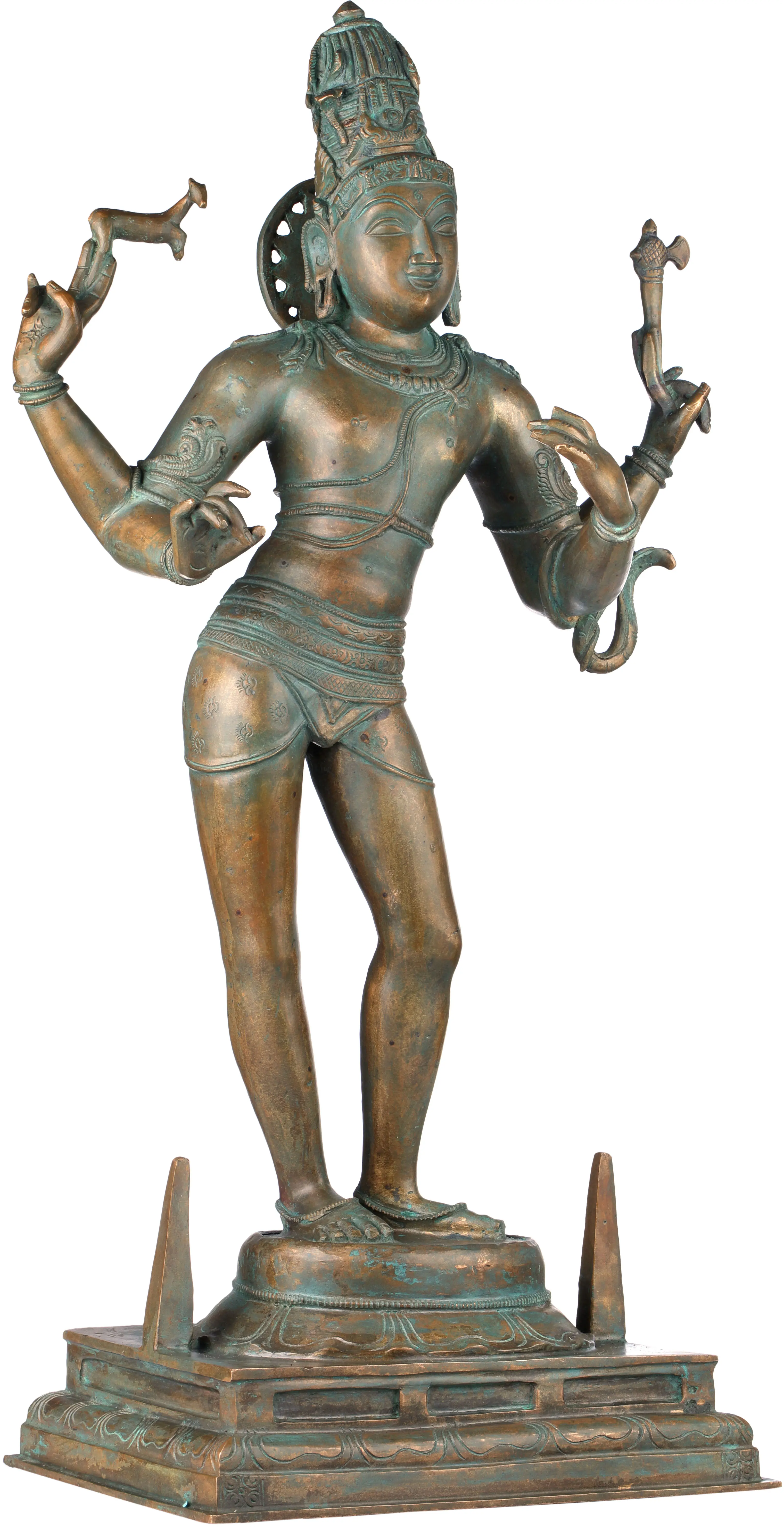 This masterpiece is born from the legacy of Swamimalai, a village in Tamil Nadu that has preserved the ancient art of lost-wax bronze casting for centuries. The Panchaloha technique, which uses five metals, is believed to impart auspicious qualities to the finished idols. Each line, curve, and detail of this sculpture reflects the dedication and skill passed down through generations of artisans. Owning this statue is not merely acquiring an object of art, but a piece of living heritage, a divine presence that resonates with centuries of devotion and artistic excellence. It is a truly magnificent addition to any sacred space or art collection, embodying divine power, cosmic order, and profound beauty.