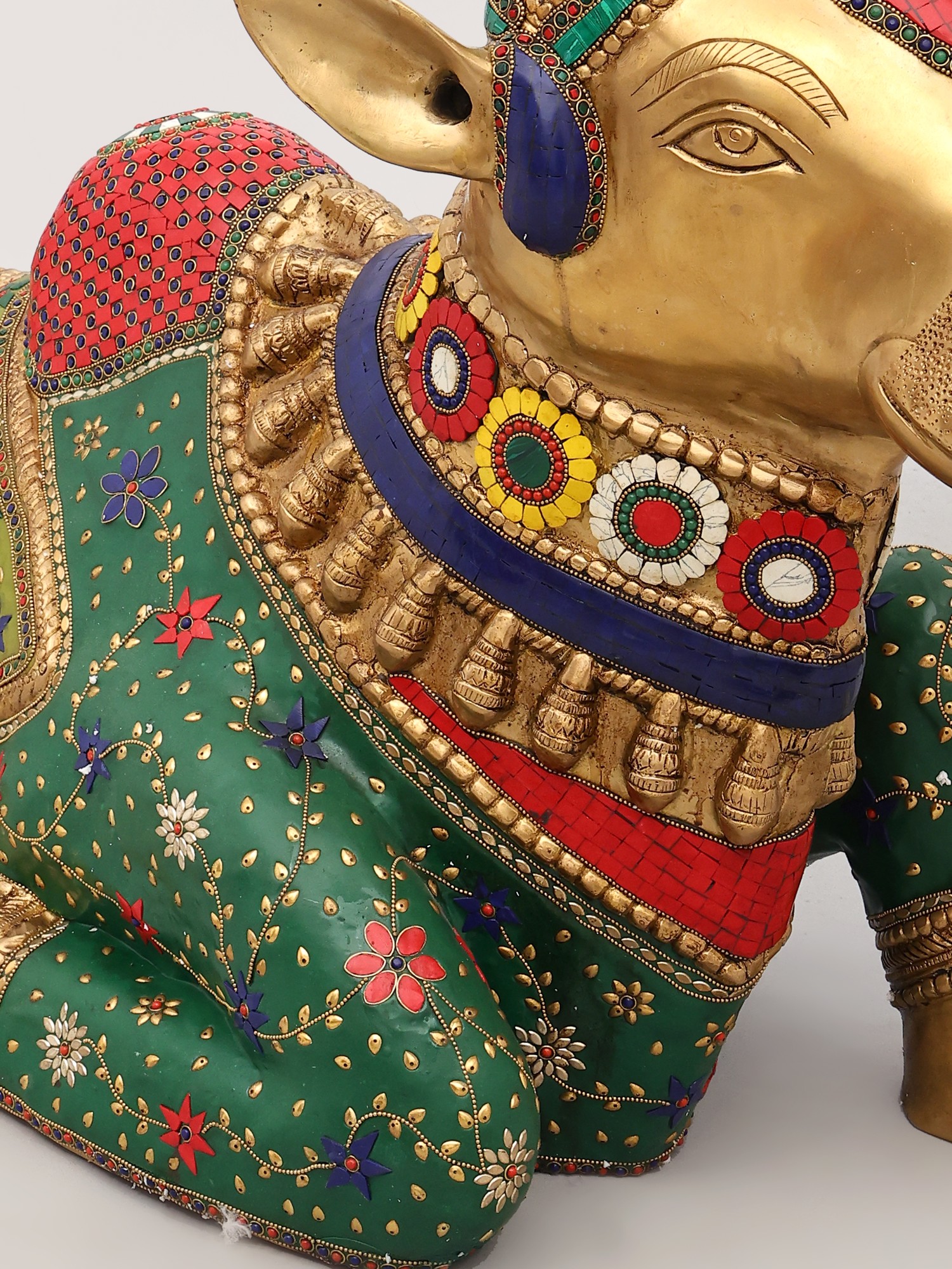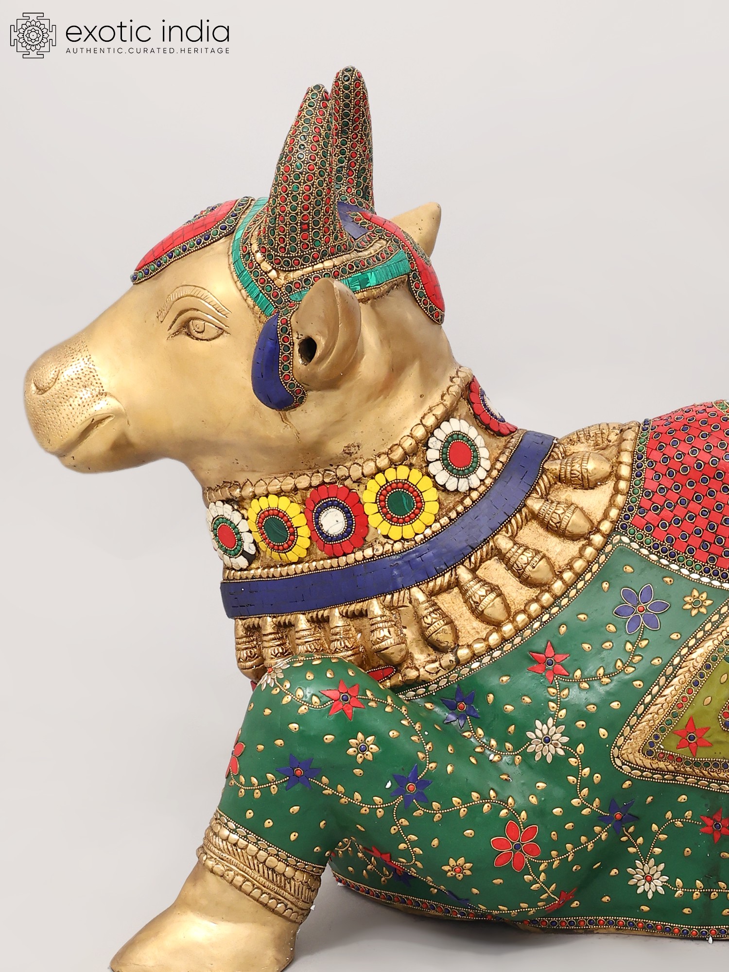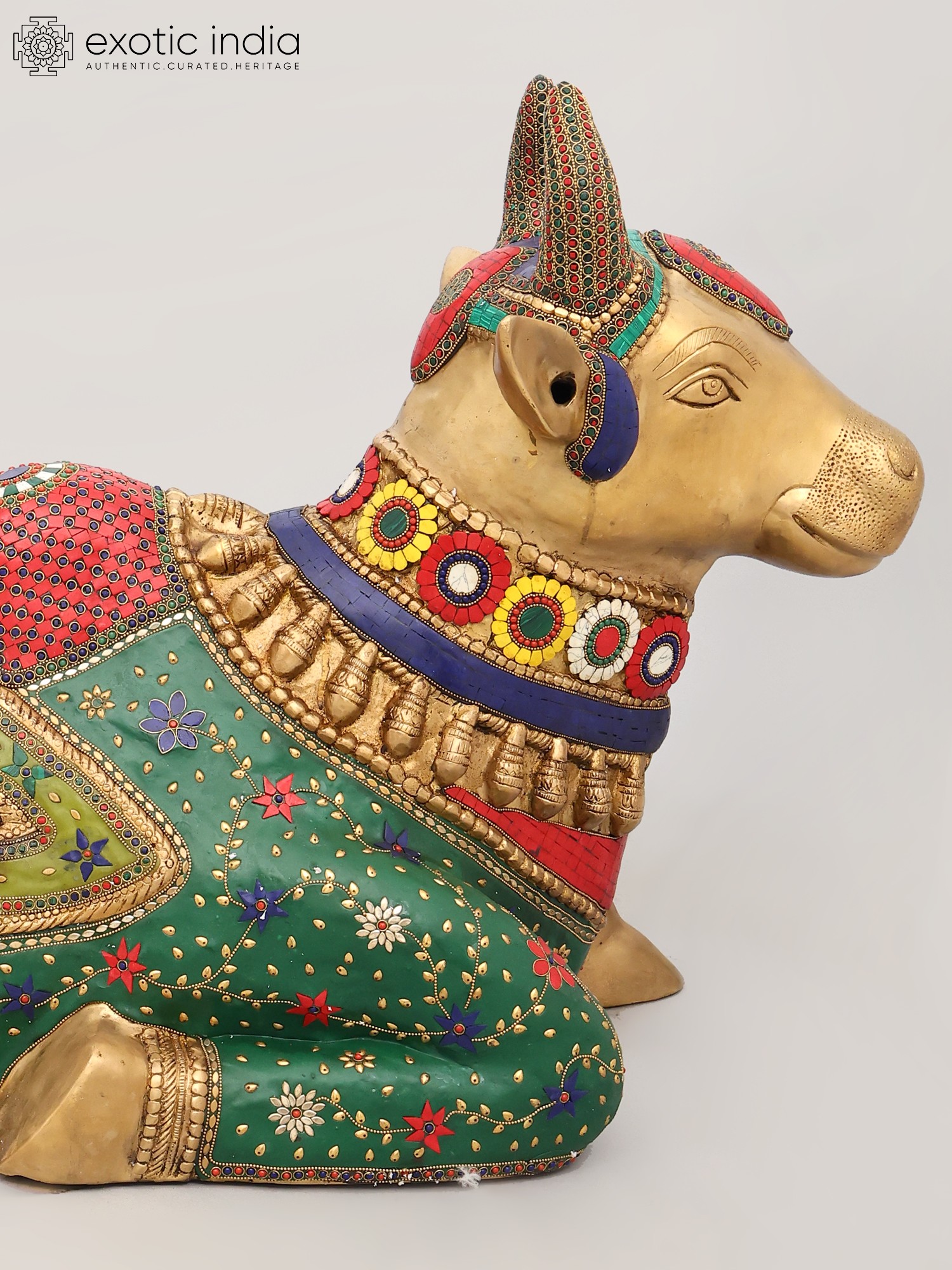 This large brass Nandi statue depicts the sacred bull, the devoted vahana of Lord Shiva.