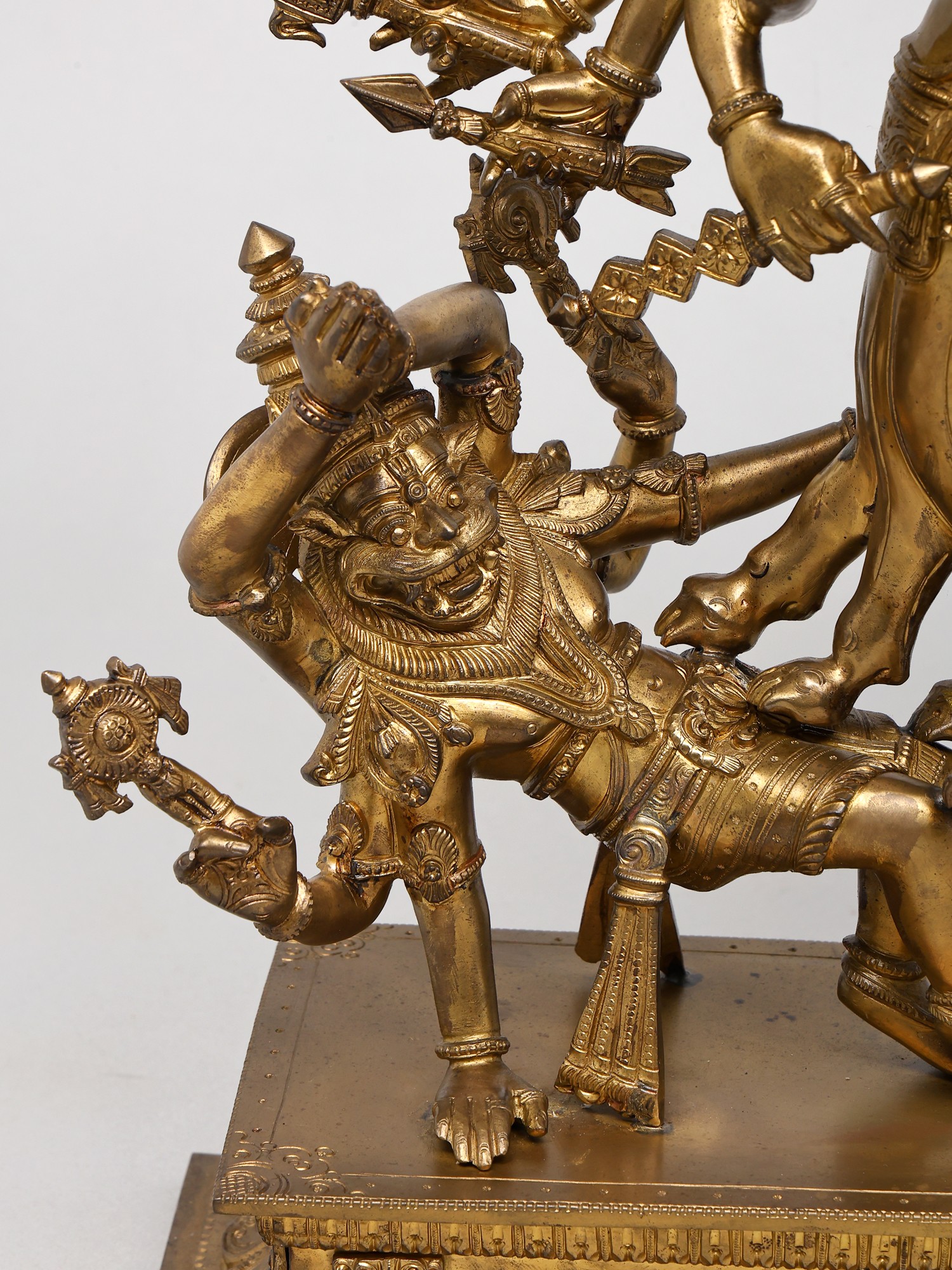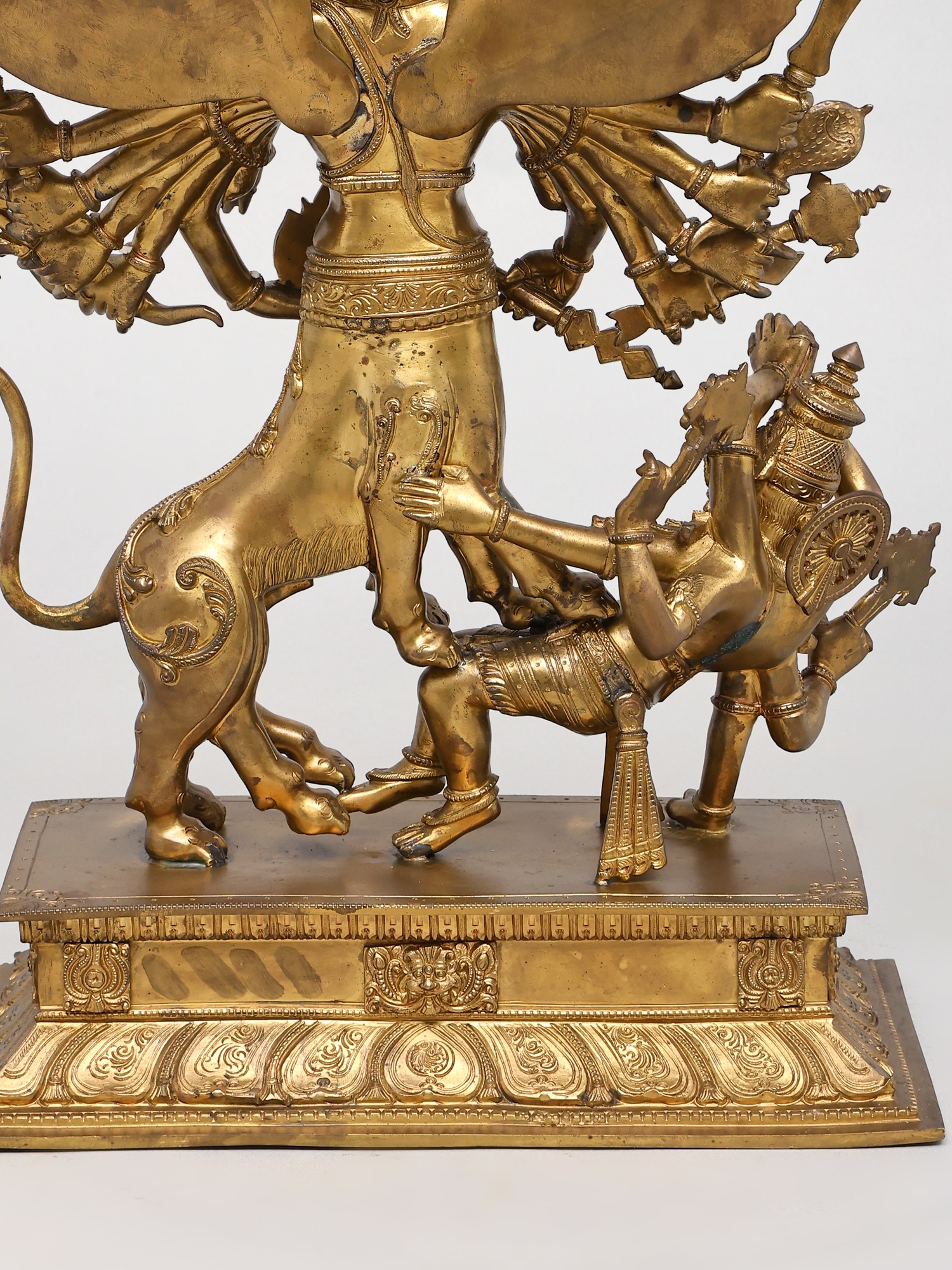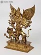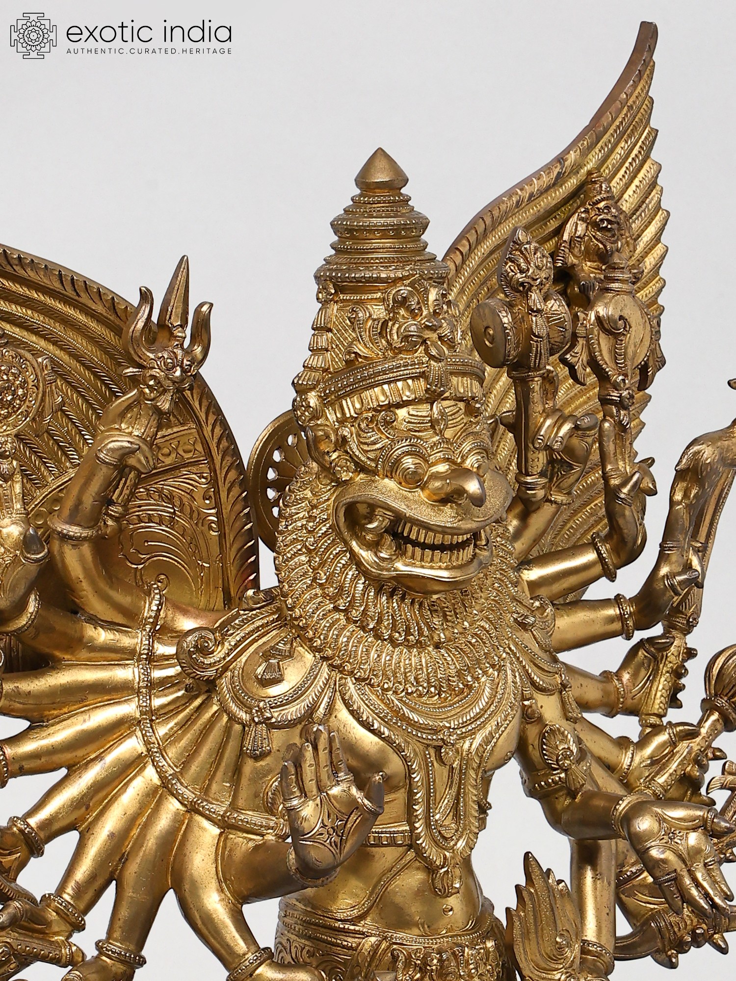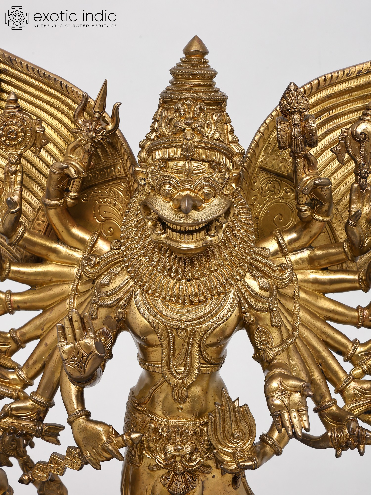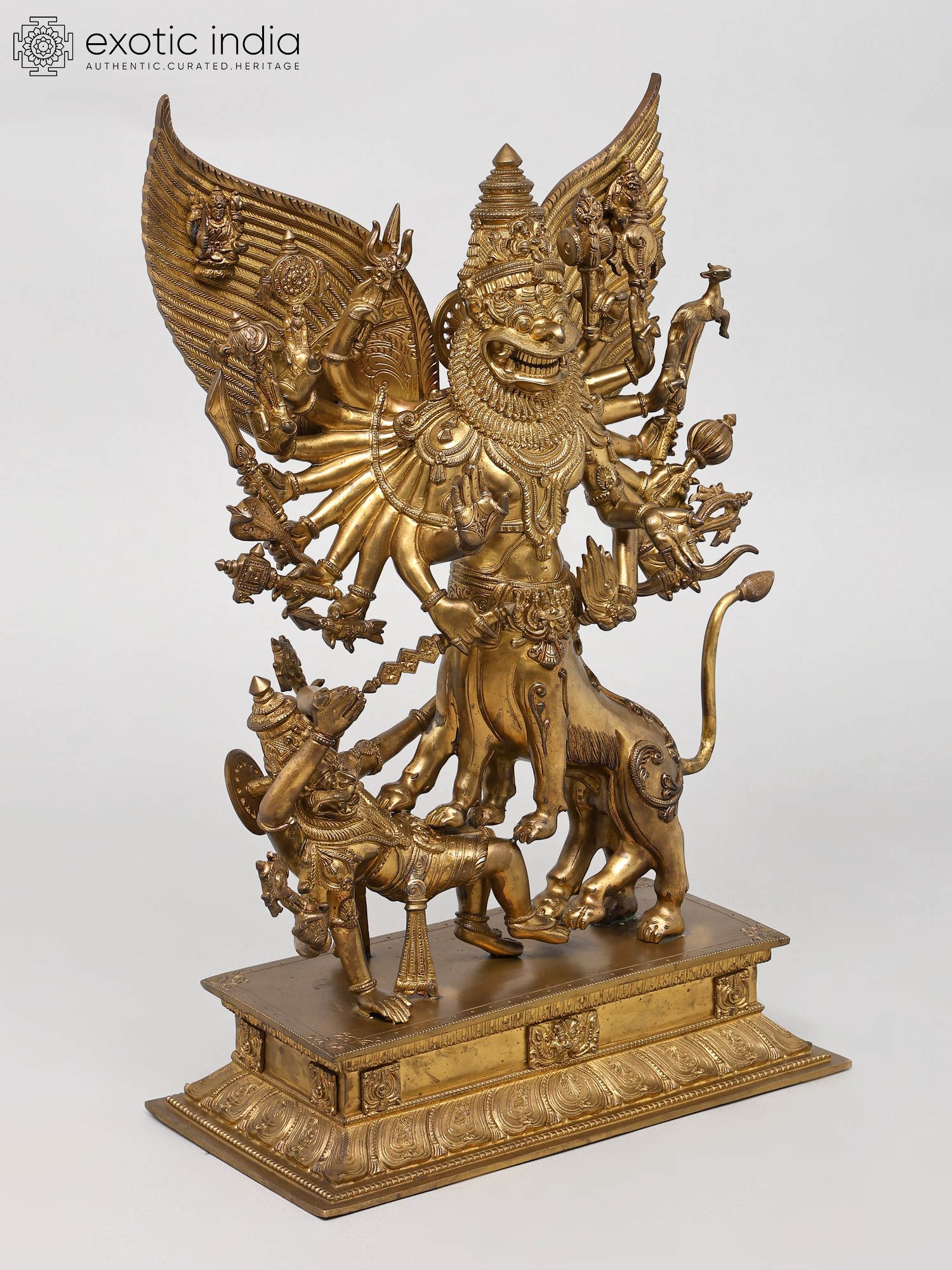 Lord Shiva's Sharabha Avatara Subduing Narasimha: 24" Superfine Bronze Sculpture