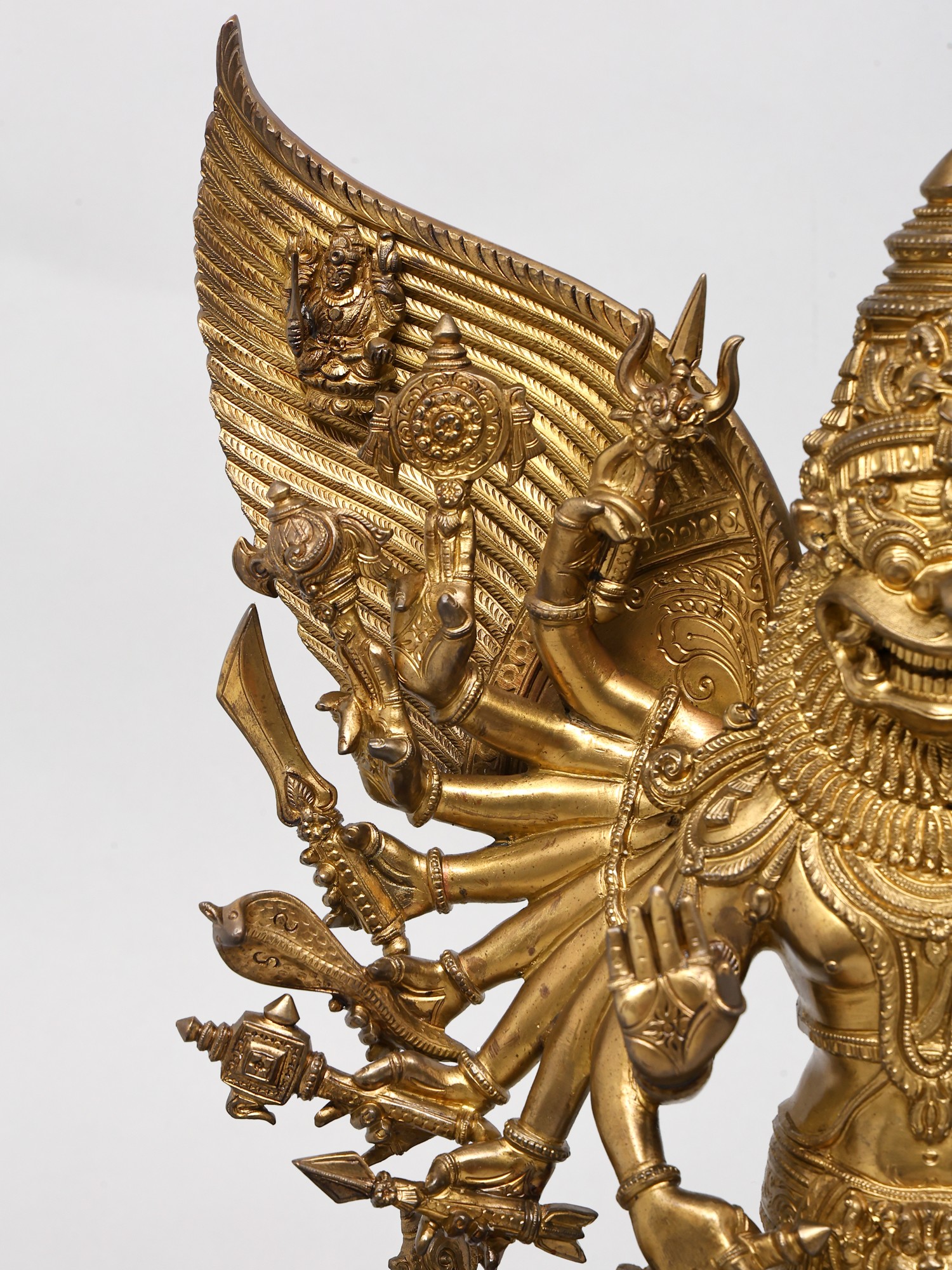 The multi-armed design accentuates the power and diverse capabilities of the deity.