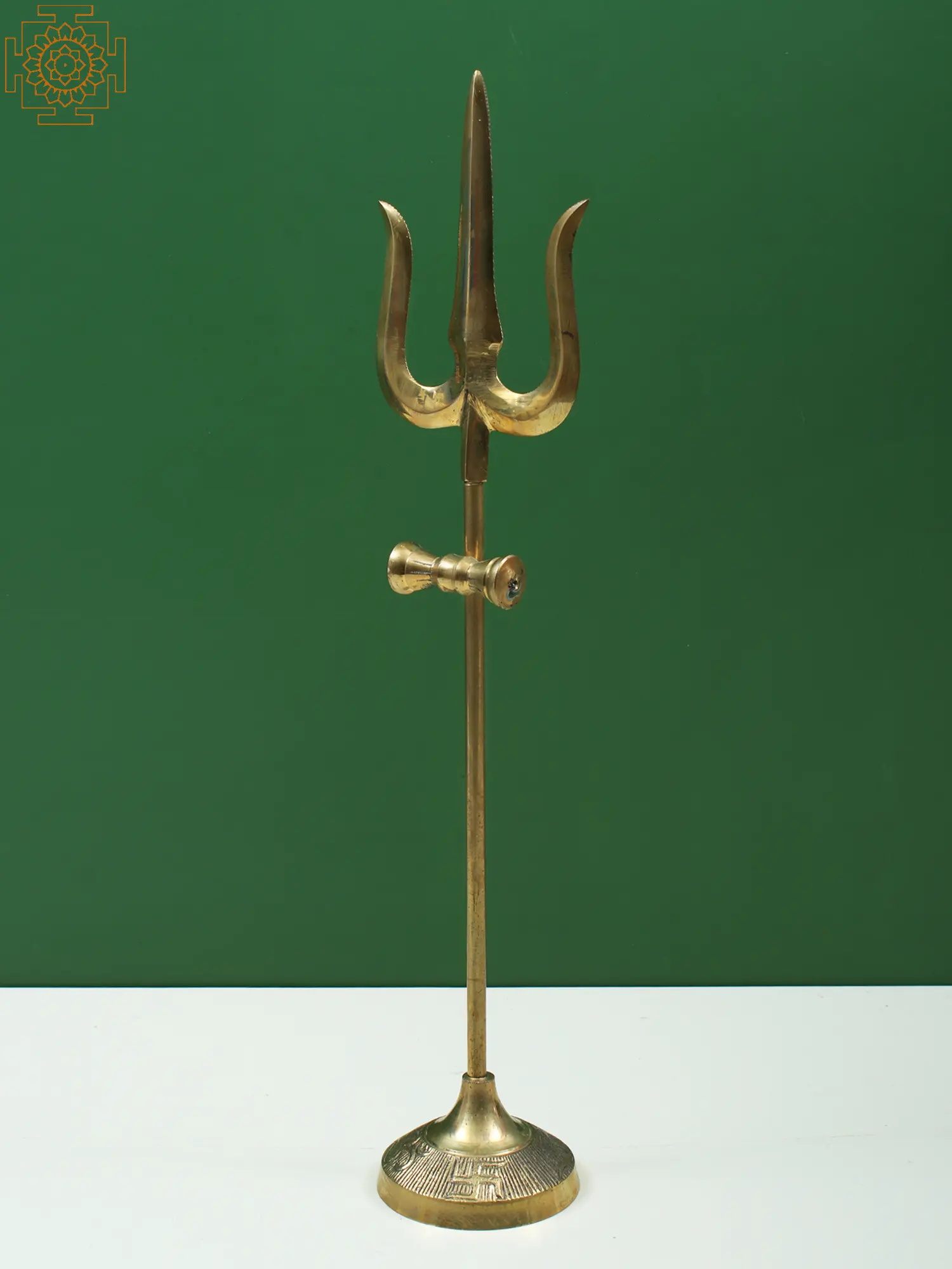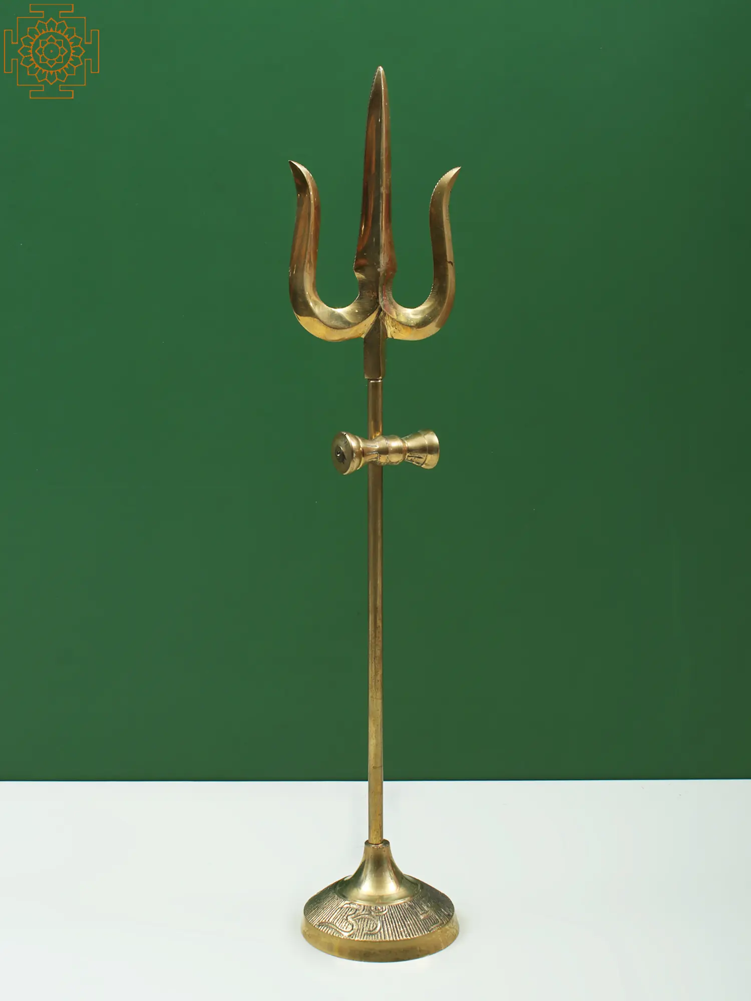 Lord Shiva, the Destroyer in the Holy Trinity, wields the Trishul as a symbol of control over the three aspects of existence – creation, preservation, and destruction. The Trishul also represents the unity of the three gunas (qualities) that underlie the universe: Sattva (truth and purity), Rajas (passion and activity), and Tamas (ignorance and inertia). This brass Trishul serves as a constant reminder of the interconnectedness of life's cycles – birth, life, and death. It's a symbol of Lord Shiva's role in the cosmic dance of creation and dissolution, reinforcing the concept of "Samsara" in Hinduism. Having the Lord Shiva's Trishul in your space not only adds an exquisite touch but also invites the energy of transformation and spiritual awakening.