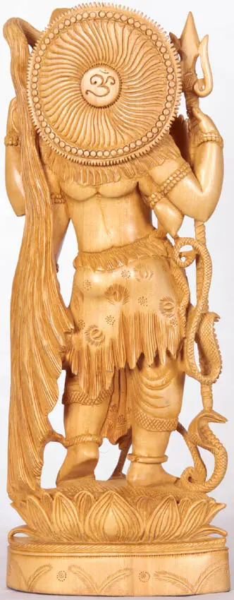 Behold this captivating wooden sculpture, an embodiment of Shiva, one of the principal deities of Hinduism. Skillfully carved from Kadamba wood, this piece is more than just a decorative item; it's a tangible representation of divine energy, a connection to the cyclical nature of existence, and a focal point for contemplation and devotion. From his benevolent gaze to the symbolic objects he holds, every detail is meticulously rendered, drawing the viewer into the rich tapestry of Hindu mythology. This sculpture encapsulates the essence of Shiva’s complex and multifaceted persona, the destroyer of illusions, and the source of creation. The craftsmanship reflects the dedication and artistry of the Jaipur artisans who have passed down their skills through generations. The smooth, warm tones of the wood add to the statue's gentle, inviting aura.
