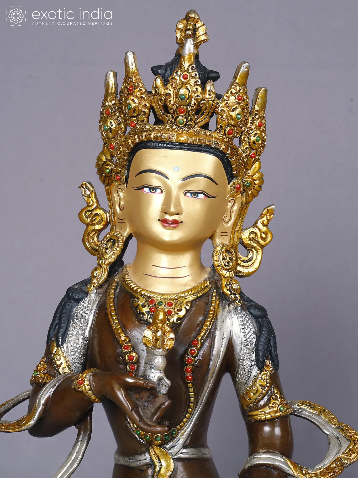18" Vajrasattva Buddha Idol from Nepal | Copper Statue Gilded with Gold