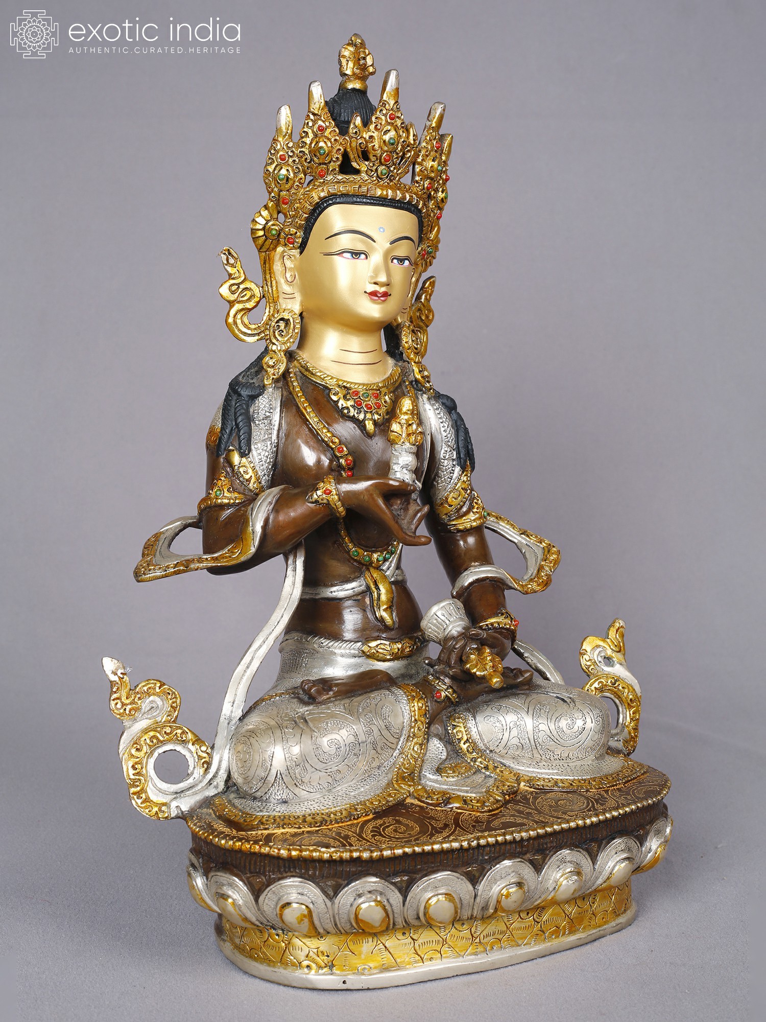16'' Buddhist Deity Vajrasattva Idol with Stone Work from Nepal | Crystal with Silver