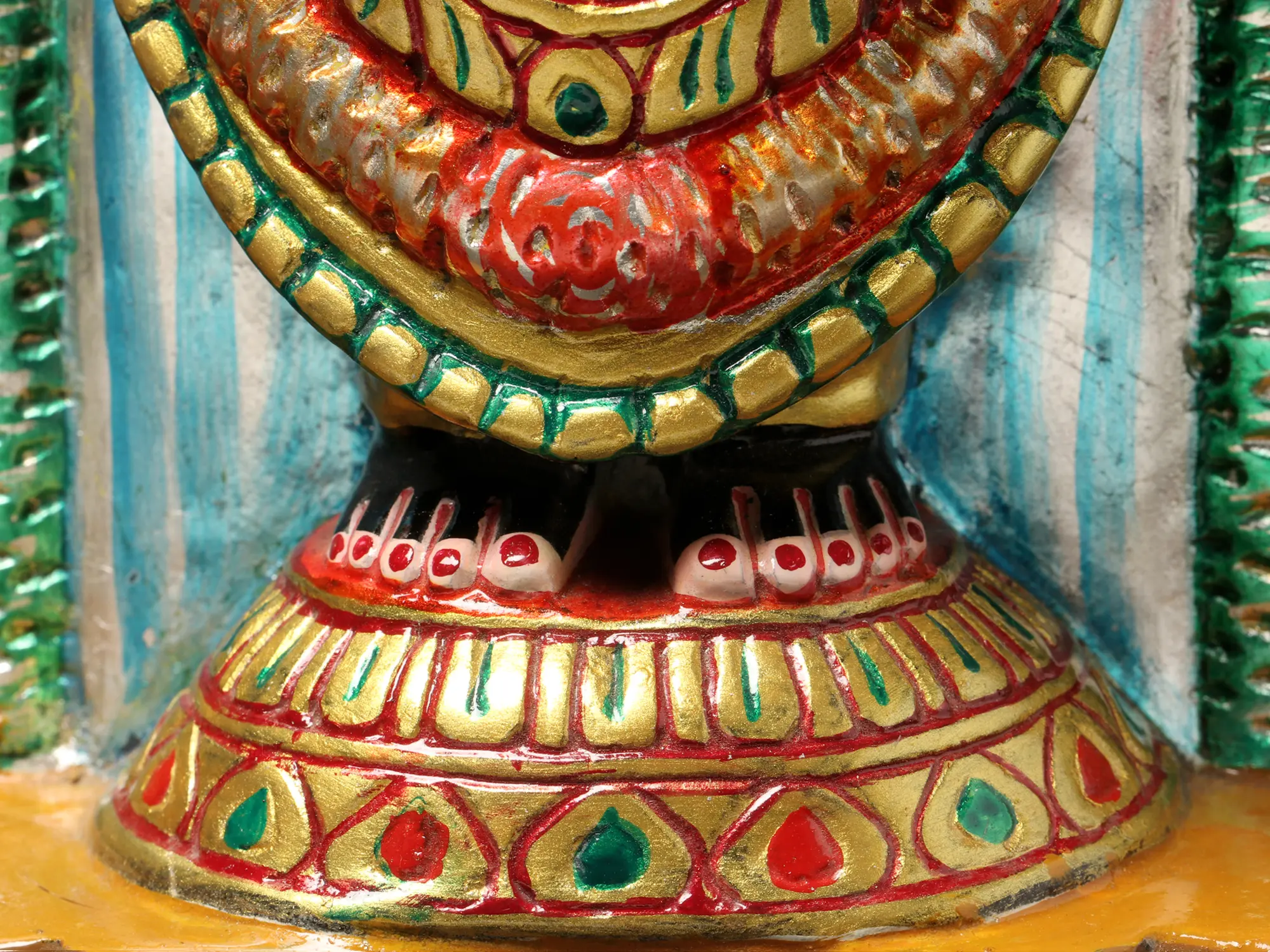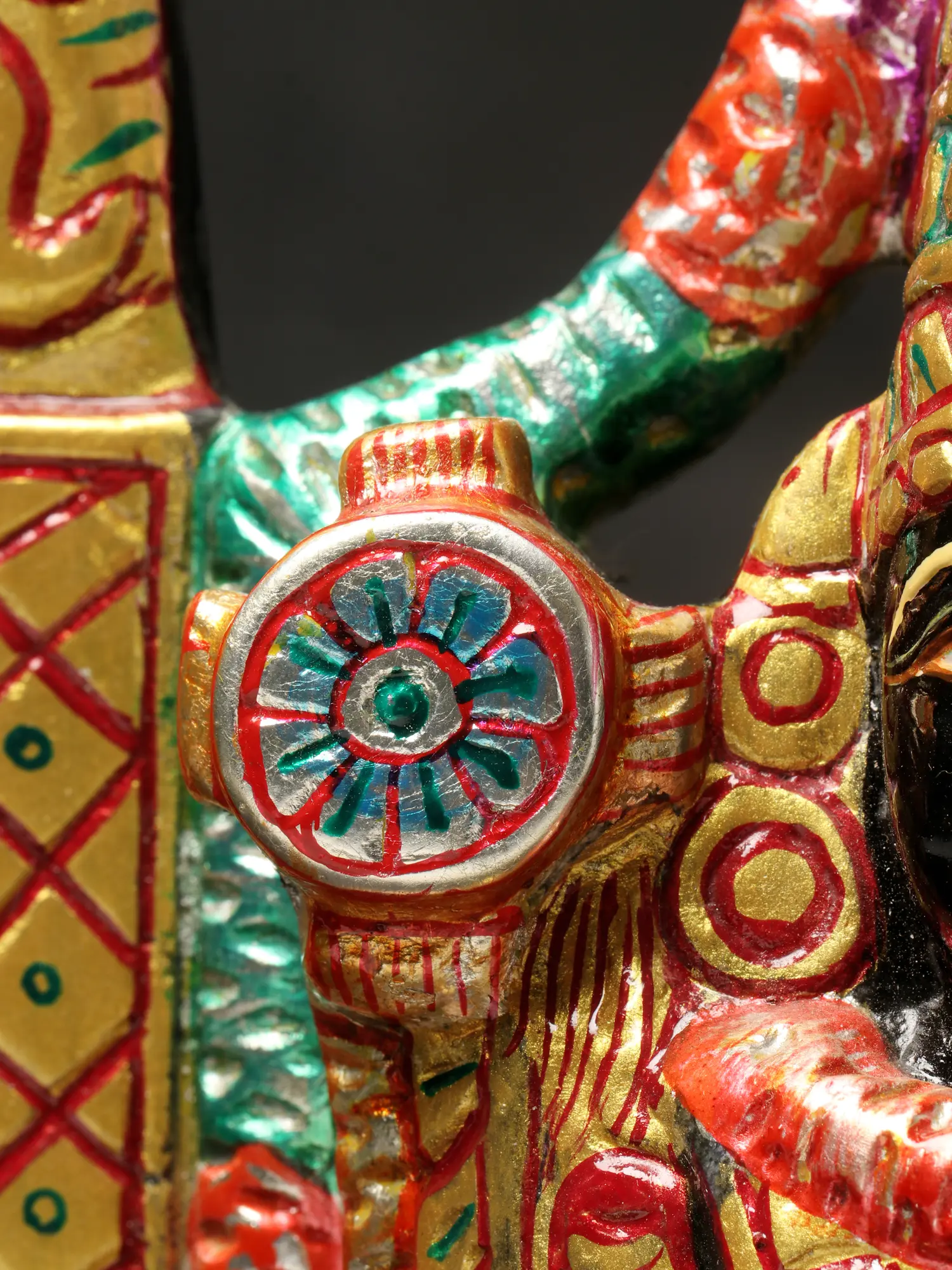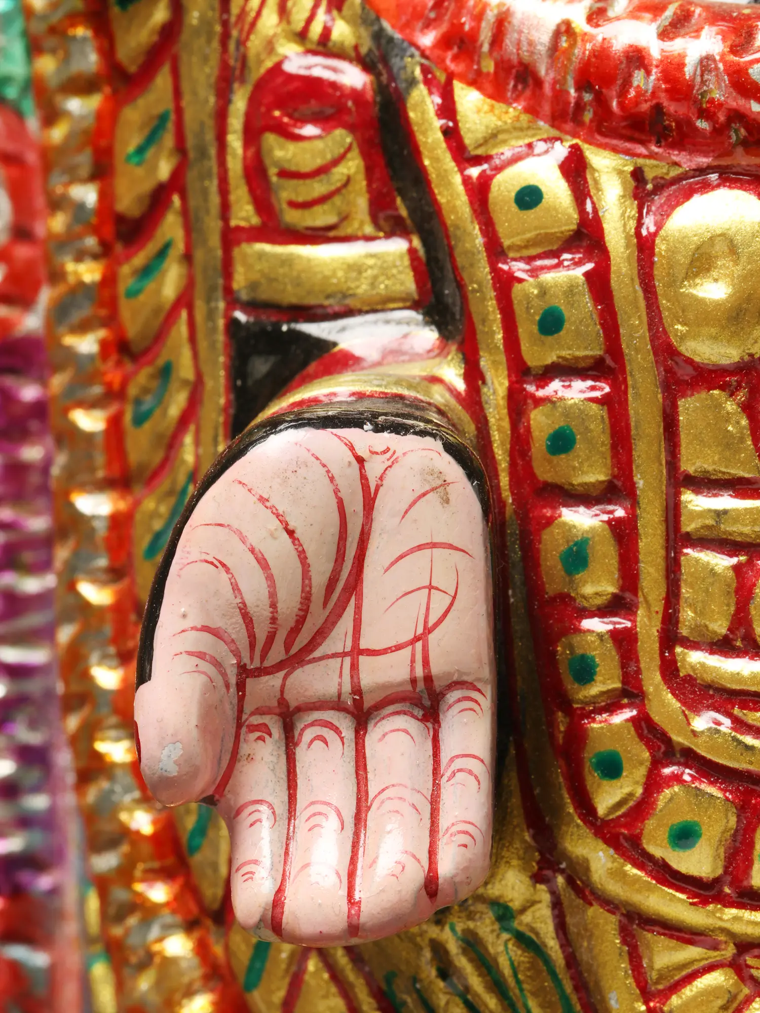 Carved from high-quality marble, this statue is a testament to the skill of artisans who have meticulously brought the divine form to life. The vibrant pigments adorning the figure and the intricately detailed arch are applied with precision, creating a visually stunning piece that is both artistic and deeply devotional. The rich gold accents, the deep blues, vibrant reds, and verdant greens create a captivating interplay of colors, reminiscent of traditional Indian temple artwork. This statue is more than just an object of decoration; it is an embodiment of faith, a focal point for prayer, and a conduit to spiritual connection. Its presence can transform any room into a sanctuary, fostering a sense of calm and devotion.