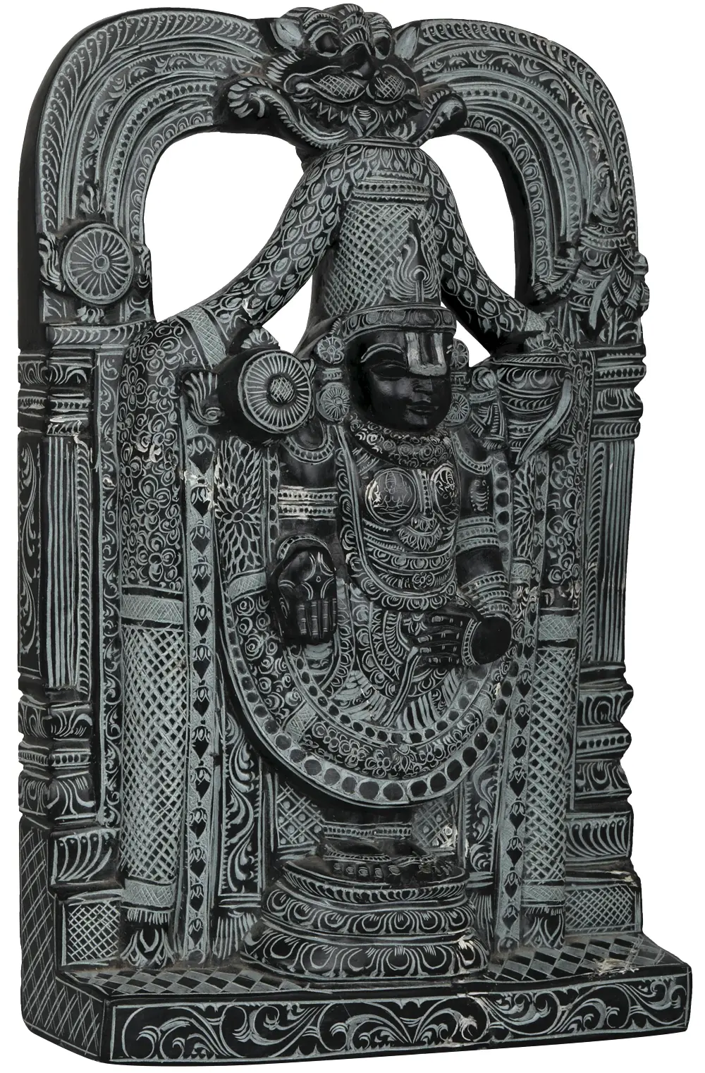 Crafted from striking black marble, this statue possesses a timeless elegance and a profound sense of spirituality. The natural variations and subtle sheen of the marble enhance the intricate carvings, giving the deity a commanding yet serene presence. The detailed back arch, adorned with motifs that evoke celestial grandeur, frames Lord Balaji perfectly, drawing the eye to his divine visage. Displaying this statue in your home or place of worship will not only add a touch of sacred beauty but also invite an atmosphere of tranquility, positivity, and divine grace. It is a piece that resonates with the devotion of countless pilgrims and the enduring legacy of Hindu spirituality.