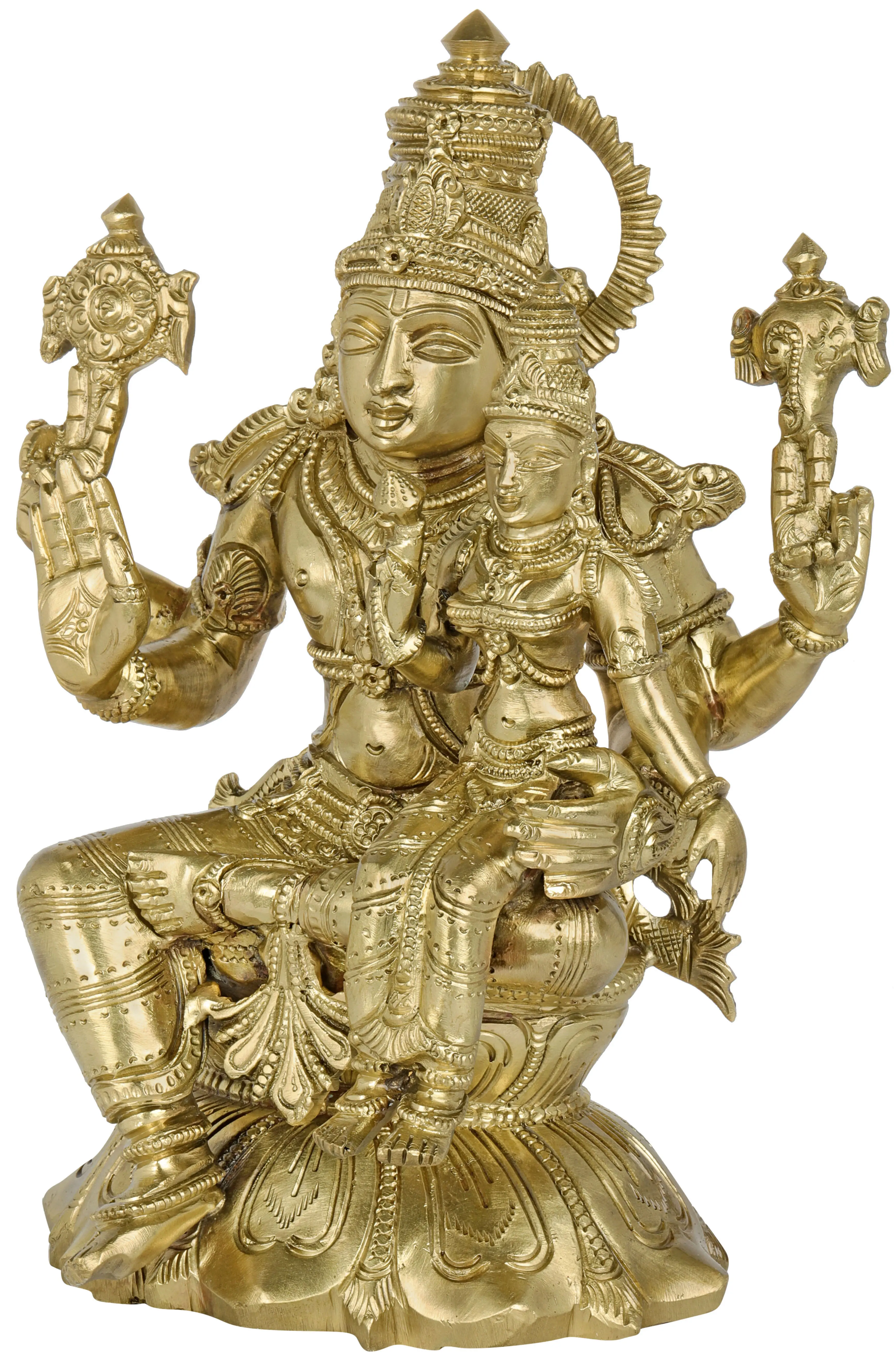 10" Vishnu and Lakshmi Brass Statue | Handmade Brass Idols | Made in India