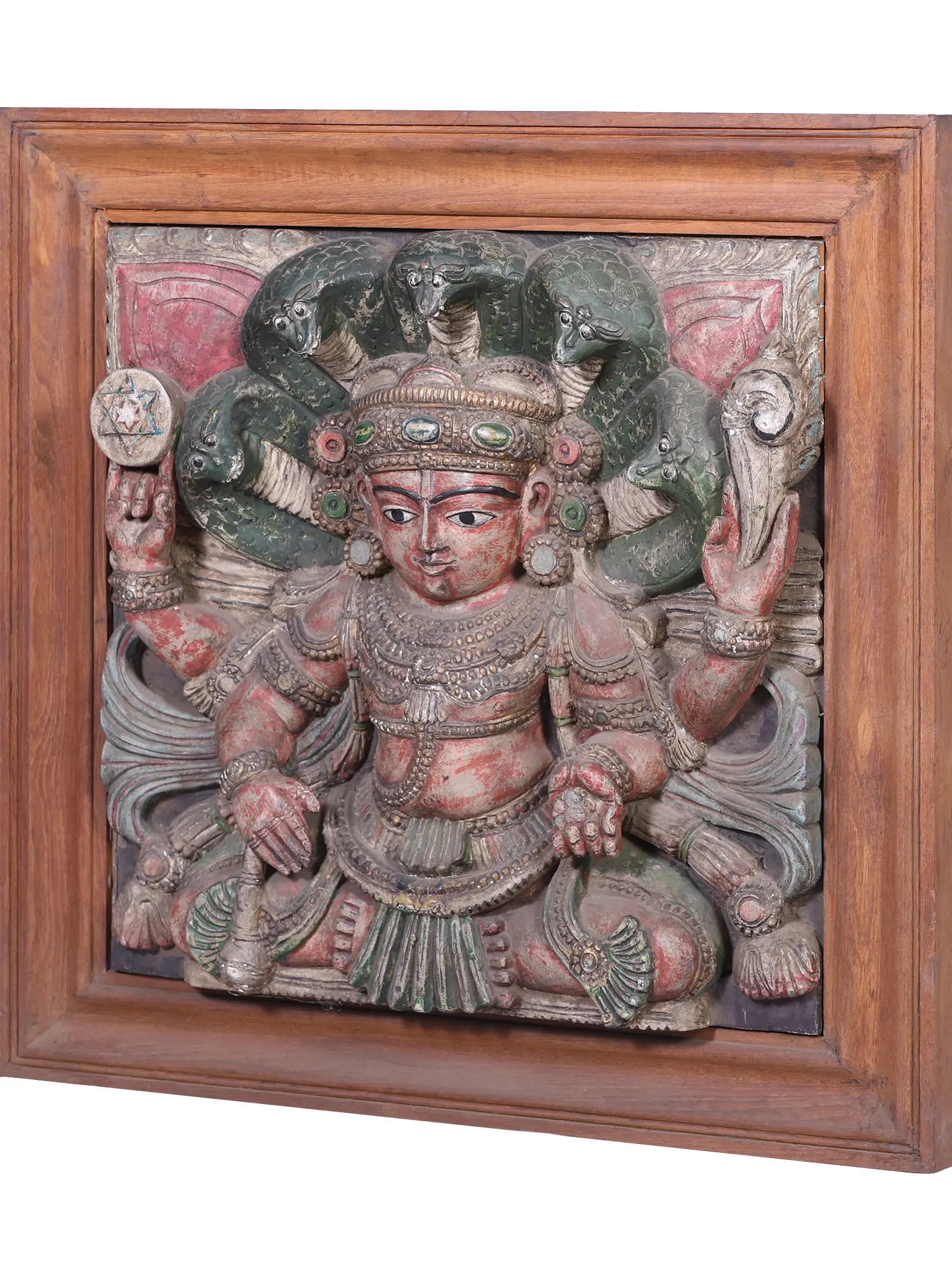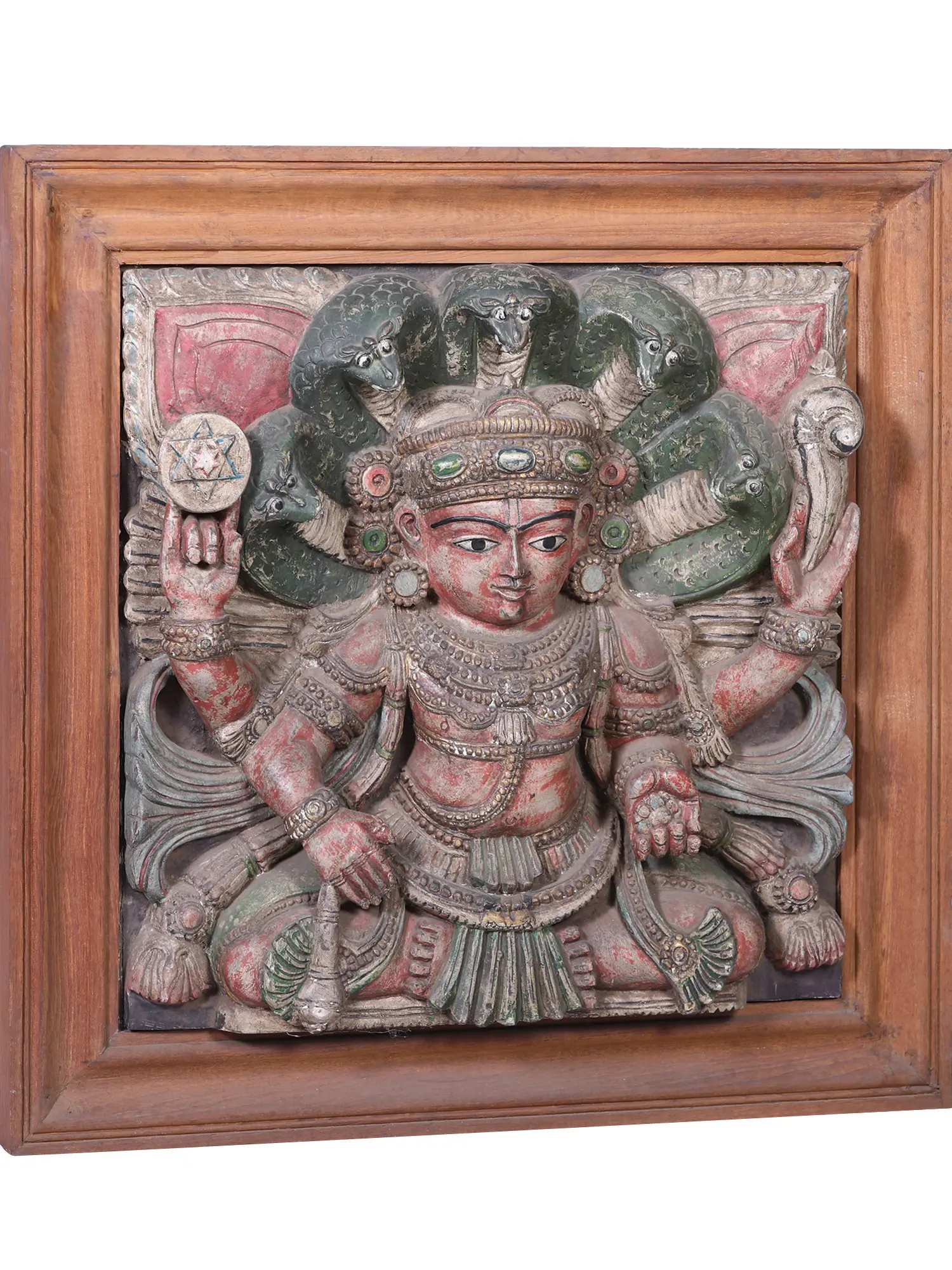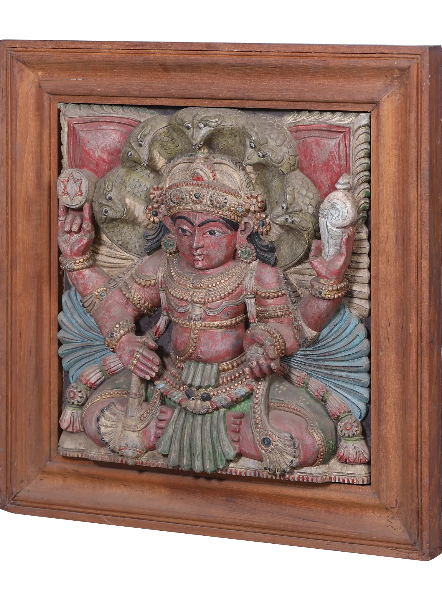 50" Large Teakwood Carved Dashavatara Wall Panel with Lord Vishnu at Center