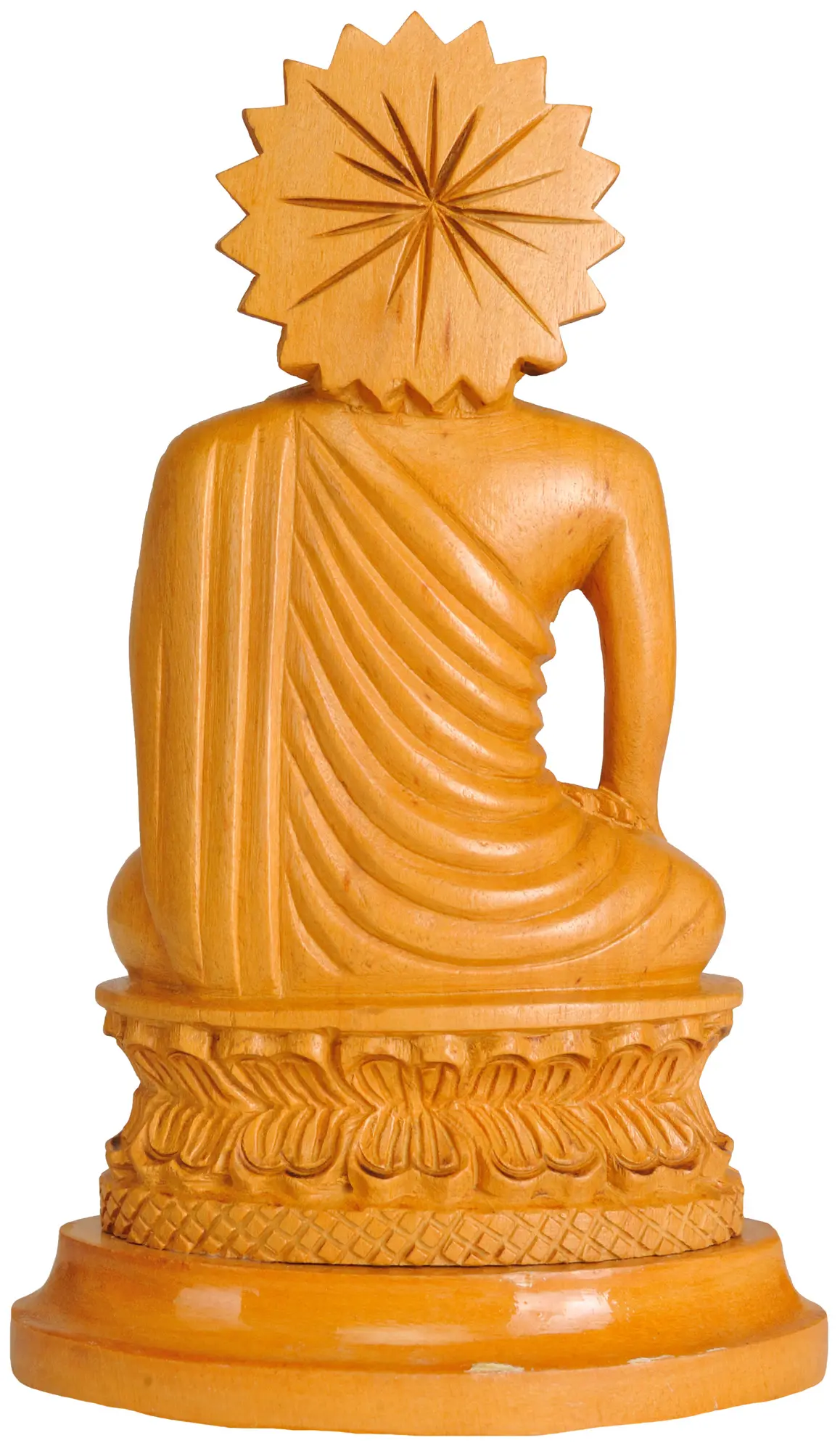 The high-plinth, seated murti that you see on this page has been sculpted from a block of kaima wood. From the folds of the robe that is draped over a single shoulder to the delicate creases within each of the petals on the lotus, the work has been executed with remarkable precision and attention to detail. As such, this handpicked number is a fine example of a medium and a quality of handiwork that are both unique to India.