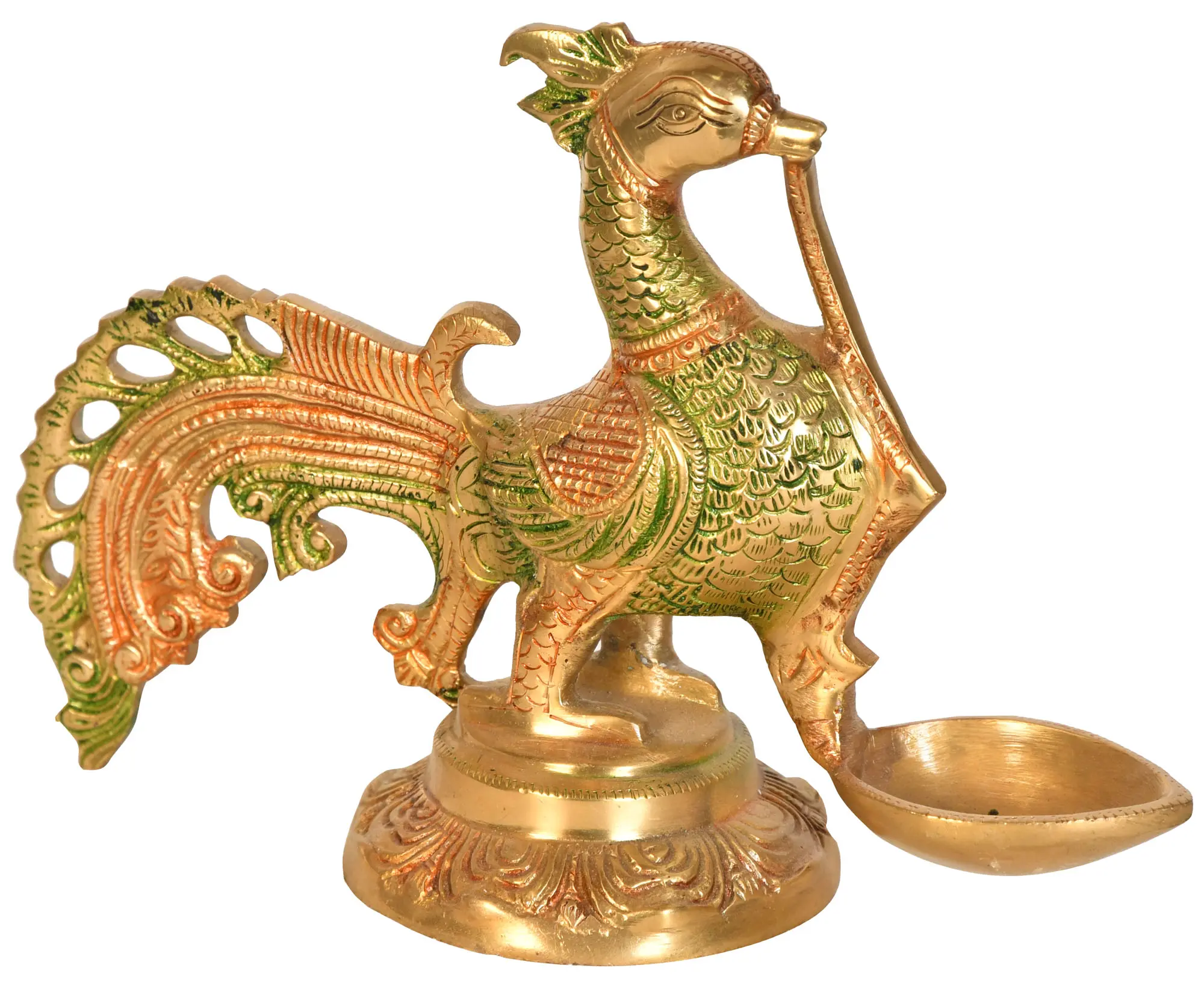 The act of lighting a lamp, particularly in decorative pieces like this, is steeped in tradition. In many homes, lamps are lit daily as part of prayers and rituals, inviting positive energy and dispelling darkness, both literal and metaphorical. This peacock lamp, with its inherent symbolism of beauty and divine association, adds a layer of spiritual significance to the practice. It can serve as a beautiful centerpiece for your prayer room, a striking accent on a mantelpiece, or a captivating addition to your collection of decorative art. Its presence is intended to not only illuminate your space but also to inspire a sense of peace, prosperity, and connection to ancient traditions. The durable brass construction ensures that this piece will remain a cherished item, passing down its story and its light through generations.