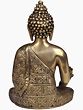 The Medicine Buddha is traditionally depicted holding a bowl in his left hand, which contains the nectar of immortality and medicinal herbs, symbolizing his power to heal all diseases and eliminate suffering. In his right hand, he often holds the Arura fruit, another powerful medicinal symbol. The intricate detailing on this brass statue showcases the rich artistic heritage associated with Buddhist iconography. The flowing robes are adorned with delicate patterns, suggesting the wisdom and auspiciousness he bestows. The urna, a dot of hair on the forehead symbolizing a third eye of spiritual perception, and the ushnisha, a cranial protuberance signifying his enlightenment, are rendered with careful precision, further enhancing the spiritual aura of the piece.