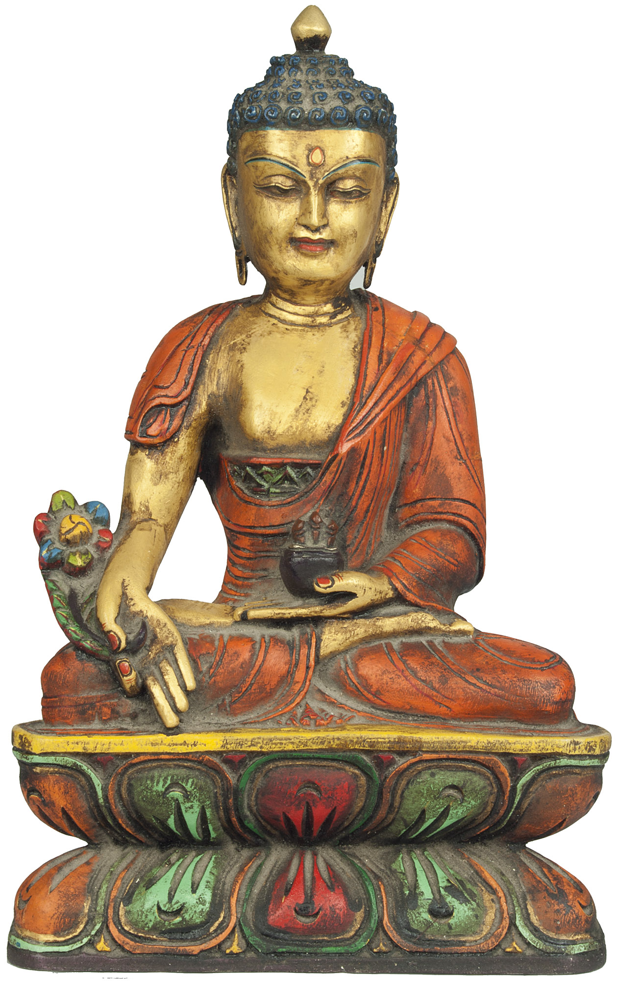In Buddhist tradition, the figure represented is revered as a compassionate healer, capable of dispelling both physical and spiritual ailments. Legend says that this enlightened being vowed to help all sentient beings overcome suffering and find liberation. The traditional iconography shows him holding a bowl filled with healing nectar, a symbol of remedies for both the body and the mind. This association links the sculpture to a rich history of healing practices and philosophical understanding. The flower often depicted nearby represents the blossoming of wisdom and compassion, qualities inherent in the path to enlightenment. Adorned with monastic robes, his seated position signifies stability and a grounded presence. Displaying this sculpture in your home can serve as a reminder of the potential for healing and inner peace, fostering an environment of serenity and compassion. The subtle details and masterful artistry make this piece a conversation starter and a source of daily inspiration.