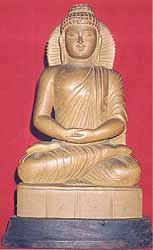 A halo-like aureole is seen surrounding the Buddha's head. This is of course a symbol of his divine nature.