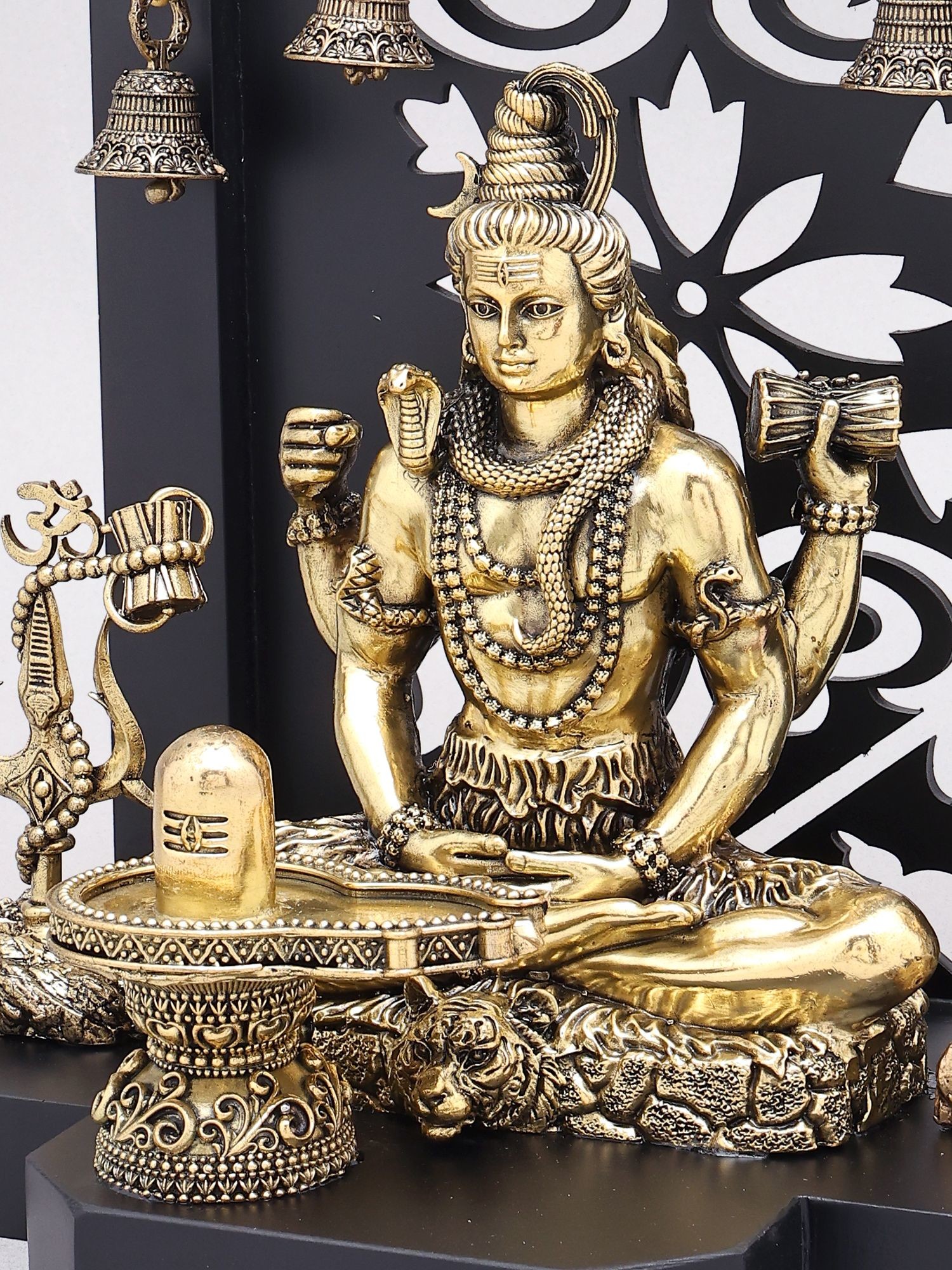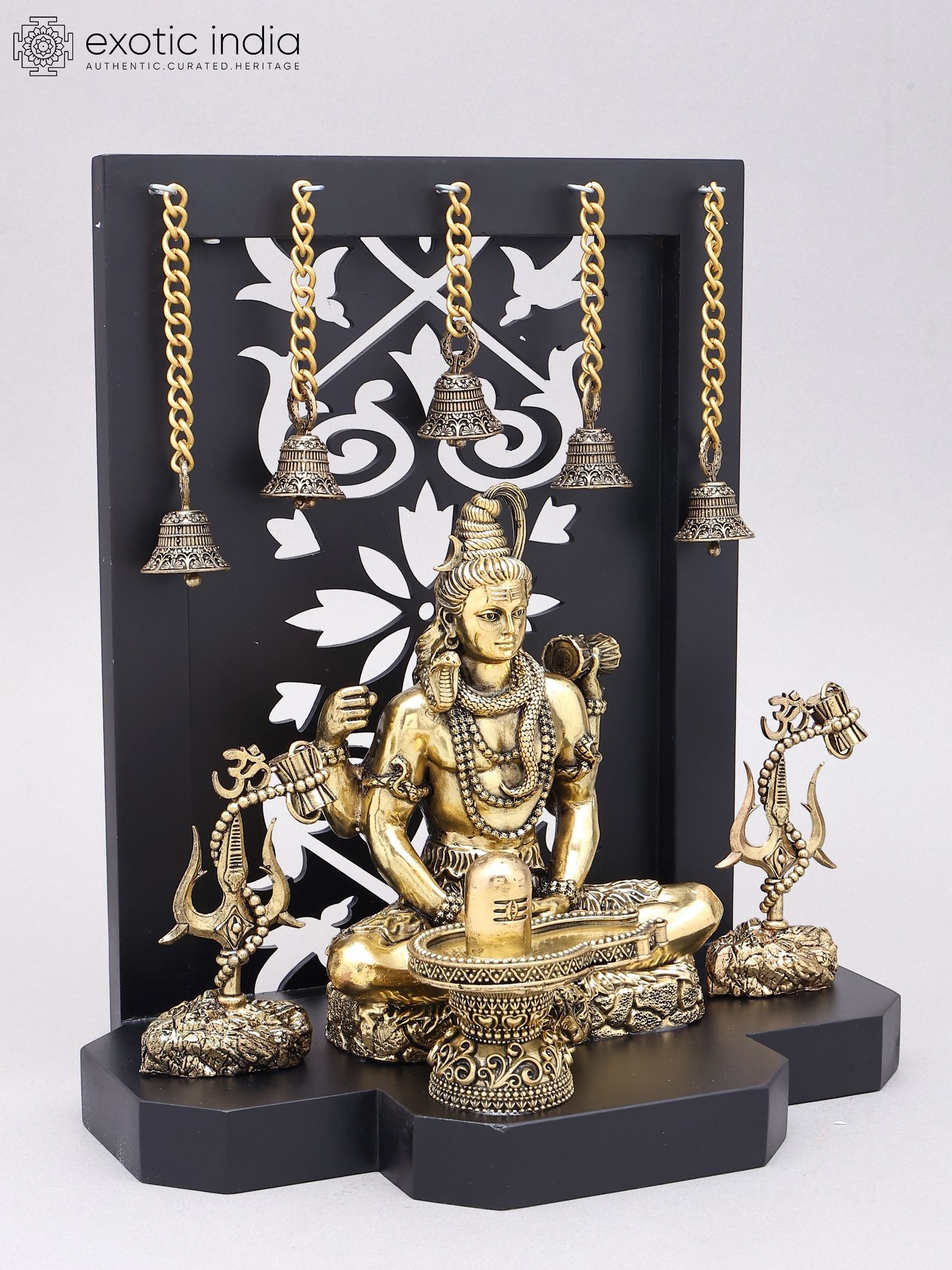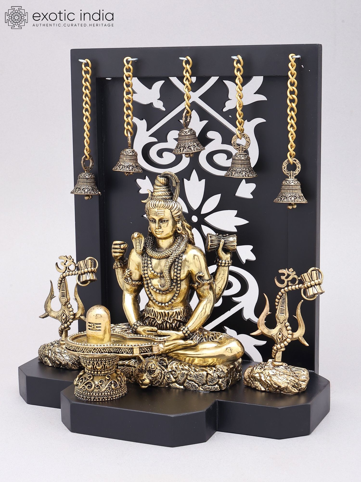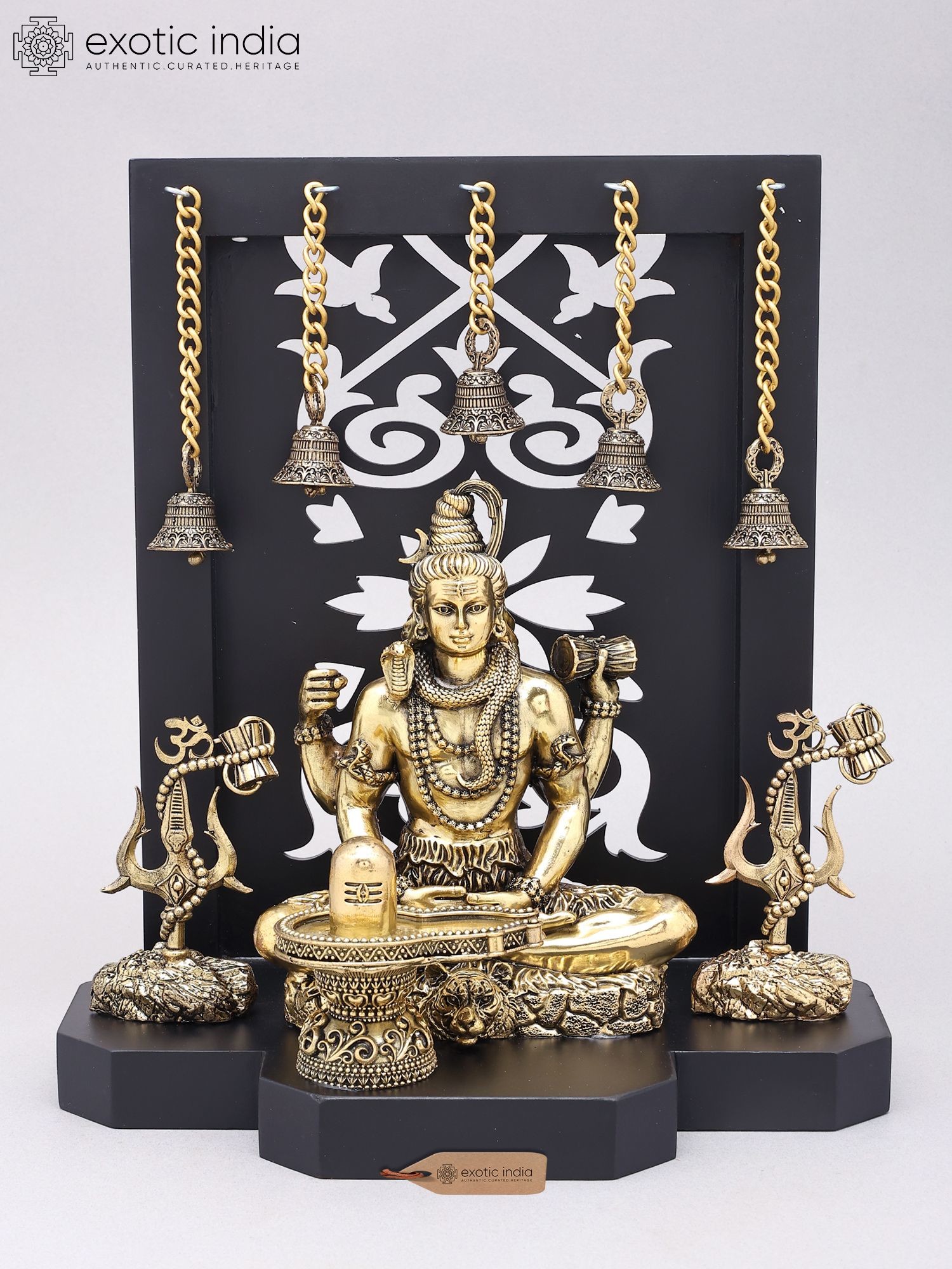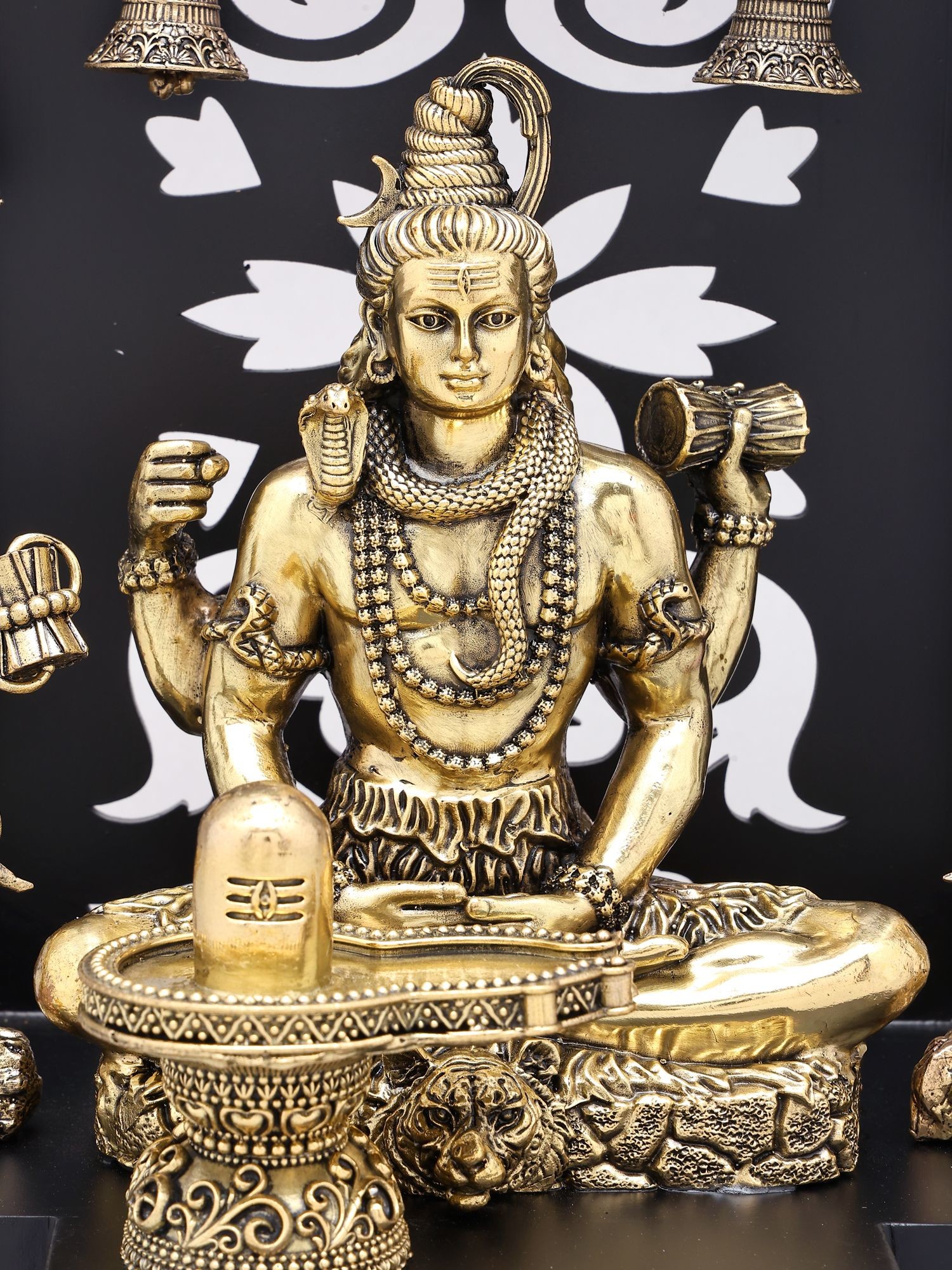 Sitting Lord Shiva Brass Statue with Trishul and Damaru