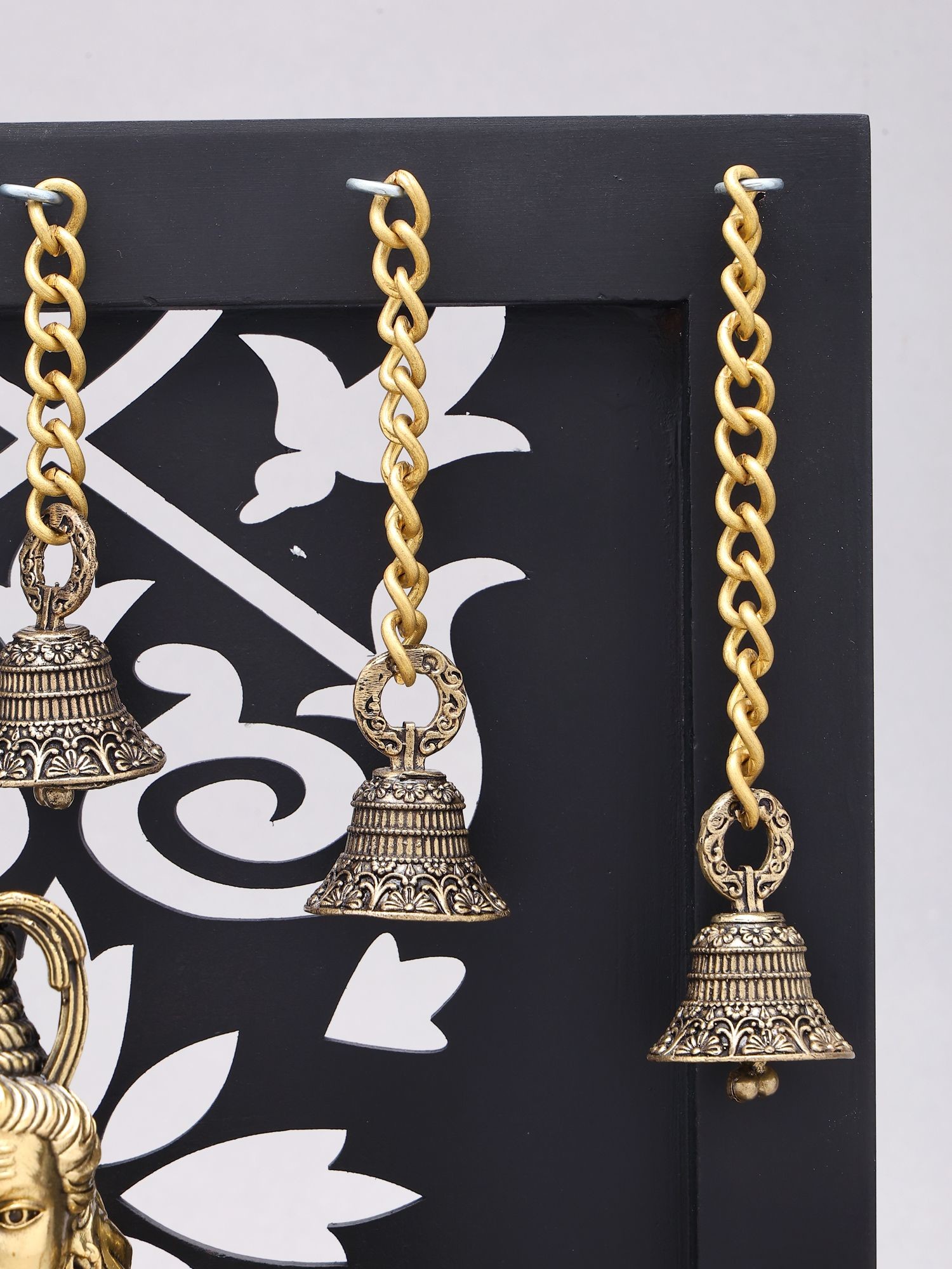 7" Brass Temple Hanging Bell with Images of Lord Shiva, Hanuman, Ganesha, Goddess Lakshmi, Durga and Radha Krishna