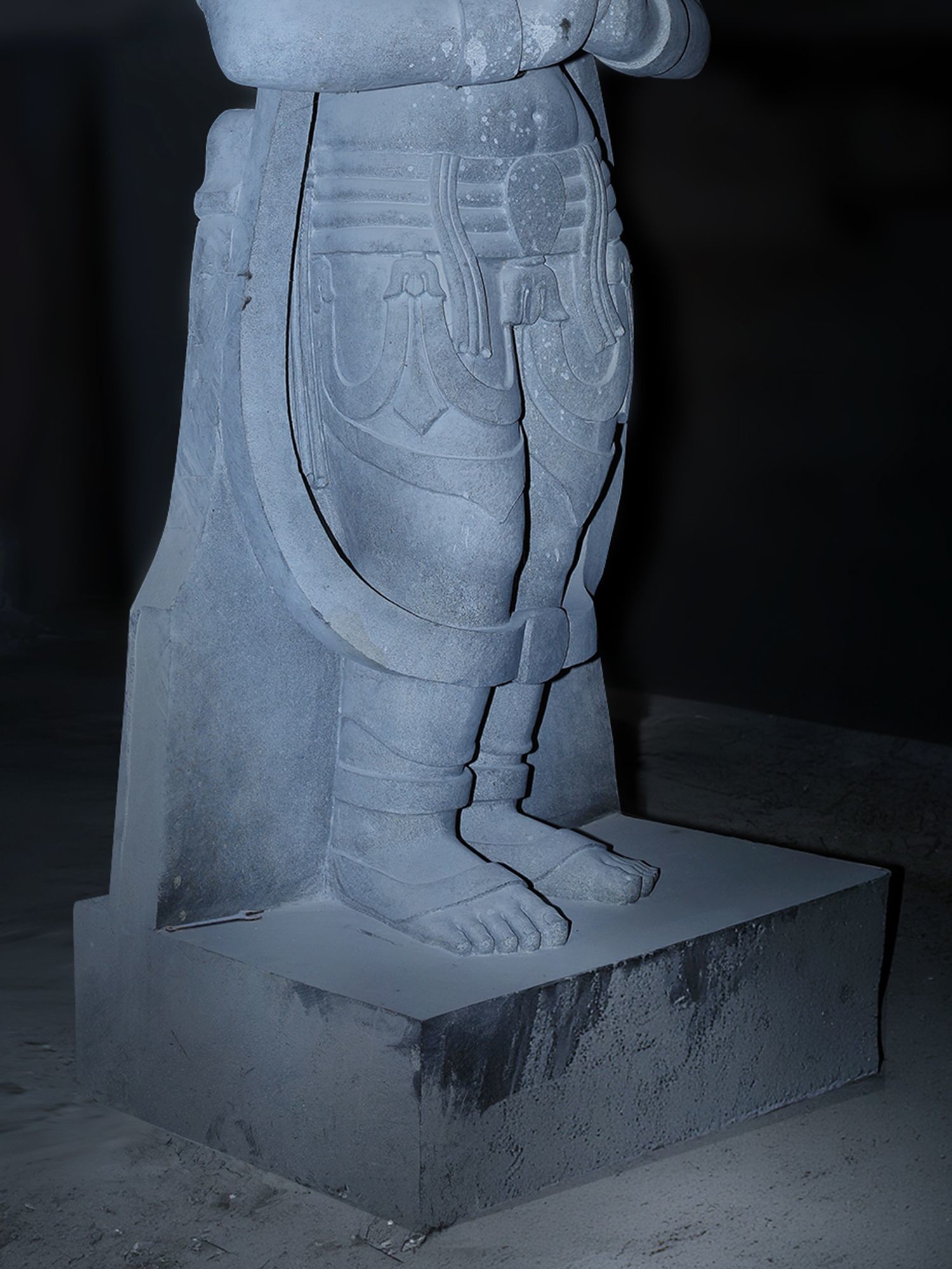 Features a majestic 106-inch tall granite statue of a prominent Hindu deity.