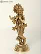 This exquisite brass statue captures the enchanting essence of Lord Krishna, the beloved deity of Hinduism, as he plays his enchanting flute, the *murli*. Krishna, a central figure in the *Mahabharata* and the *Bhagavata Purana*, is revered for his divine charm, playful nature, and profound wisdom. This statue embodies his captivating beauty and the spiritual power of his music, which is said to have the ability to soothe the soul and enchant all who hear it. The intricate detailing brings to life the vibrant colours and opulence typically associated with depictions of Krishna, even within the monochromatic medium of brass. The craftsmanship is meticulous, showcasing the dedication and skill of the artisans who created this piece. The statue stands at 7.75 x 4.0 x 2.6 inches, making it the perfect size for display in homes, temples, or meditation spaces.