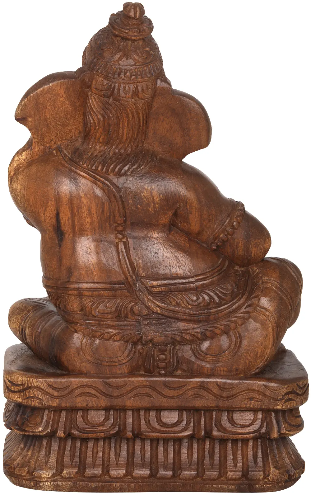 Ganesha's expressive face and finely adorned attire reflect a harmonious blend of cultural heritage and artistic finesse. The wooden medium adds warmth to the creation, emphasizing the rich textures and natural beauty. This statue stands as a symbol of divine celebration, infusing homes with both artistic elegance and a spiritual aura.