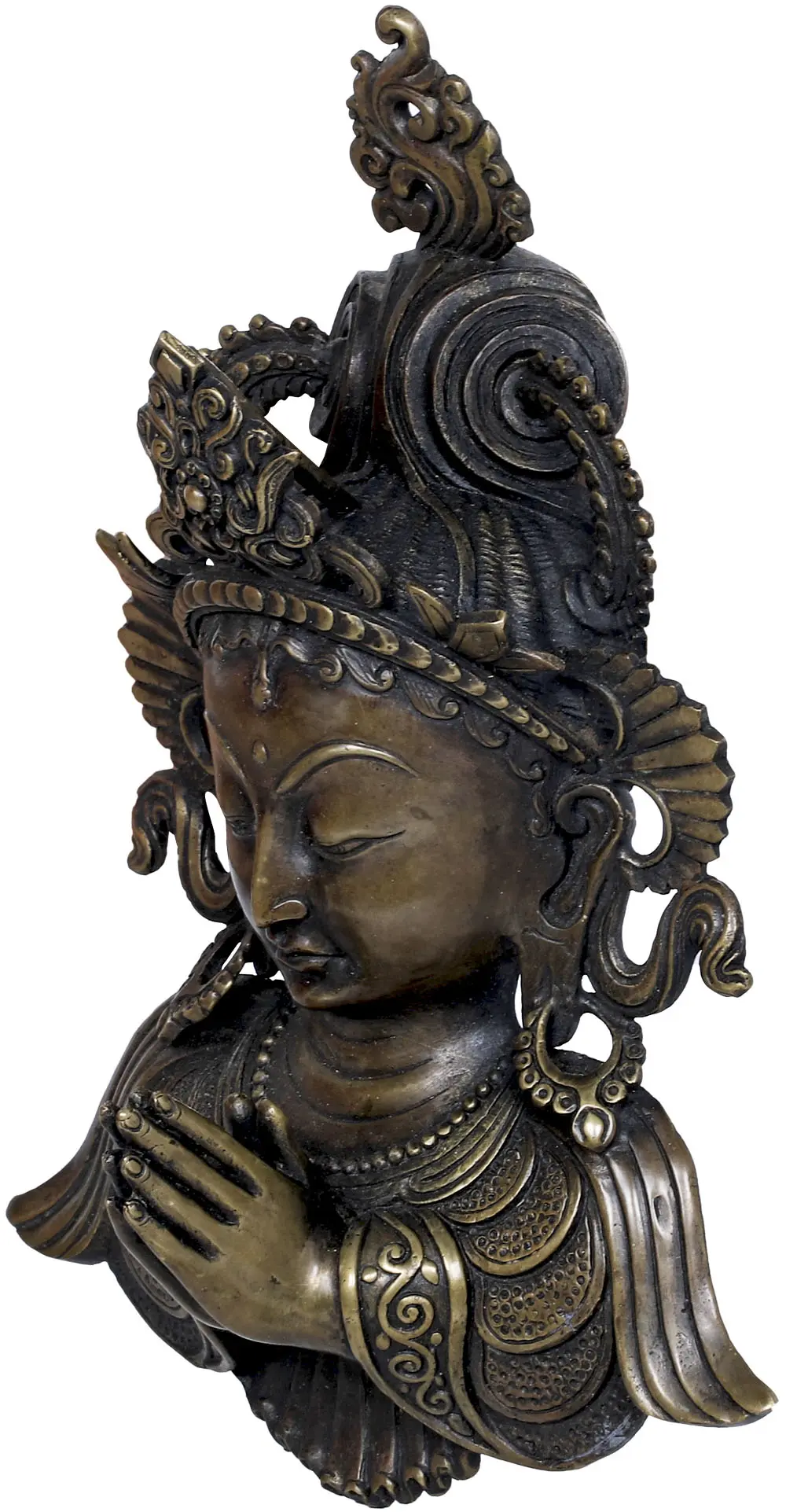 21" Seated Green Tara Statue in Copper Gold Plated