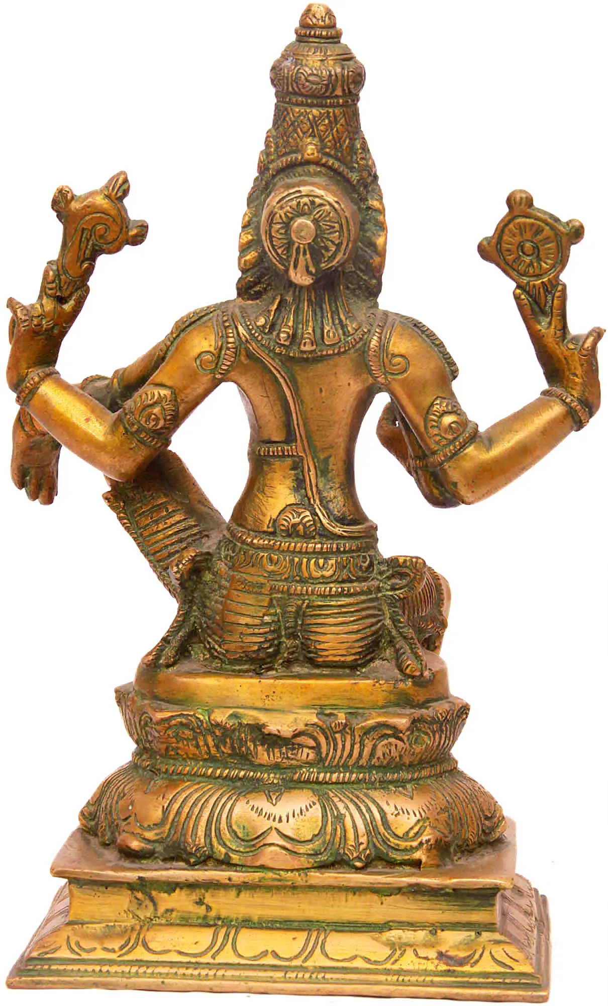 Crafted in brass, this sculpture portrays a pivotal moment in Hindu mythology: the appearance of the powerful Narasimha, an incarnation of Lord Vishnu. The artwork captures the raw energy and divine purpose of this unique avatar, a being neither fully human nor fully animal, emerging to uphold dharma (righteousness) and vanquish evil. This piece is a tangible representation of a legendary event, resonating with themes of courage, divine intervention, and the triumph of good over evil.