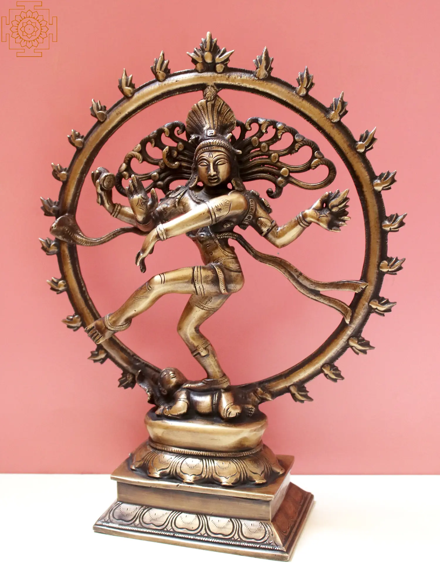 24" Nataraja Pedestal Decorated with Different Forms of Shiva | Handmade Brass Statue | Made in India
