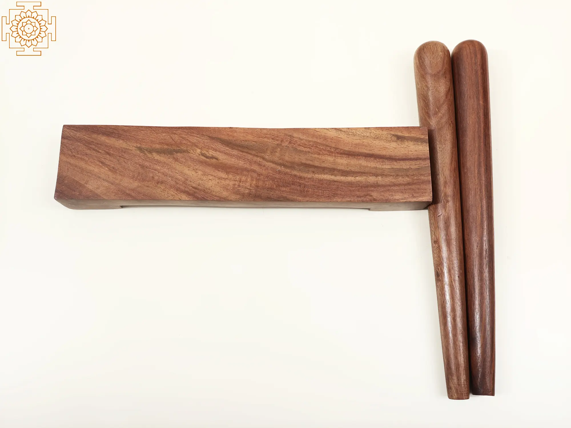 Unveil the world of Bharatnatyam and Kuchipudi dance with the Nattuvangam Thattu Manai Set. Handcrafted intricately, this set embodies the sacred artistry of dance. The rhythmic intricacies of Nattuvangam, conducted using cymbals, resonate in every corner. The Manai, a wooden plank, serves as the dancer's canvas, painted with footwork and expressions. An ode to tradition, each beat and step is a conversation with the divine. This set encapsulates the tradition's cultural vibrancy, as dancers etch their tales onto the Manai, echoing the sacred symphony of Indian classical dance.