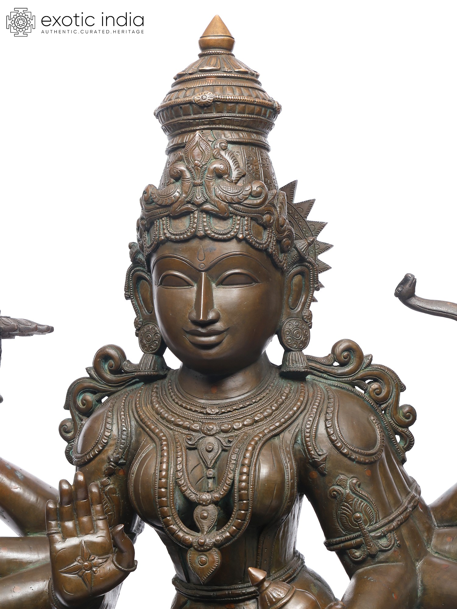 Unlike the tender smile of Parvati, Durga’s expression is serene and self-assured, her inward smile reflecting the composure of a cosmic protector who reigns beyond fear.