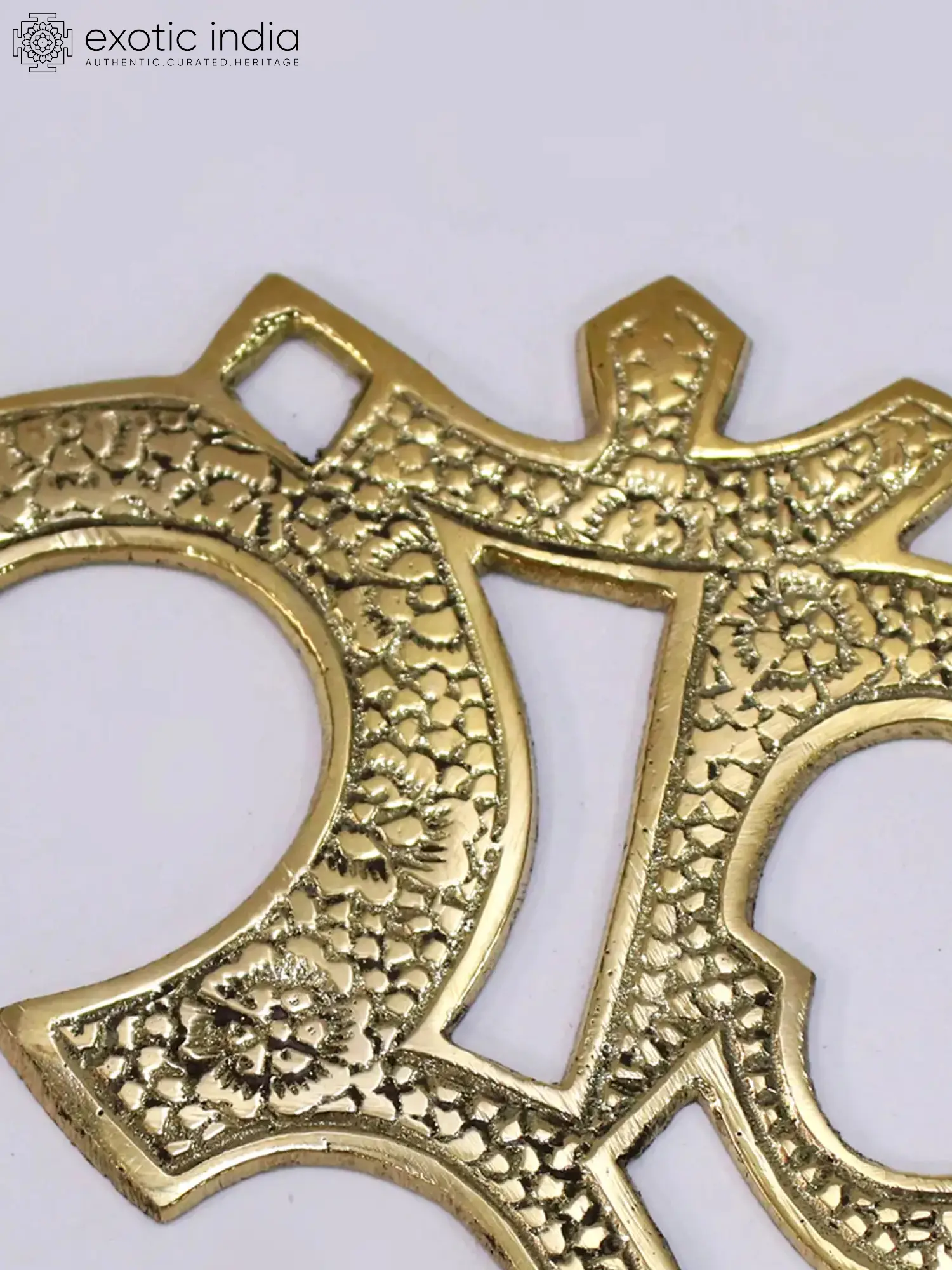 The sacred word Om, representing the Supreme Power in Indian scriptures, is the primal sound from which all other sounds and creation emanate. A person who realizes is said to unite with the Absolute. This brass wall hanging in the sacred image of Om is an homage to the infinite knowledge inside this symbol. Placing an Om sign on a wall is considered sacred in many Hindu households, and this wall hanging proves that heavenly intent. A meditator can obtain extreme tranquillity and motivation for gaining global wisdom. By hanging this wall