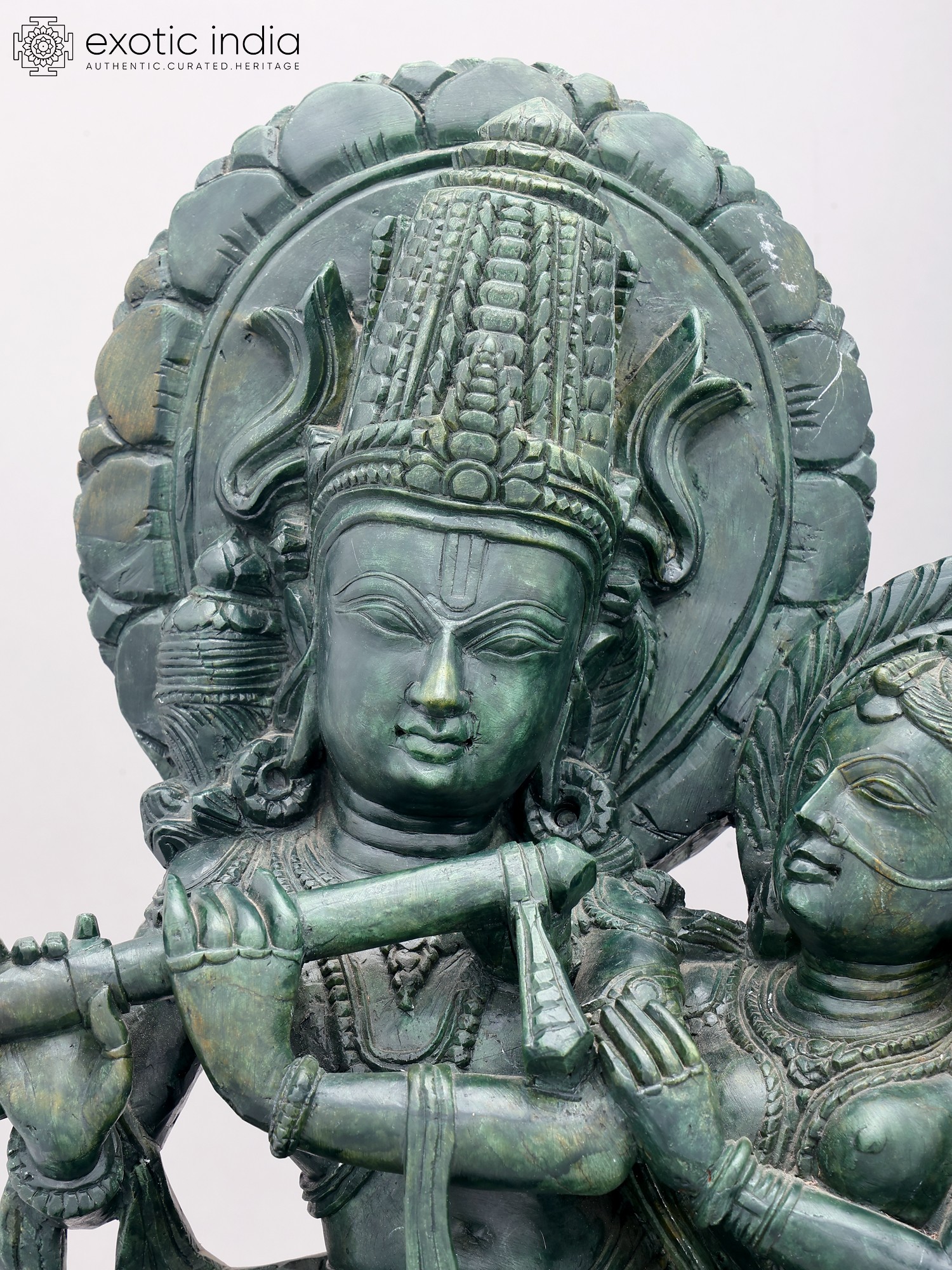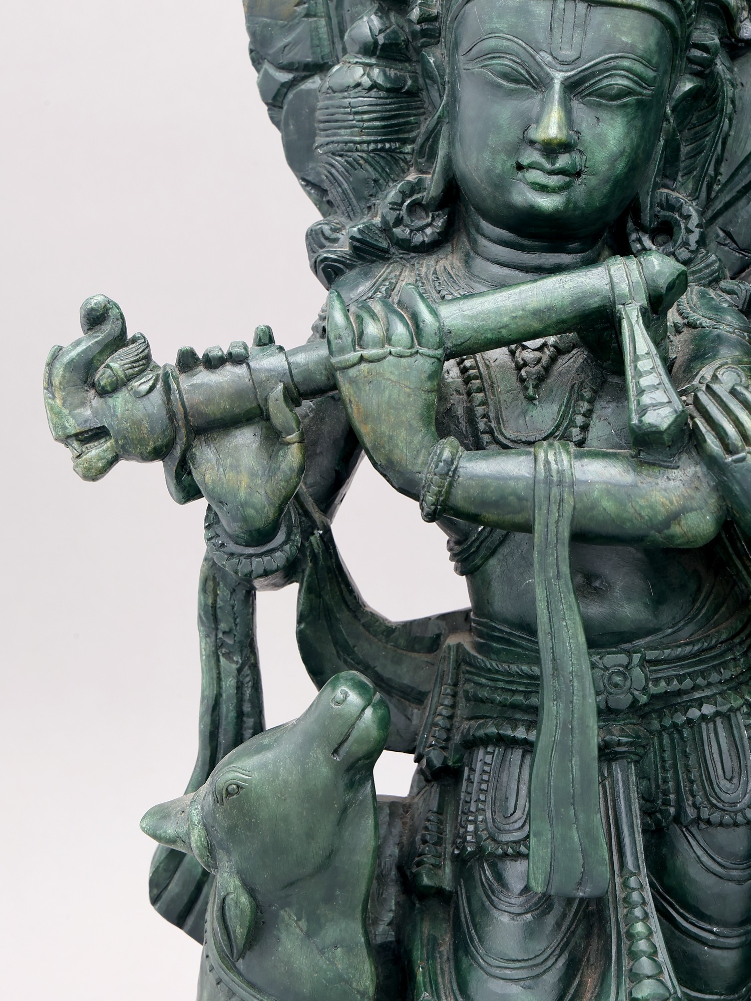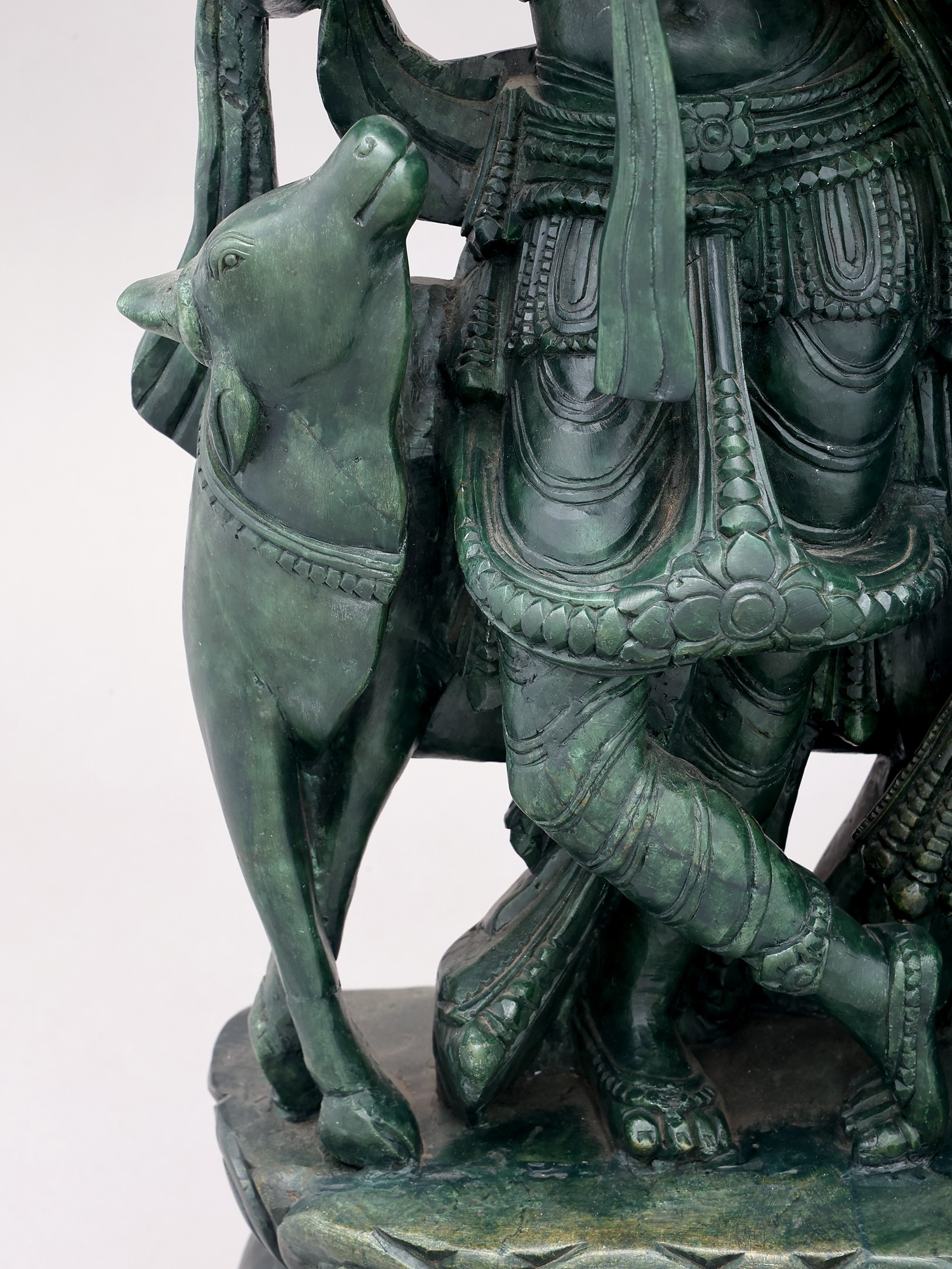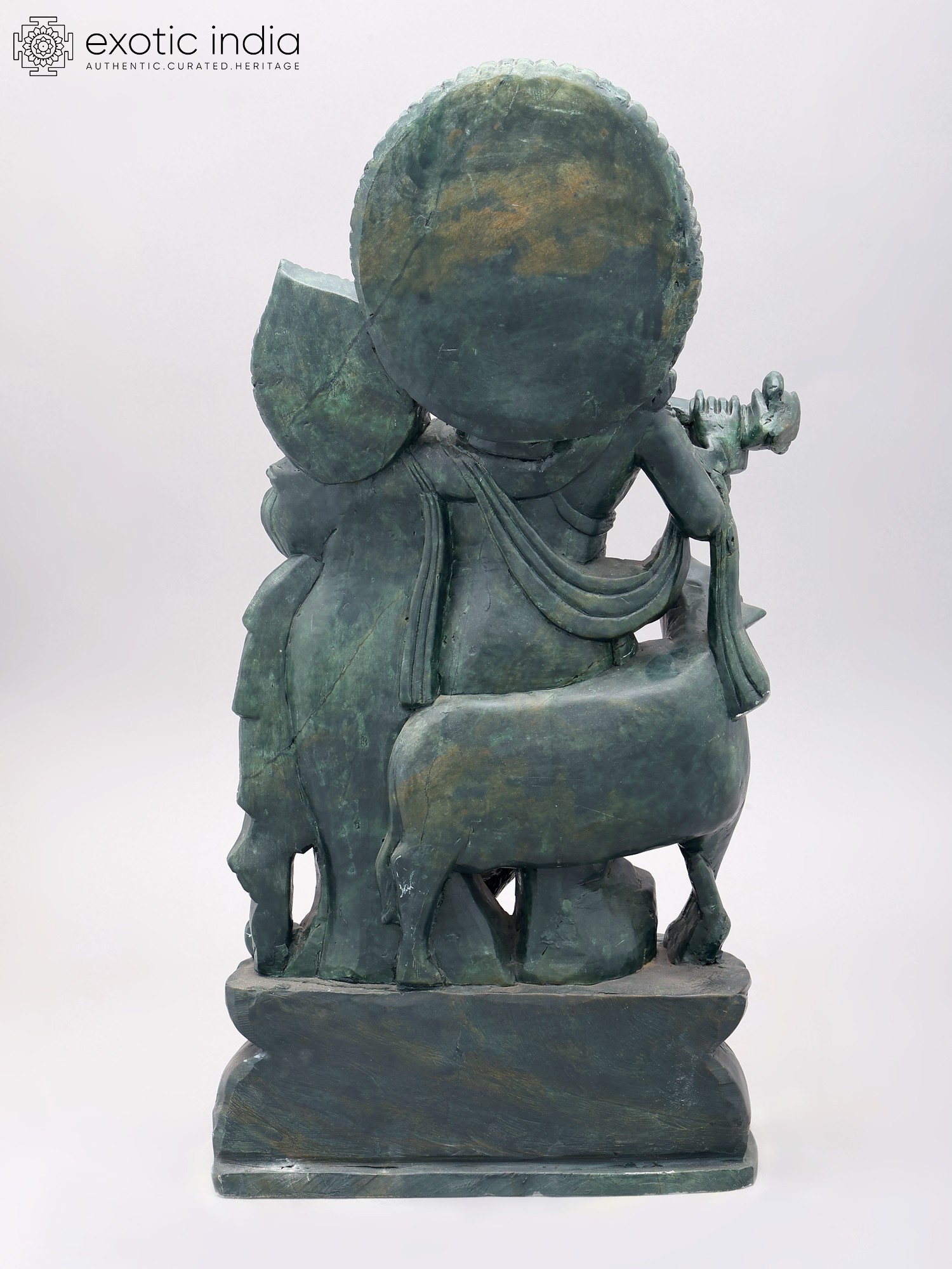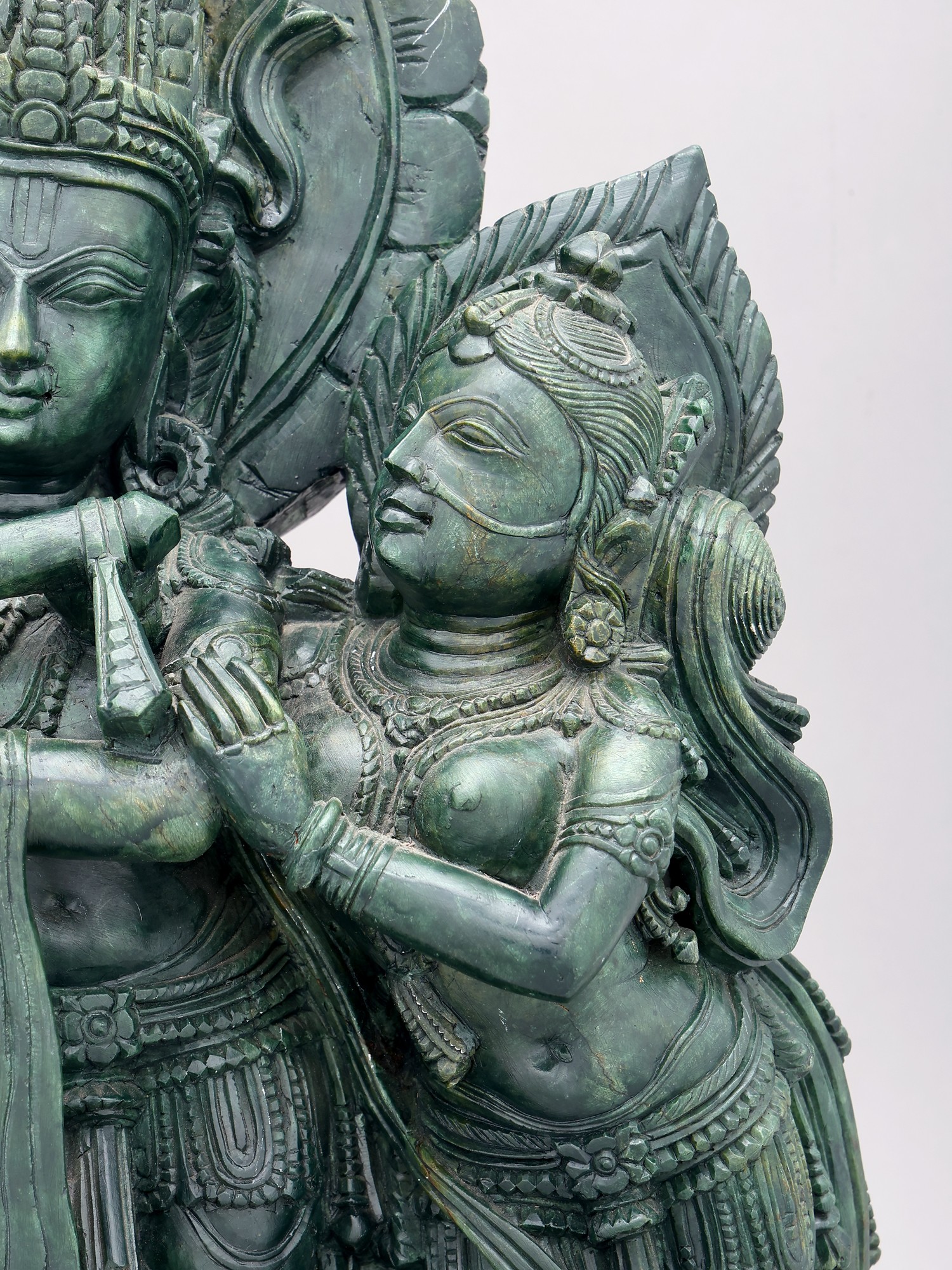 Orissa Green Stone Statue: 22" Radha Krishna with Cow