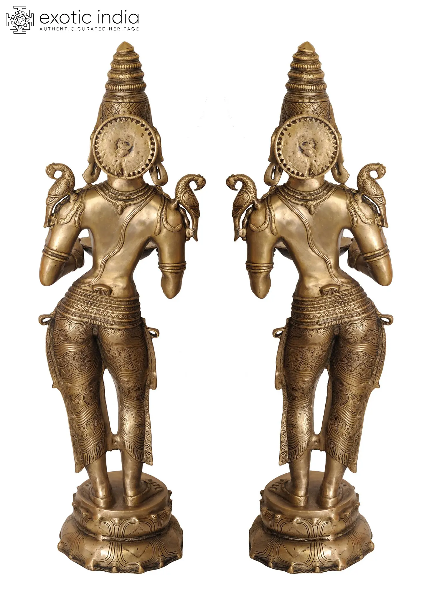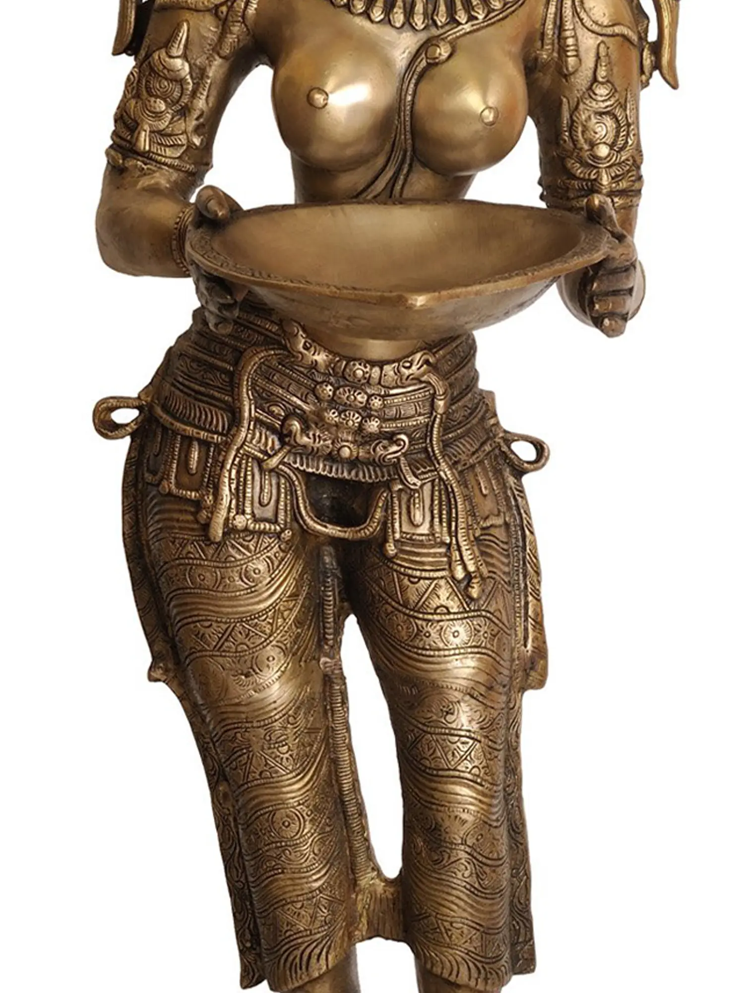This large size sculpture pair represents two damsels carrying a metal pan meant for a lamp and is popularly known as Deepa Lakshmi. It was around the later half of the 16th century that the DeepaLakshmi statues came into being.