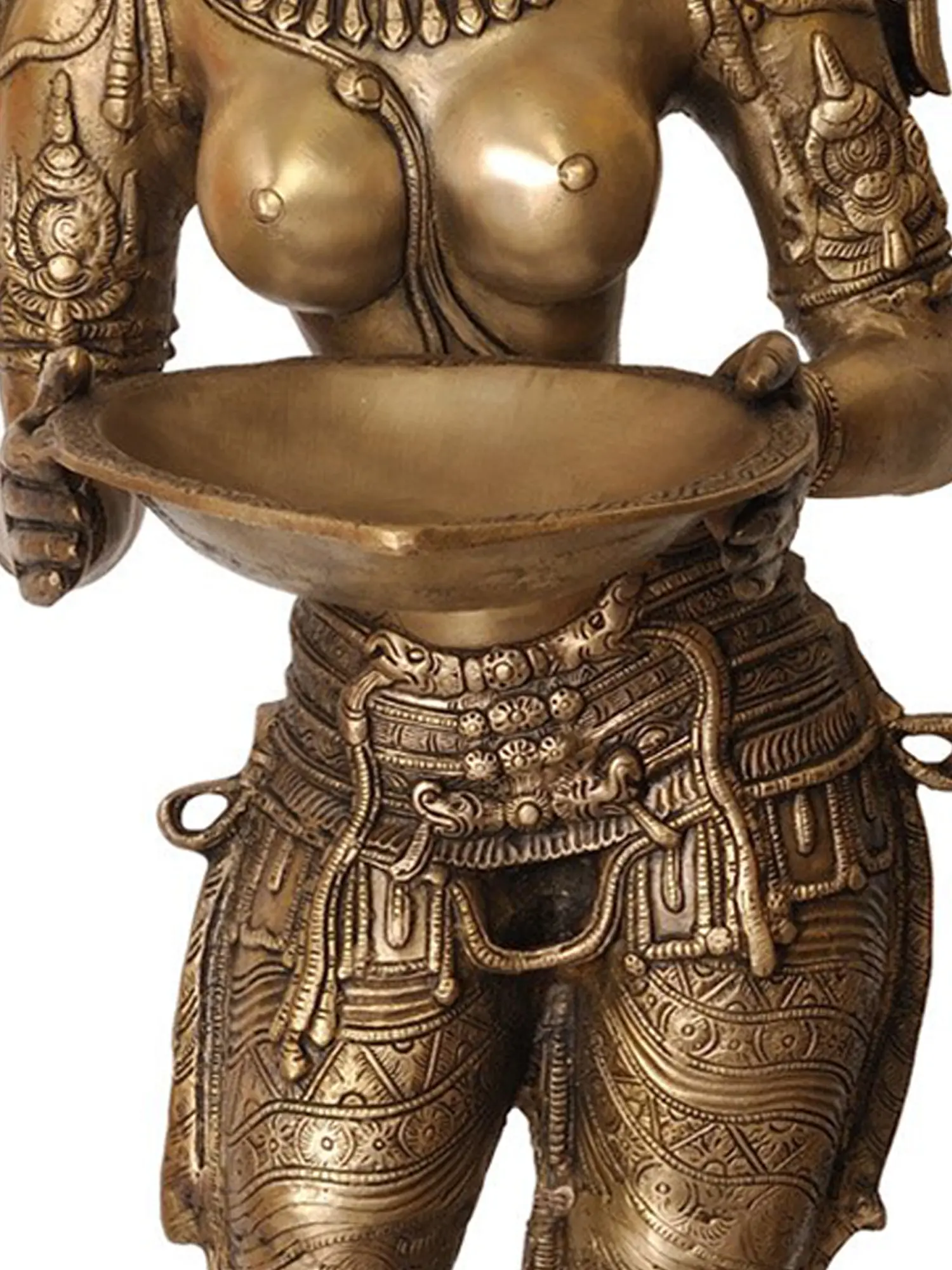 These statues were votive images conceived for Diwali Pooja and with their lamps kindled were used as auspicious motifs to be worshipped along with Lakshmi, the presiding deity of the Deepawali festival, and Ganesha who removed all obstacles. Initially, such statues were gifted to patrons but later they were also sold like other artifacts both for gifts and personal use.