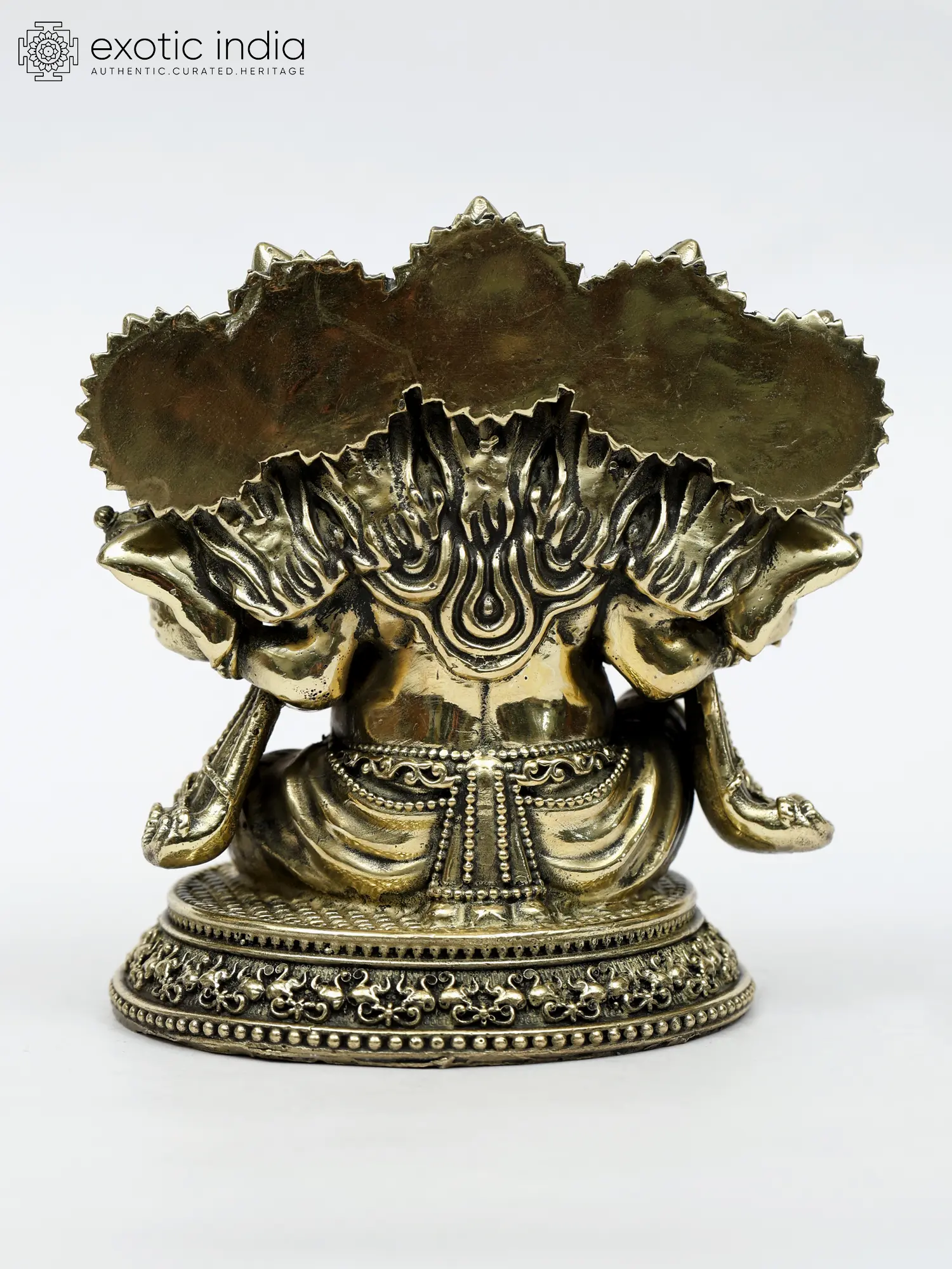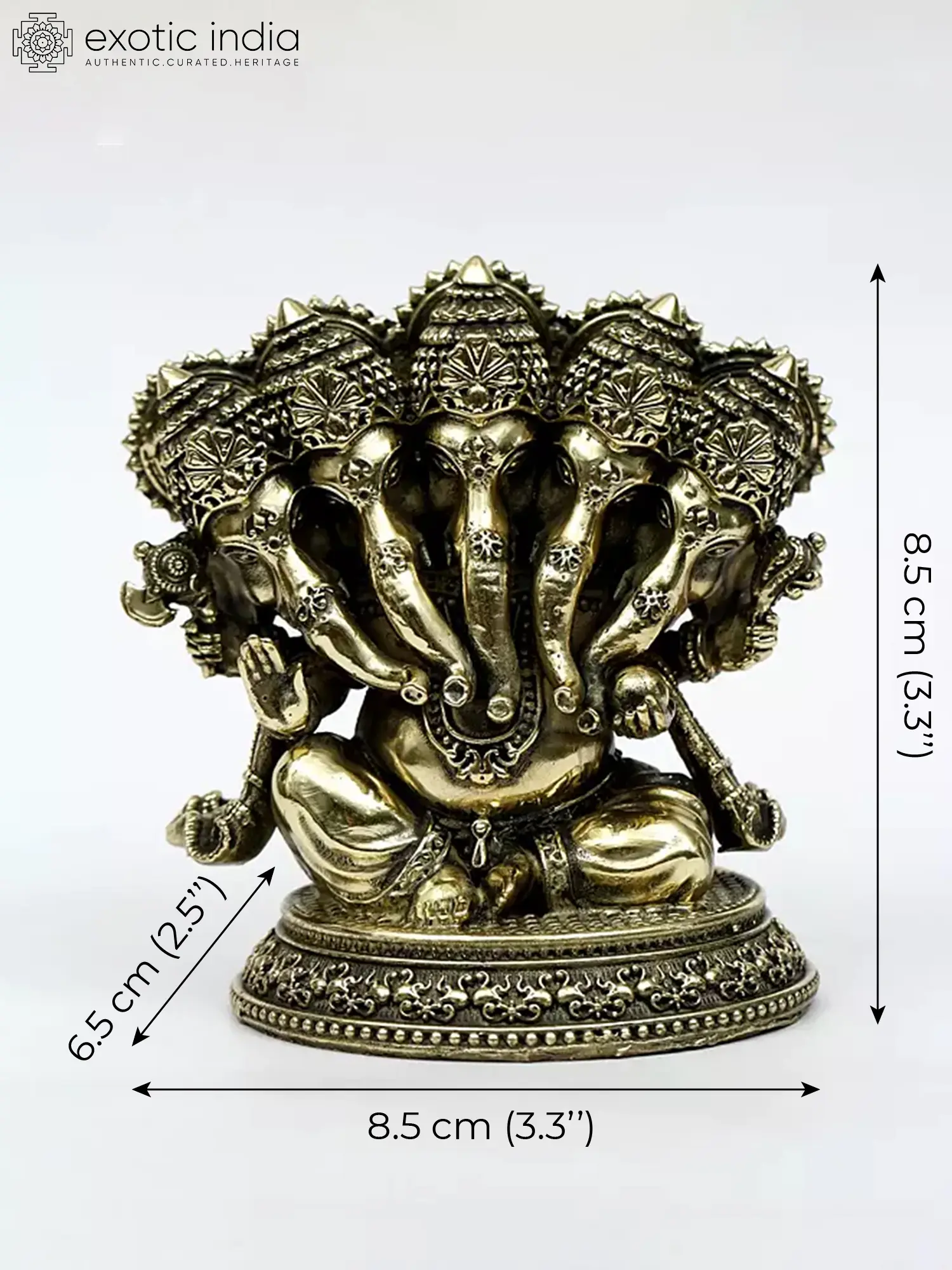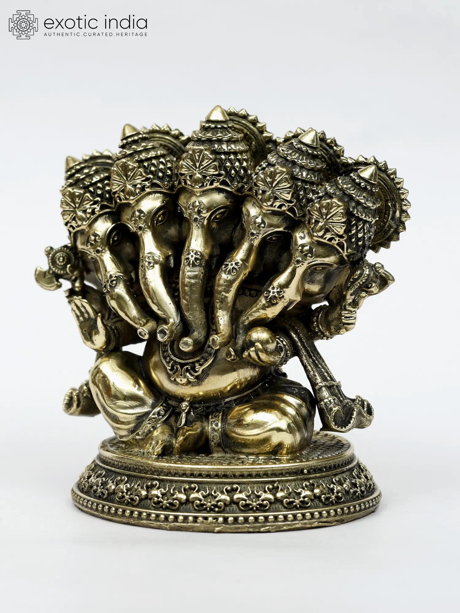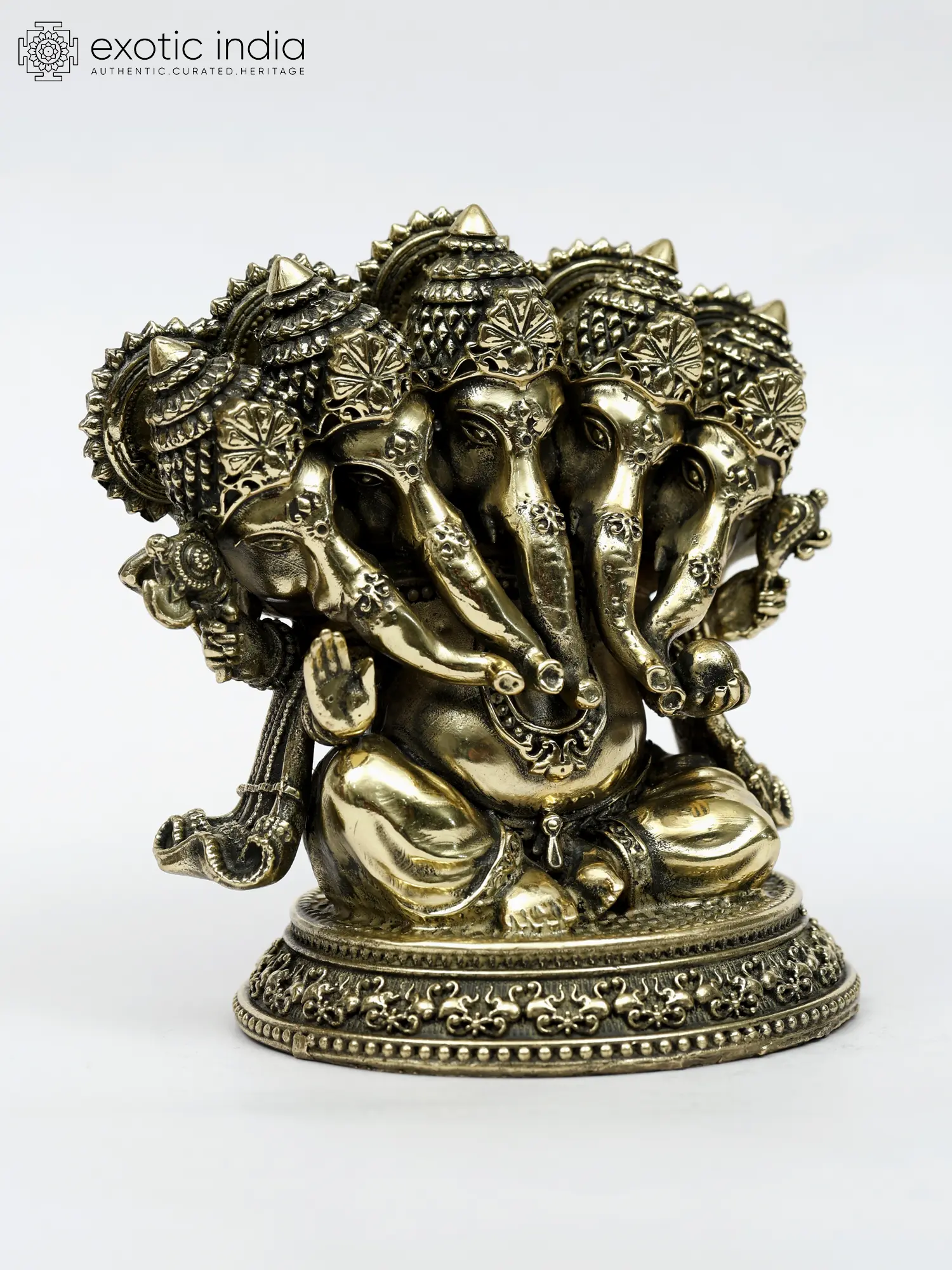 Five divine flowers sprouting from the pot of auspiciousness that is Ganesha's body, the heads (symbol of Pancha-Bhuta or five elements of life) of Panchamukha Ganesha in this brass statue are a sight to behold. The symbol of wisdom, the elephant heads of Ganesha are delineated in a visual symmetry, to represent a bloom of wisdom.