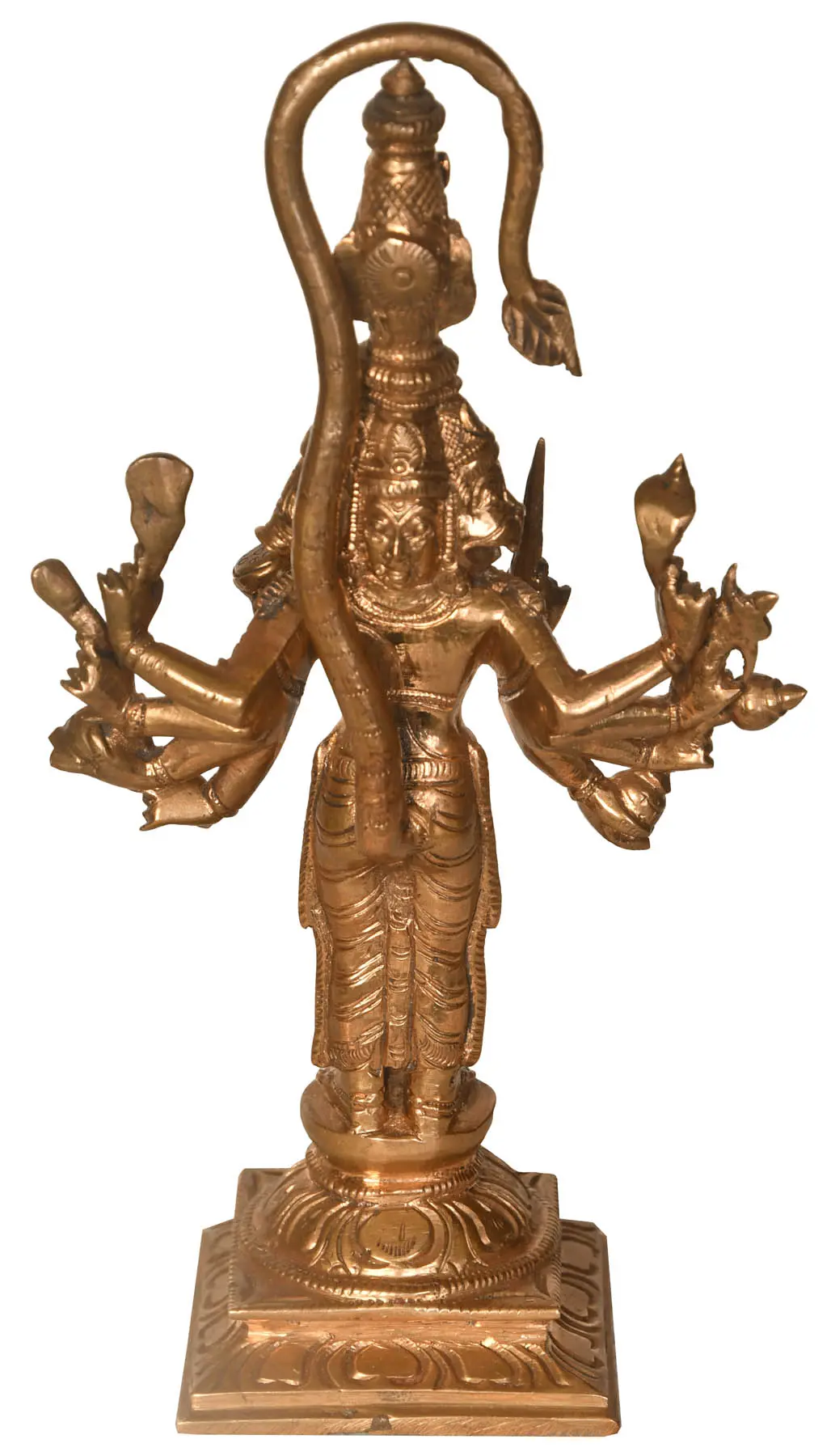 9" Superfine Standing Ten Armed Panchamukhi Hanuman | Wall Hanging Wood Framed Brass Sculpture
