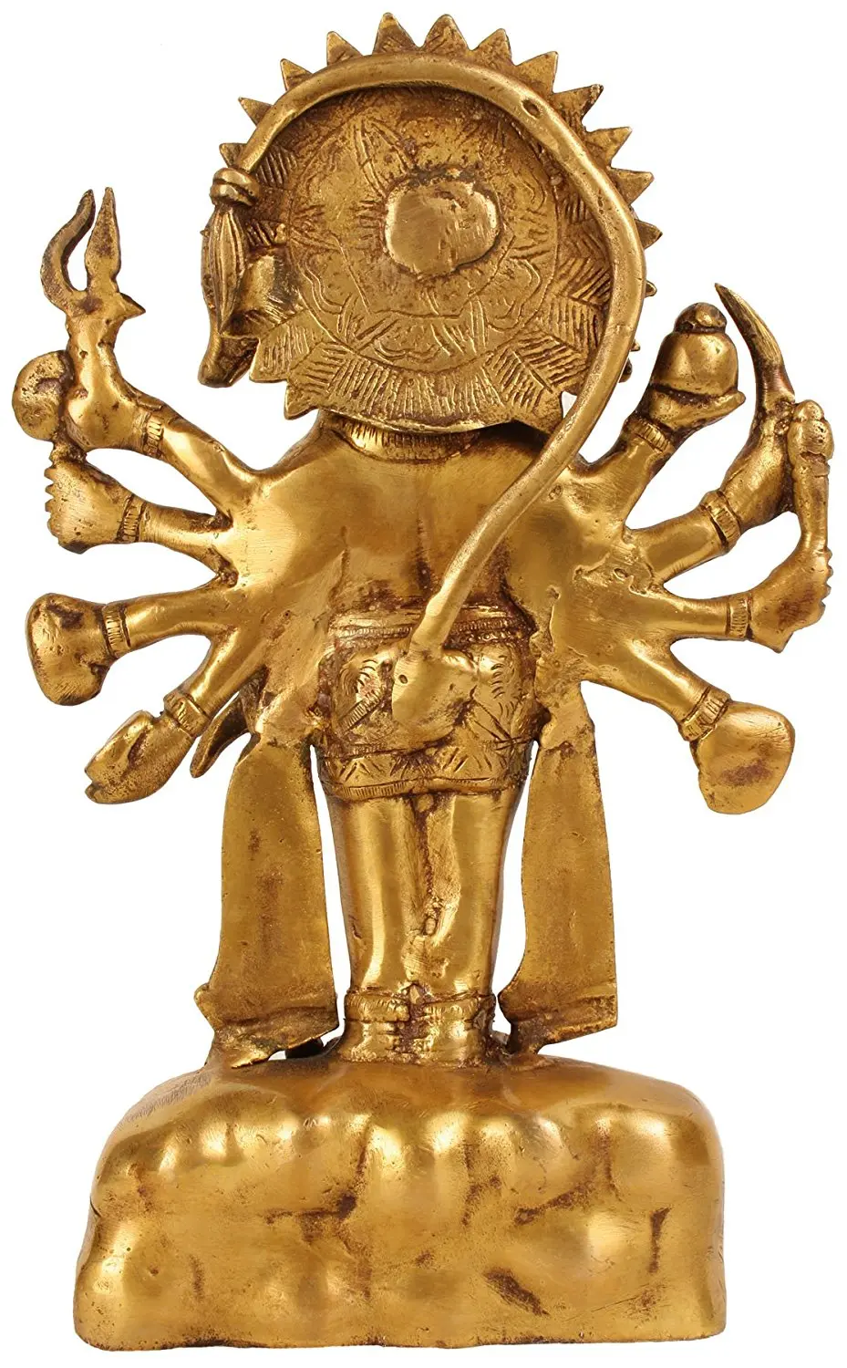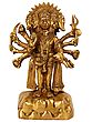 Crafted from high-quality brass, this statue showcases the meticulous artistry and attention to detail characteristic of traditional Indian craftsmanship. The warm, lustrous glow of the brass enhances the divine aura of the deity, while the detailed carvings on each face, the multiple arms holding various divine weapons and symbols, and the ornate attire speak volumes of the artisan's skill. From the powerful posture to the serene expressions of some faces and the fierce determination of others, every element is rendered with profound reverence. The sturdy base, reminiscent of a rocky terrain, grounds the divine figure, symbolizing his unshakable resolve and his ability to stand firm against any adversity. This statue is not merely a decorative item but a sacred artifact, imbued with spiritual significance and artistic excellence.