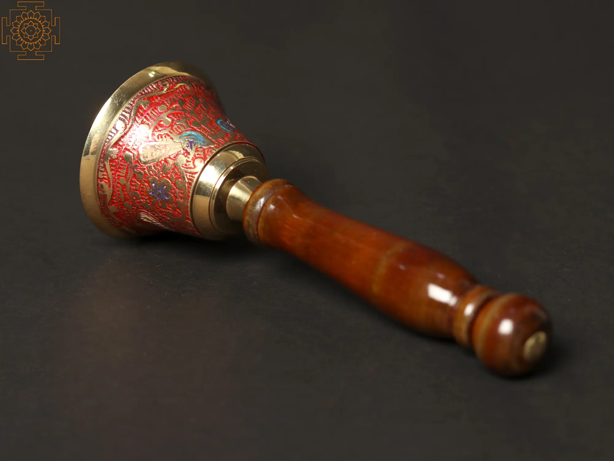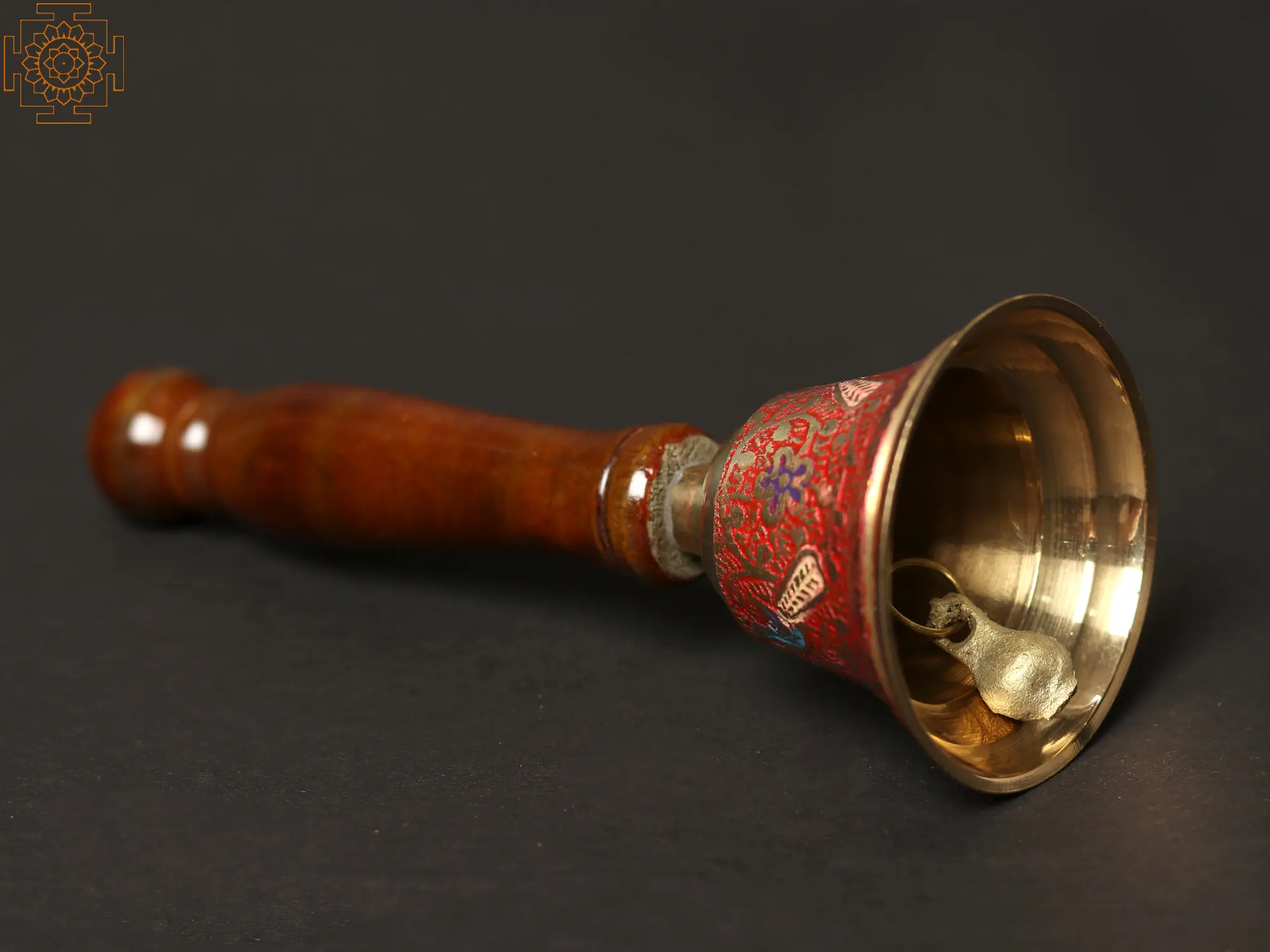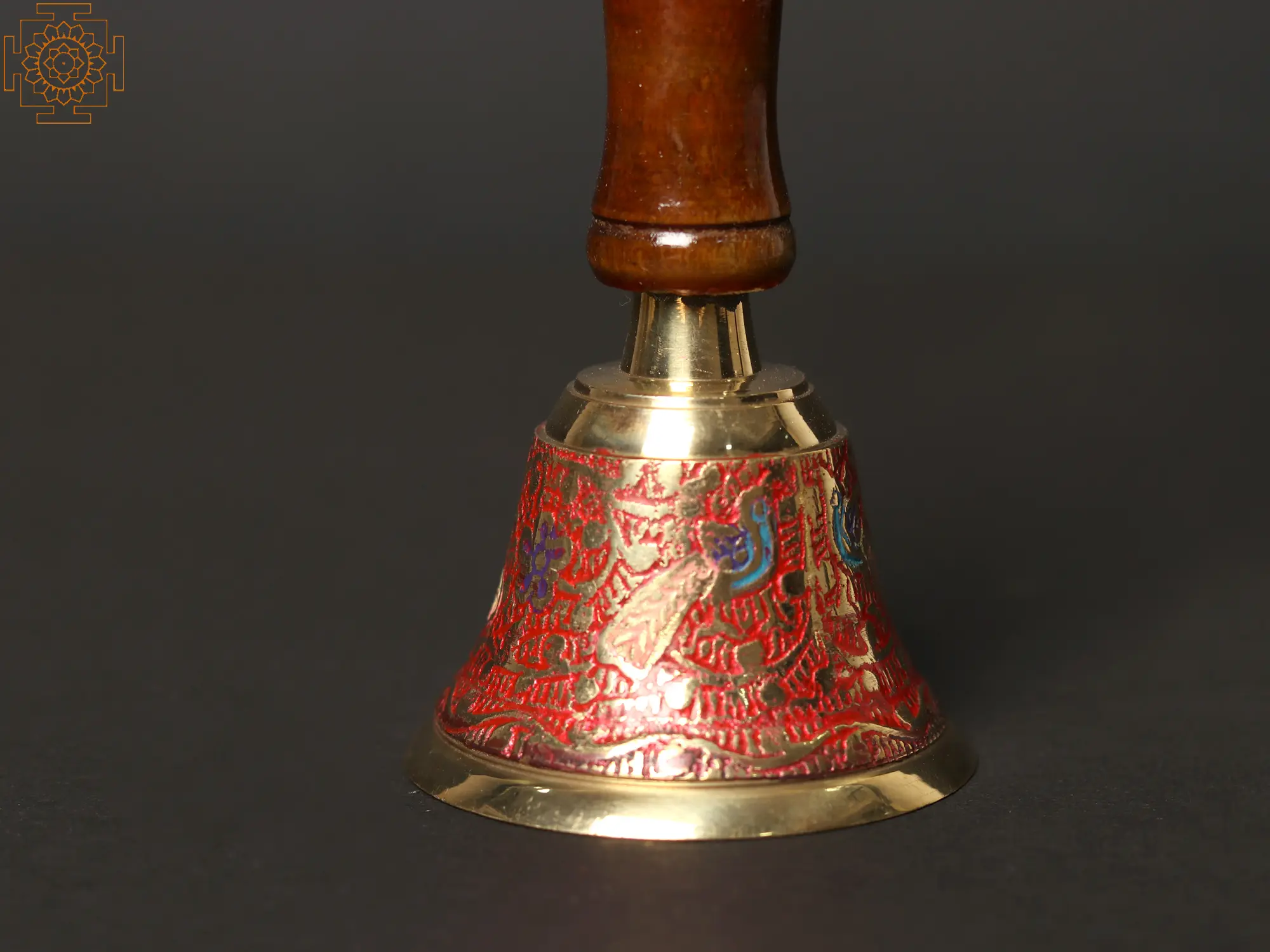 This little brass bell with a wooden grip shows planetary energy interacting with natural forces. The motif of peacocks or Annam in Meenakari art in red and blues adds to the auspiciousness of the portable bell. Placing this bell at a place of worship will not only help to harmonise heavenly forces but will also inspire others in the surrounding region.