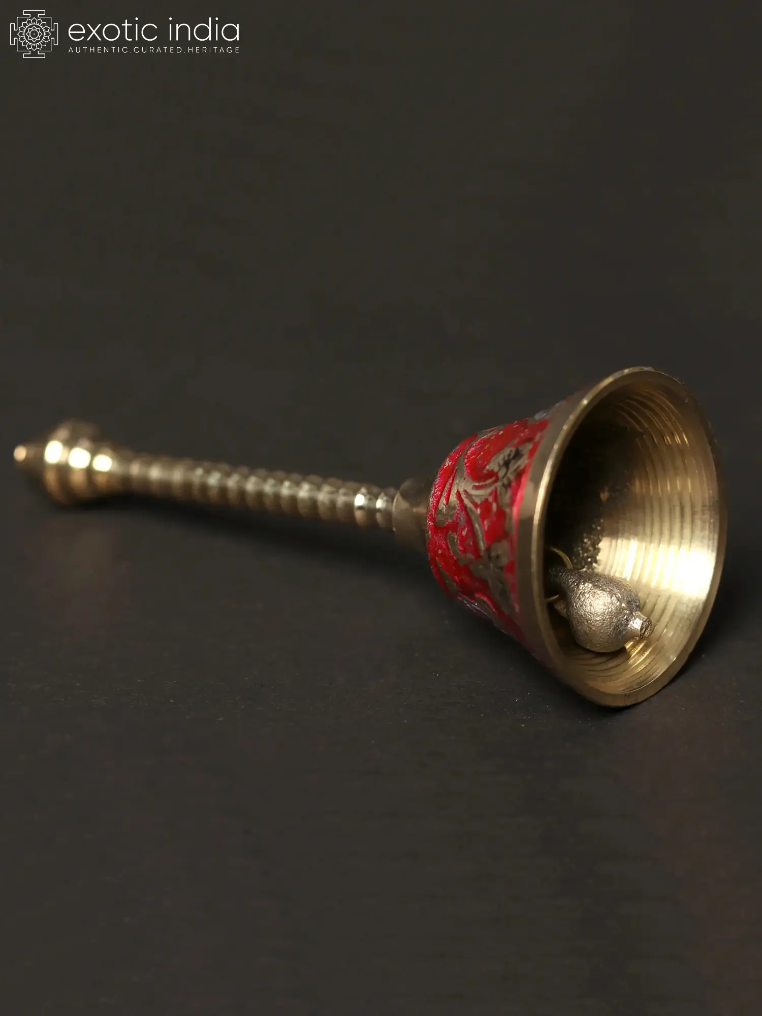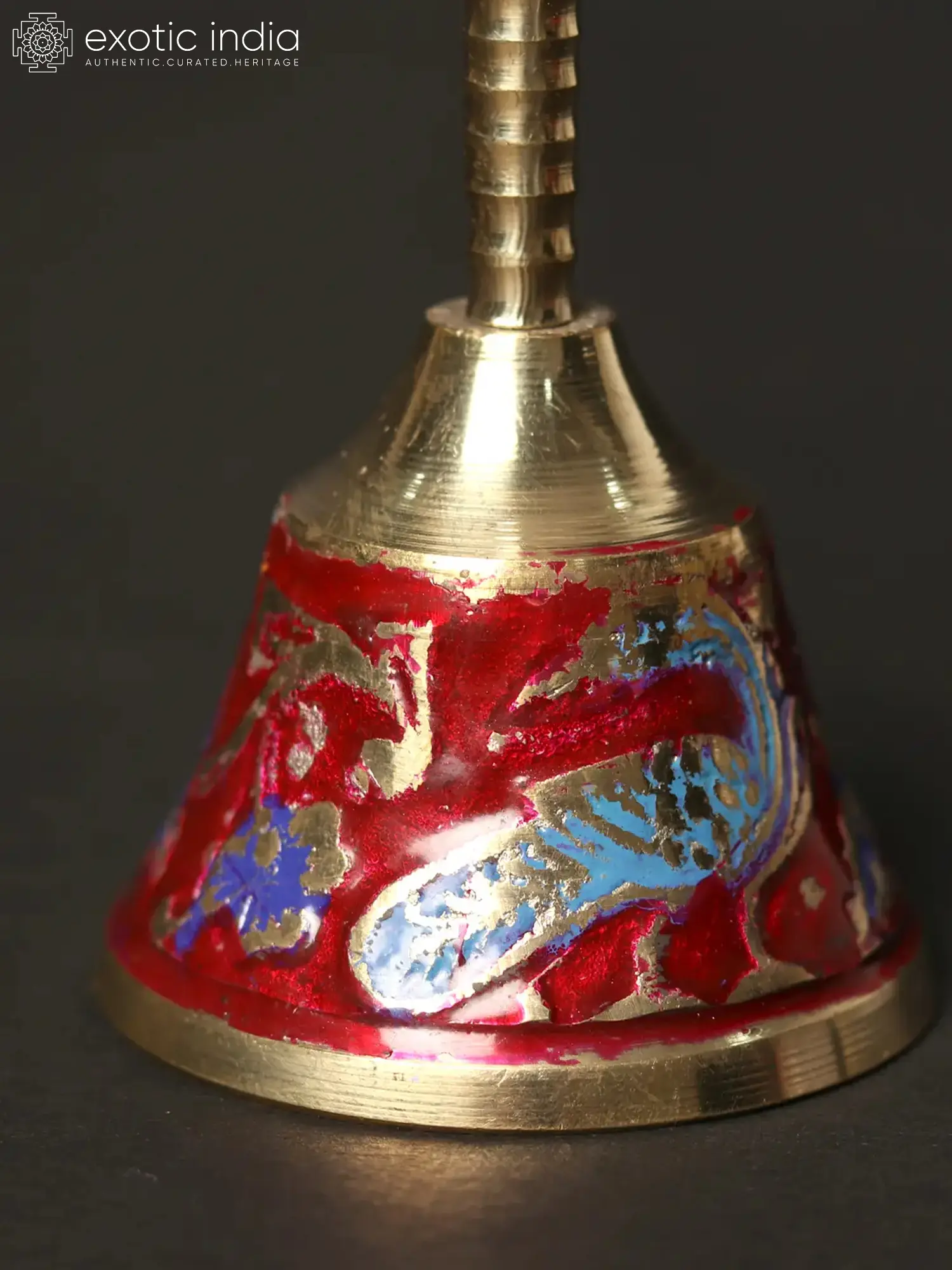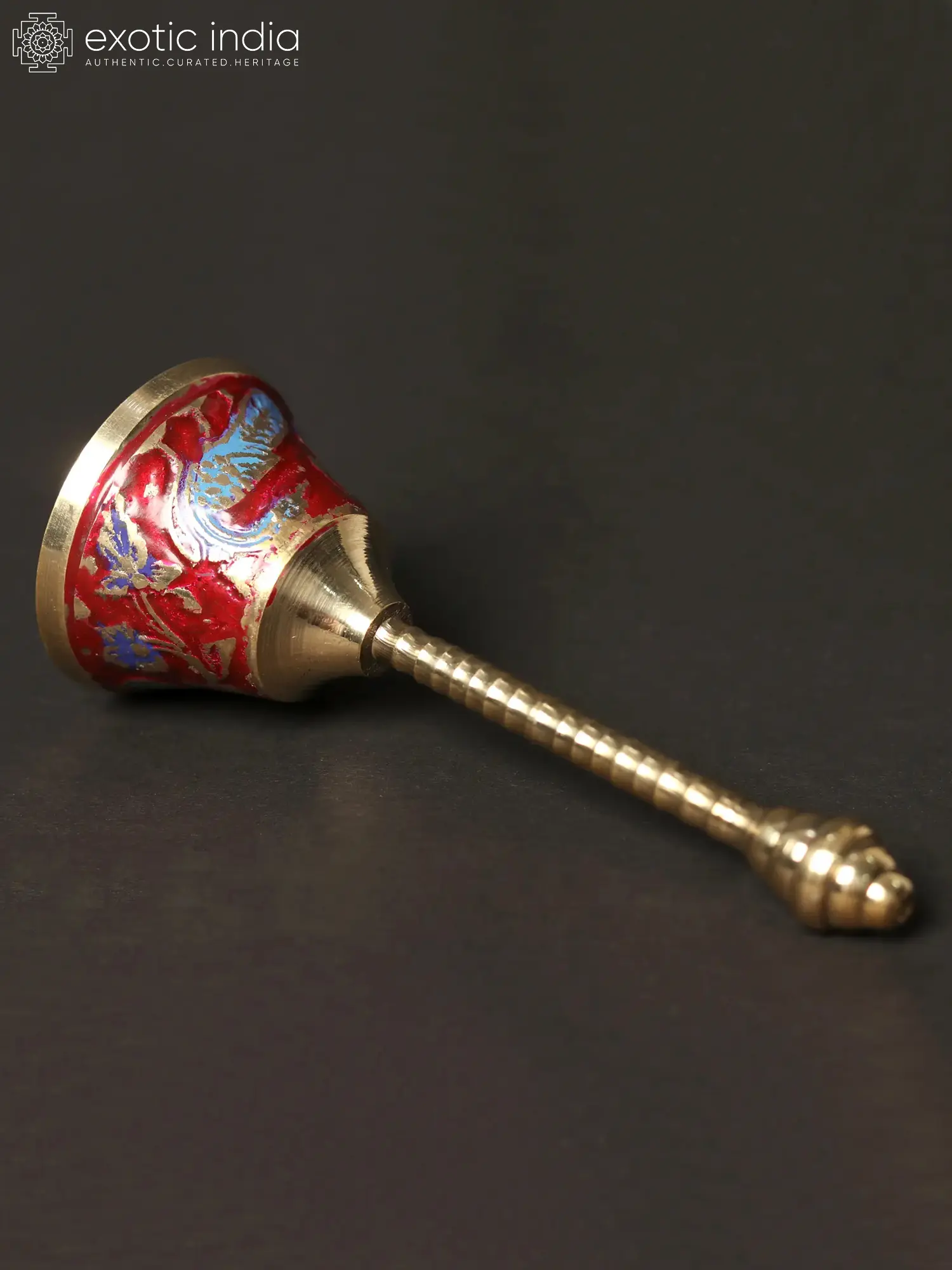 Peacocks have always been a symbol of grandeur. They are regarded as auspicious, and many art forms use their image to increase their beauty. This brass bell with peacocks in meenakari is a beautiful amalgamation of ceremonial use and a sense of beauty. It will not only help remove negative energy through the vibration of the bell but will also enrich the space with beauty.