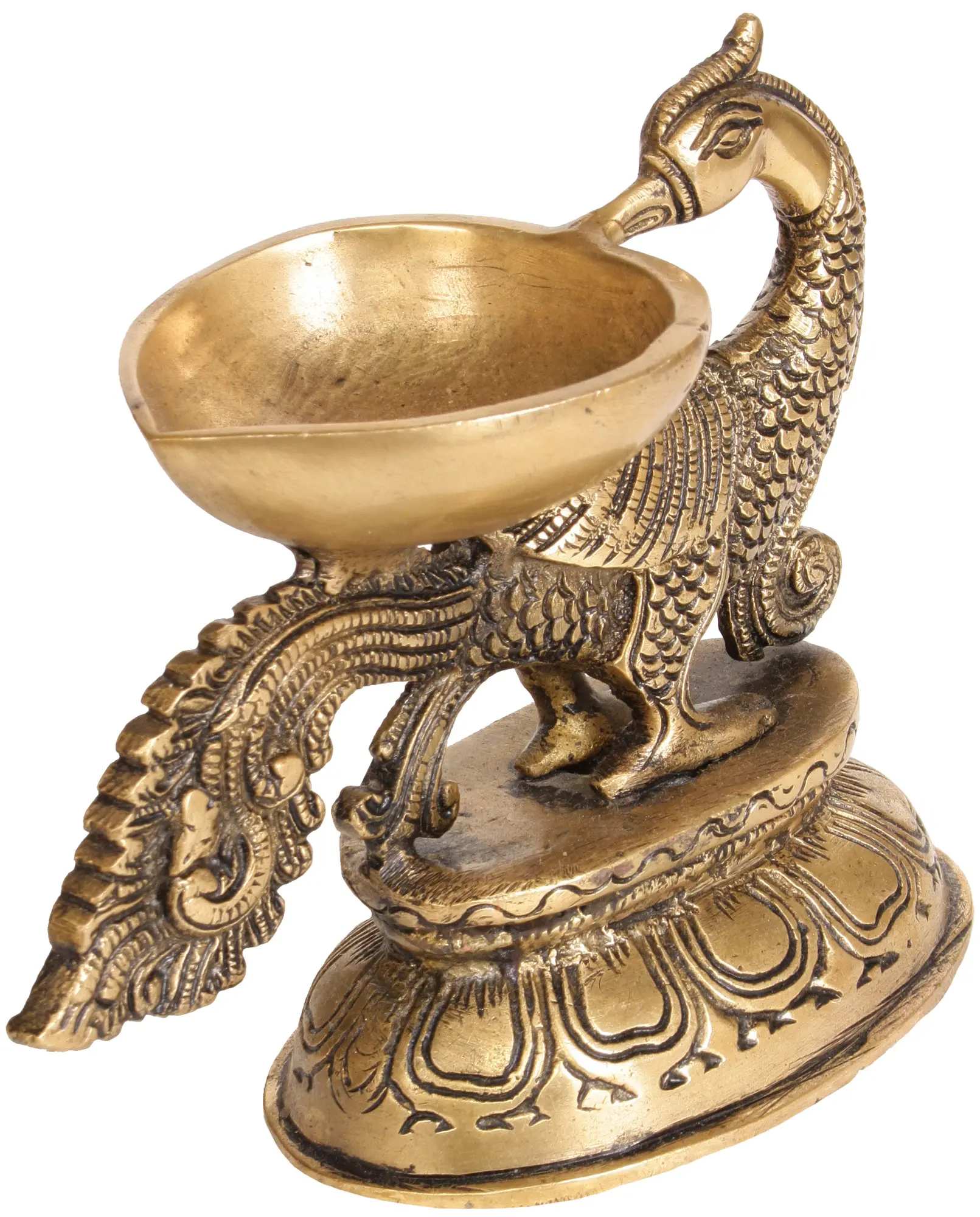 4" Peacock Lamp in Brass | Handmade | Made in India