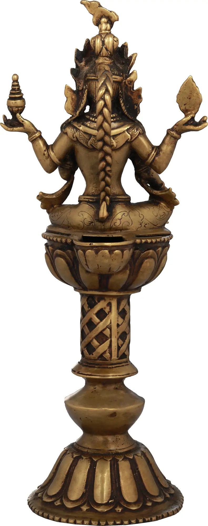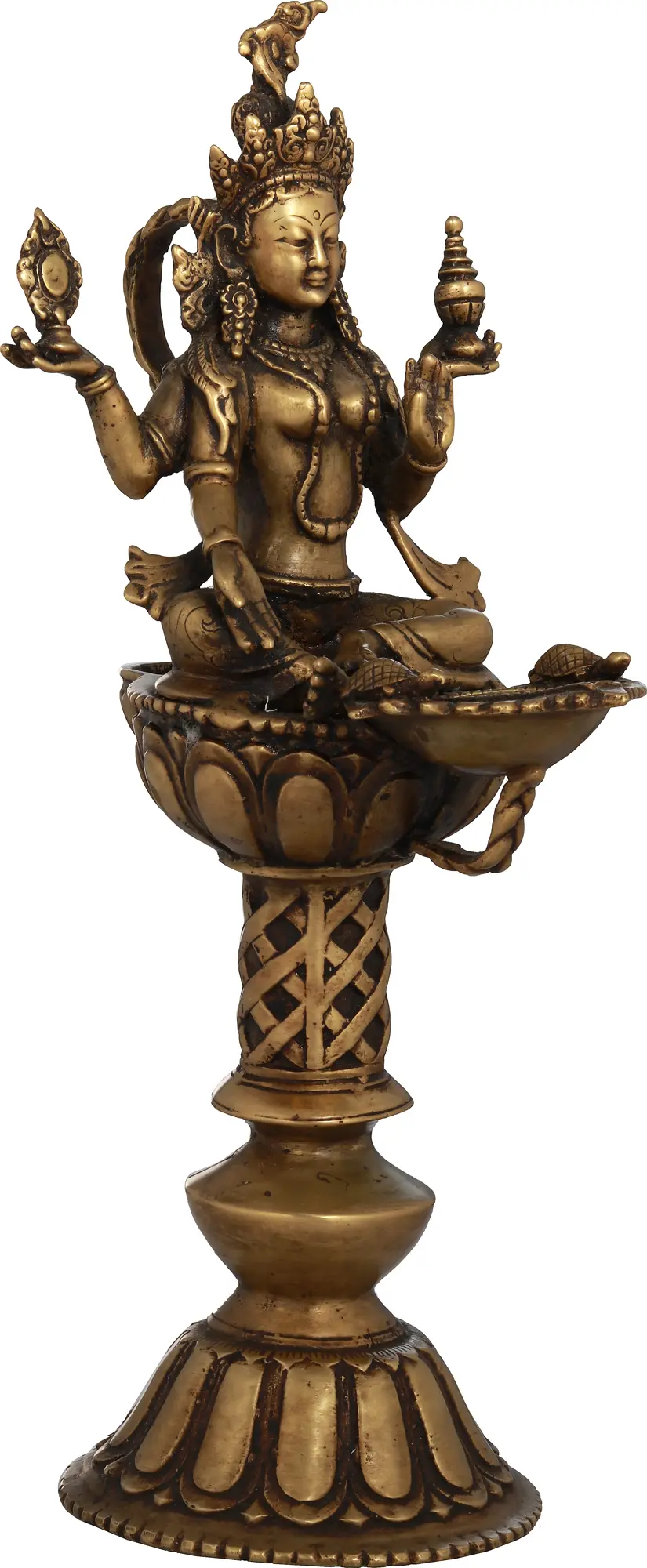 Pooja Lamp with Nepalese Form of Goddess Lakshmi - Made in Nepal