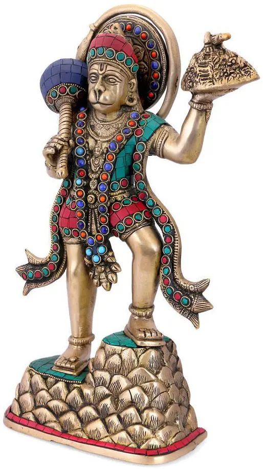 The Powerful Hanuman (Richly Inlaid Brass)