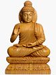 This exquisite sculpture, meticulously handcrafted from Shivani wood in Mysore, captures the serene essence of Buddha imparting wisdom. The artist has rendered intricate details, from the gentle folds of his robes to the delicate curls of his hair, each element contributing to the overall sense of peace and enlightenment emanating from the piece. The statue’s warm, natural wood tone adds a touch of earthly grounding to the spiritual subject matter. Its presence invites contemplation and tranquility into any space it occupies.