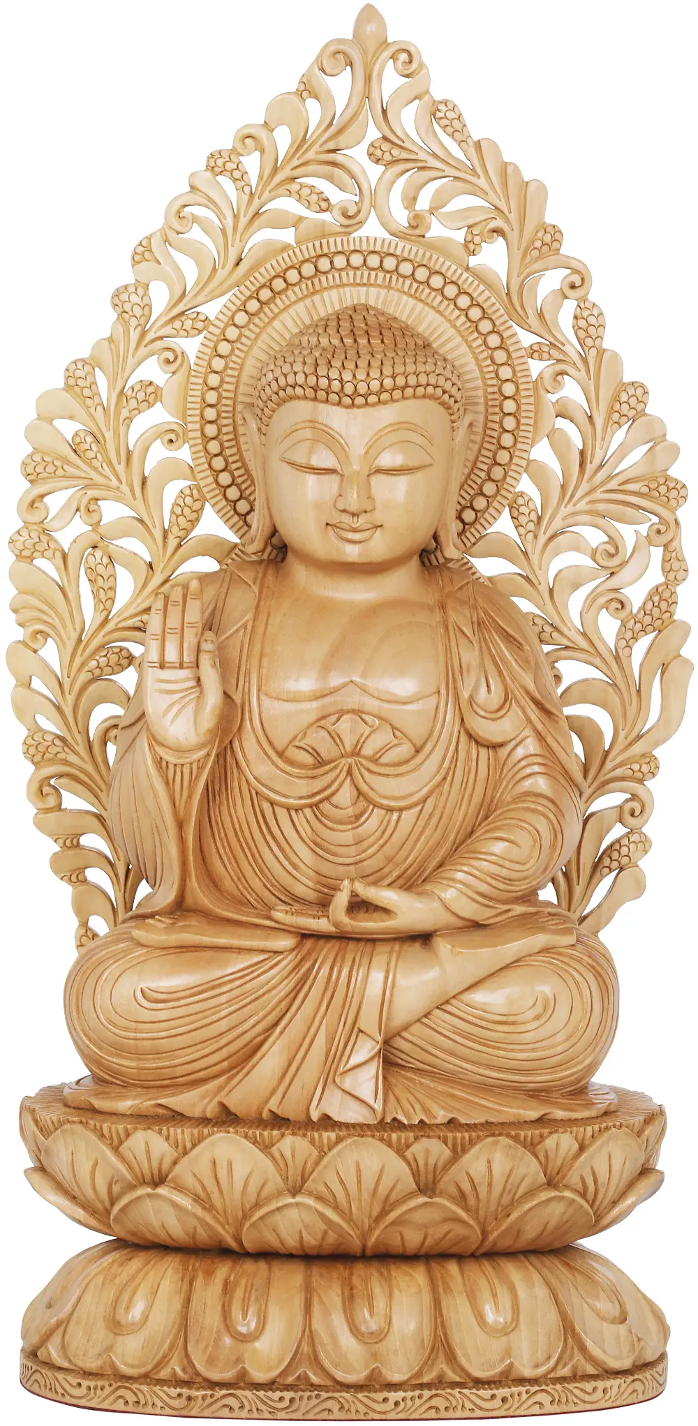 Within the calm domain of Buddhism, the preaching image of the Buddha represents the triplets of enlightenment, wisdom, and compassion. While imparting his profound teachings to his pupils, he is portrayed as a calm and contemplative figure who exudes peace and spiritual grace. The Buddha converses compassionately, leading listeners towards inner peace and freedom from suffering, all the while maintaining a calm expression on his face and a soft manner.
