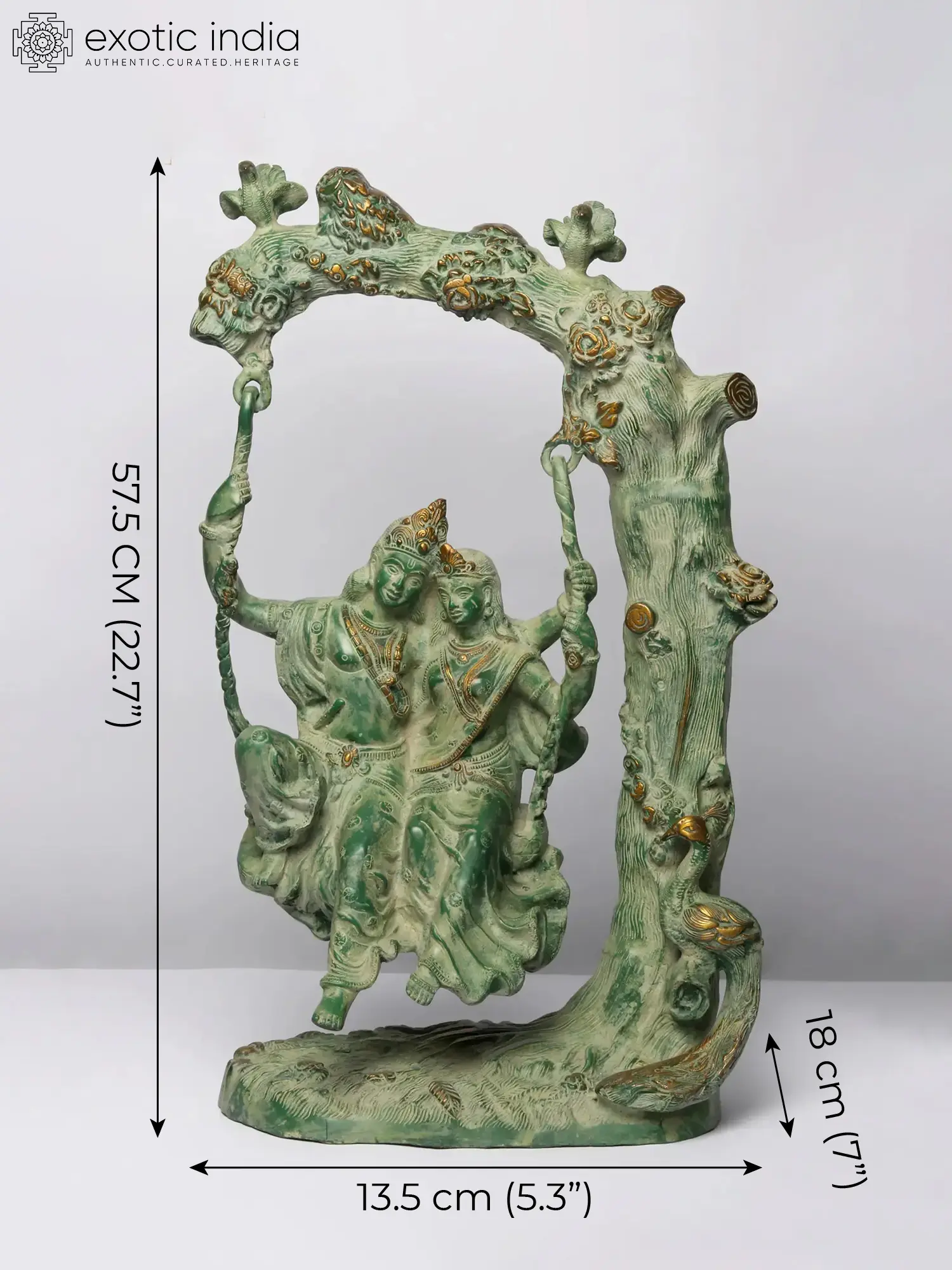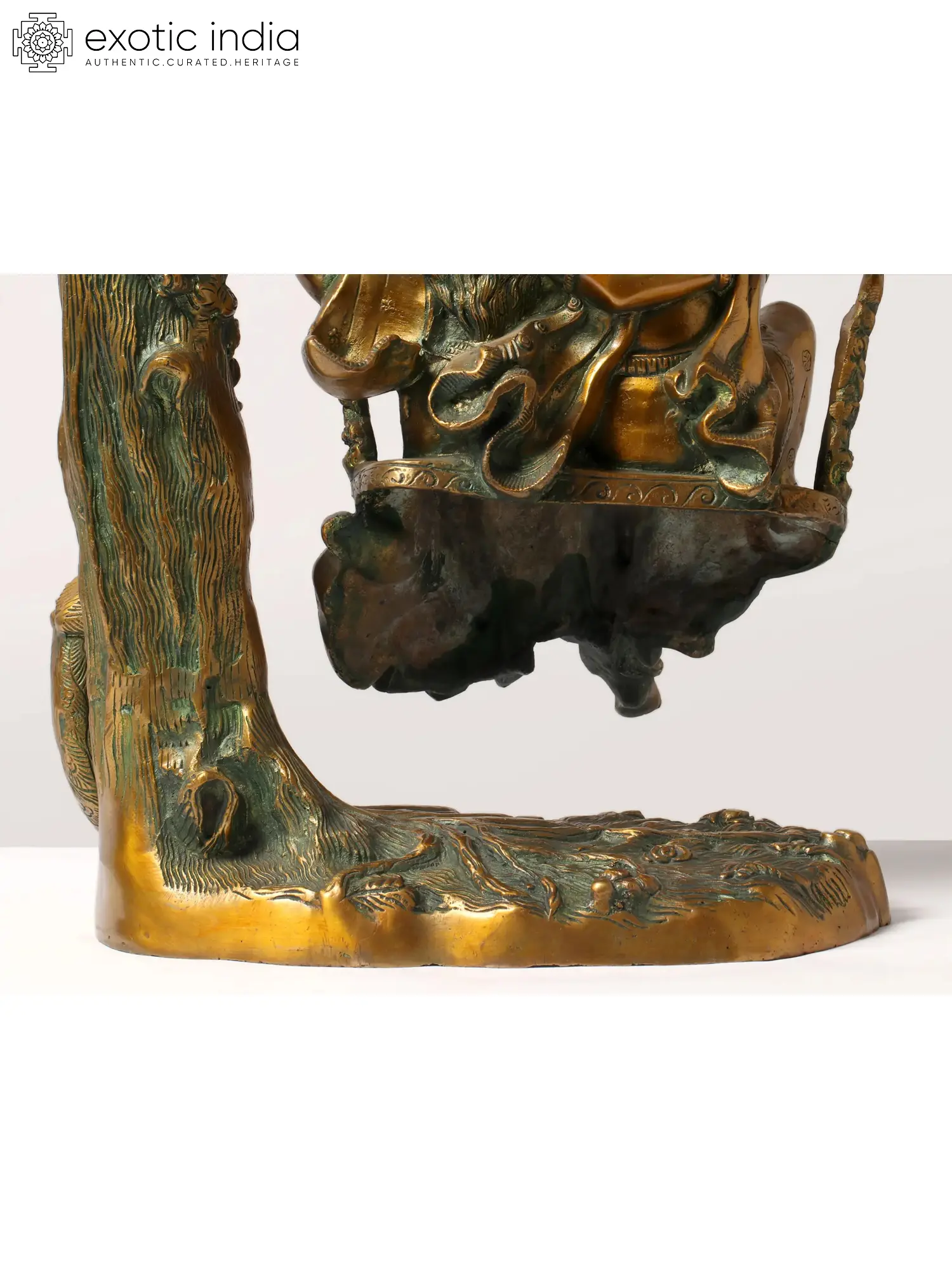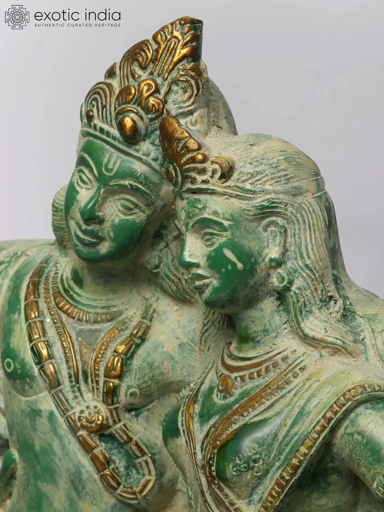 Transport yourself to the realm of divine love and eternal romance with our enchanting brass sculpture of Radha-Krishna. This handcrafted masterpiece captures the essence of love, devotion, and the amorous bliss that transcends earthly boundaries. As you explore the sculpture, you'll be drawn into the intricacies of Radha and Krishna's expressions, the graceful swing, and the symbolism of their eternal bond. This artwork is more than just a piece of art; it's a symbol of divine love and the profound philosophy of union with the divine. Display it in your space as a reminder of the eternal love story that transcends time and encourages a deeper connection with the divine.