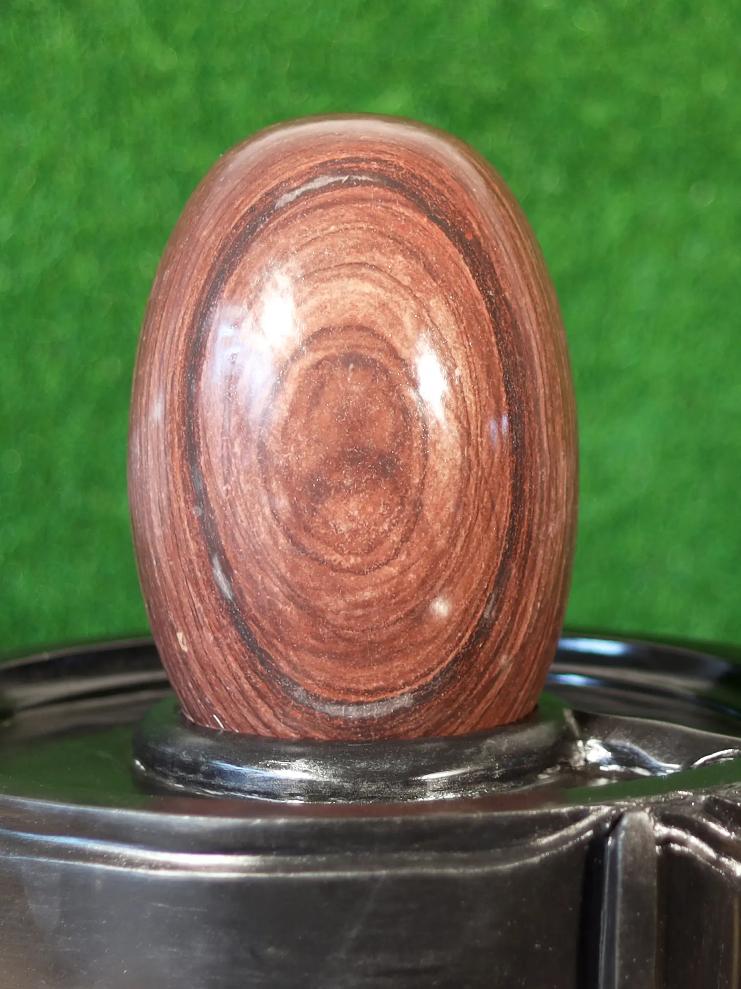 Embrace the divine with this exquisite Shiva Lingam, meticulously crafted from the sacred Narmada River stone. The Narmada, revered as one of India's holiest rivers, flows through the Vindhya mountain range, and it is from its waters that these unique and auspicious stones are found. Legend states that the Narmada River itself is a manifestation of Lord Shiva, and the stones that emerge from it are imbued with his divine energy. Each Narmada Lingam is naturally formed, a testament to the artistic prowess of nature and a direct connection to the primordial cosmic power. This particular lingam showcases the inherent beauty of the Narmada stone with its captivating swirling patterns and rich, earthy tones. The smooth, polished surface reflects light, drawing the eye and inviting contemplation. The oval form, symbolizing the creative and destructive forces of the universe, rests upon a finely sculpted base. This base, often referred to as the yoni or the womb, represents the feminine creative energy that complements the masculine Shiva principle. Together, they form the complete cosmic totality, the source of all existence. The Shiva Lingam is a potent symbol in Hinduism, representing Lord Shiva in his abstract, formless aspect. It is not an idol in the conventional sense, but rather an emblem of the infinite, the source from which all creation emanates and into which all things dissolve. Throughout history, devotees have revered the lingam as a focal point for meditation and worship, believing it to possess profound spiritual potency. It is associated with fertility, prosperity, and spiritual growth. The act of worshipping the lingam is believed to purify the mind, remove obstacles, and bring about inner peace. The tradition of worshipping the Shiva Lingam dates back to ancient times, with mentions found in the Rigveda. Mythological tales abound, such as the story of the gods approaching Lord Vishnu to quell the demon Tripurasura, and Vishnu advising them to worship the lingam. The very act of creation is often described in terms of the lingam emerging from the void. By bringing this Narmada Lingam into your home or sacred space, you invite this ancient, powerful energy into your life. It serves as a constant reminder of the cyclical nature of existence, the interconnectedness of all things, and the omnipresent divine consciousness.