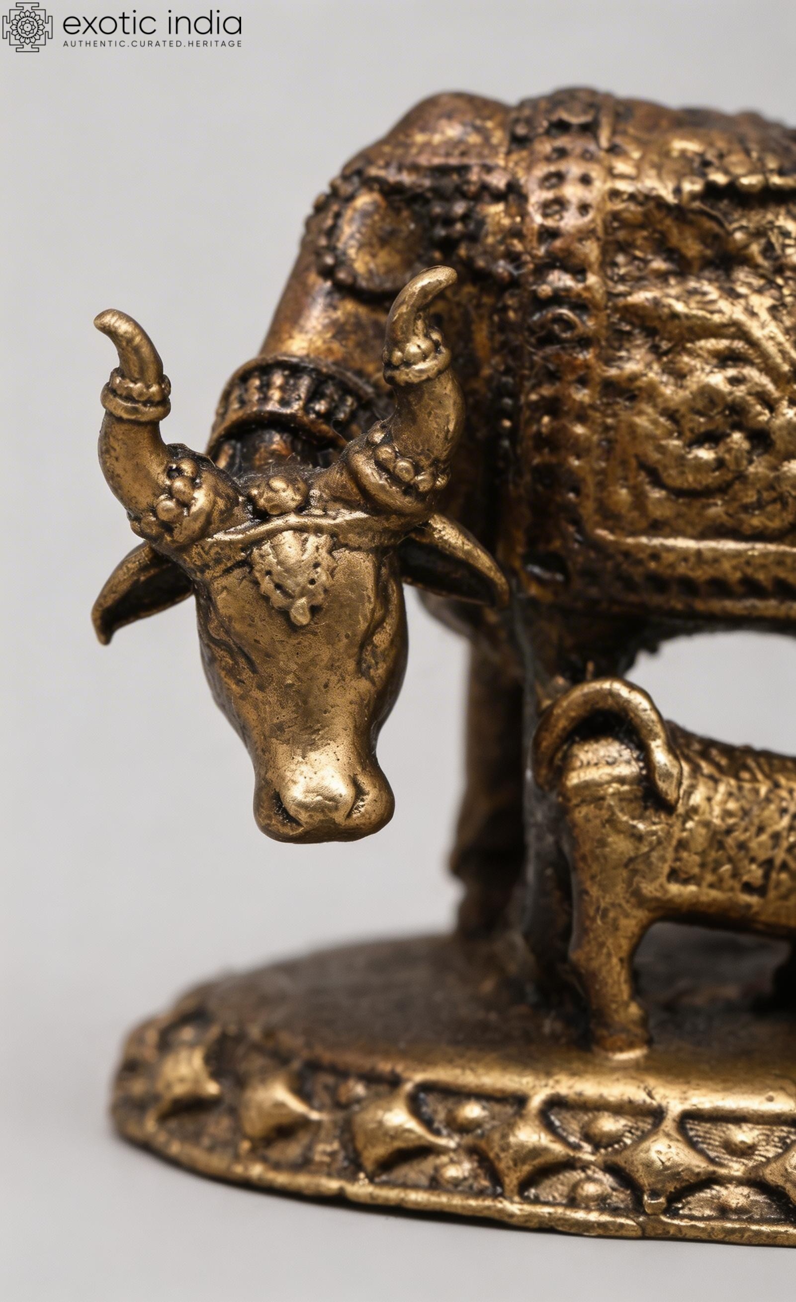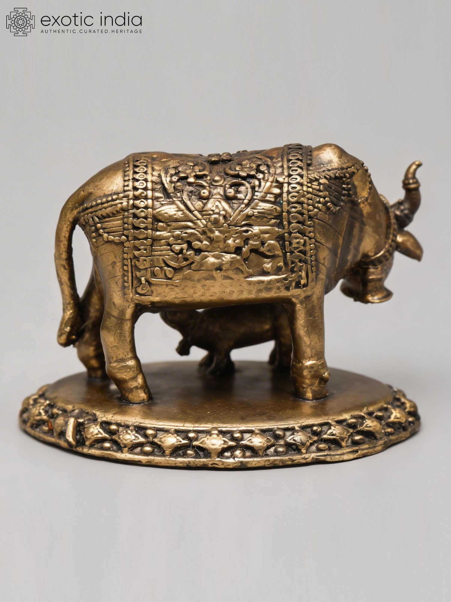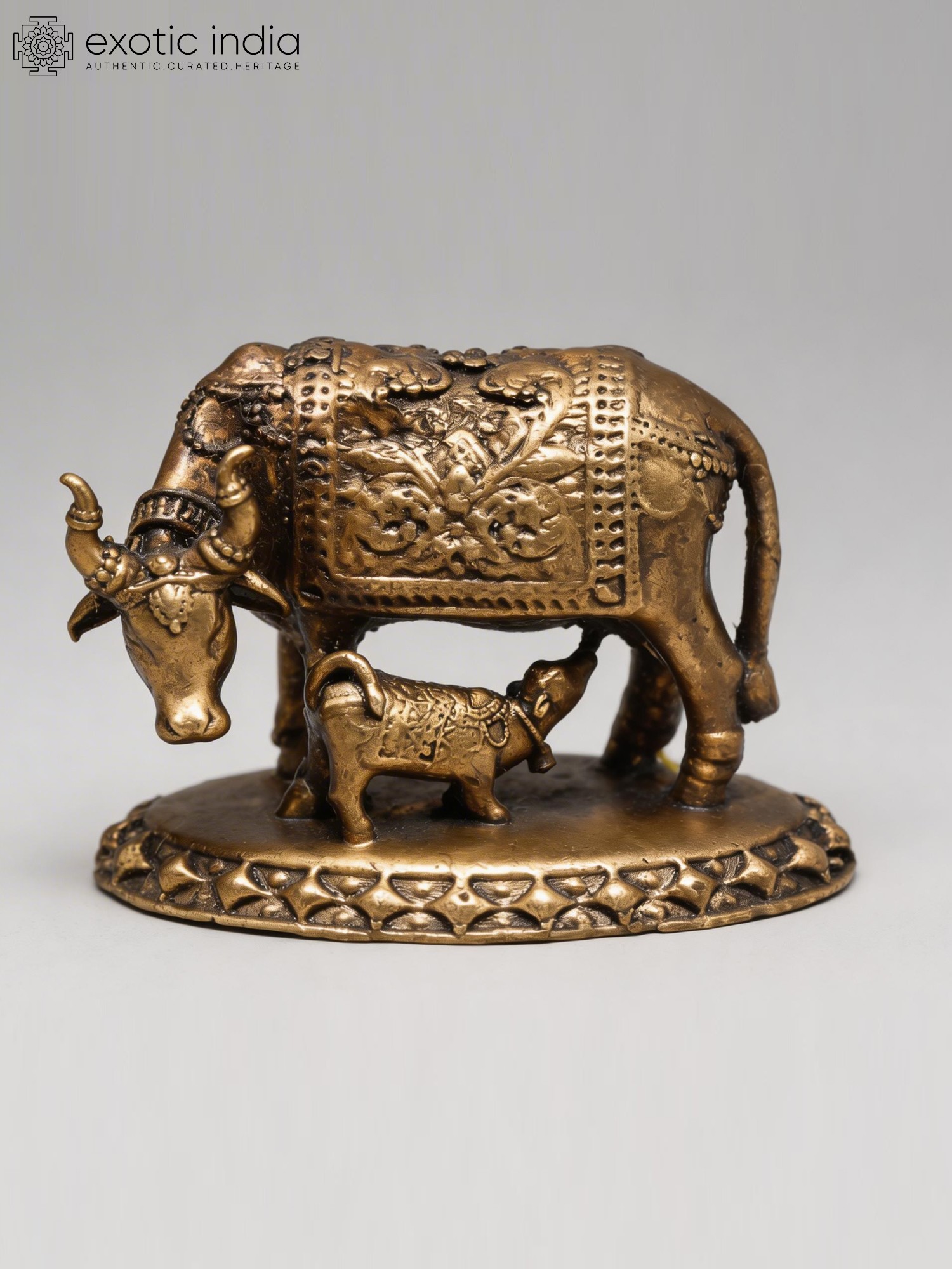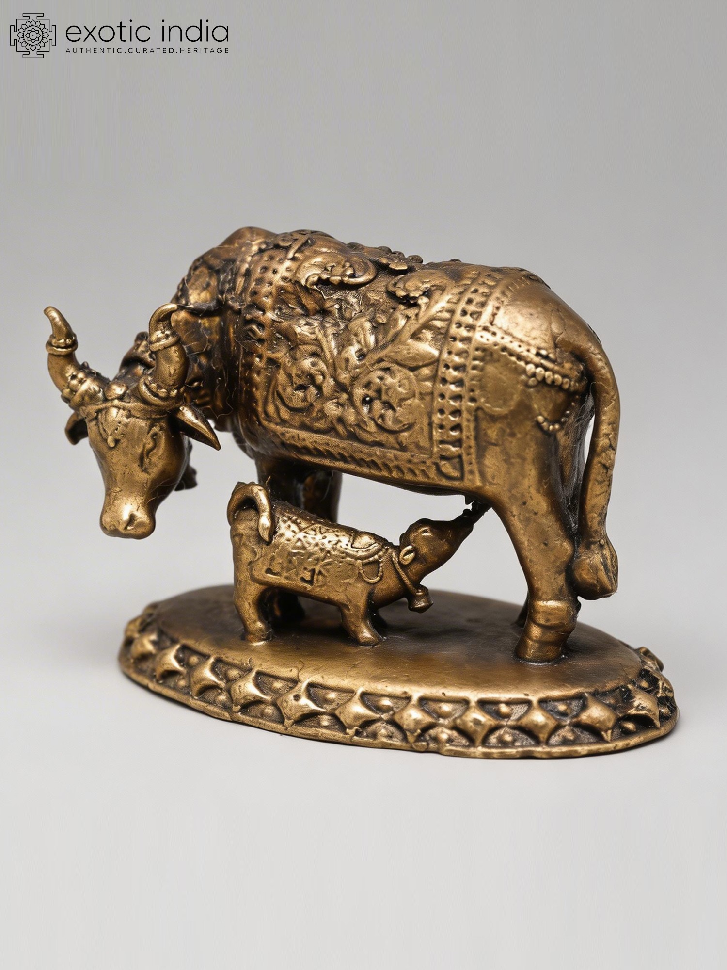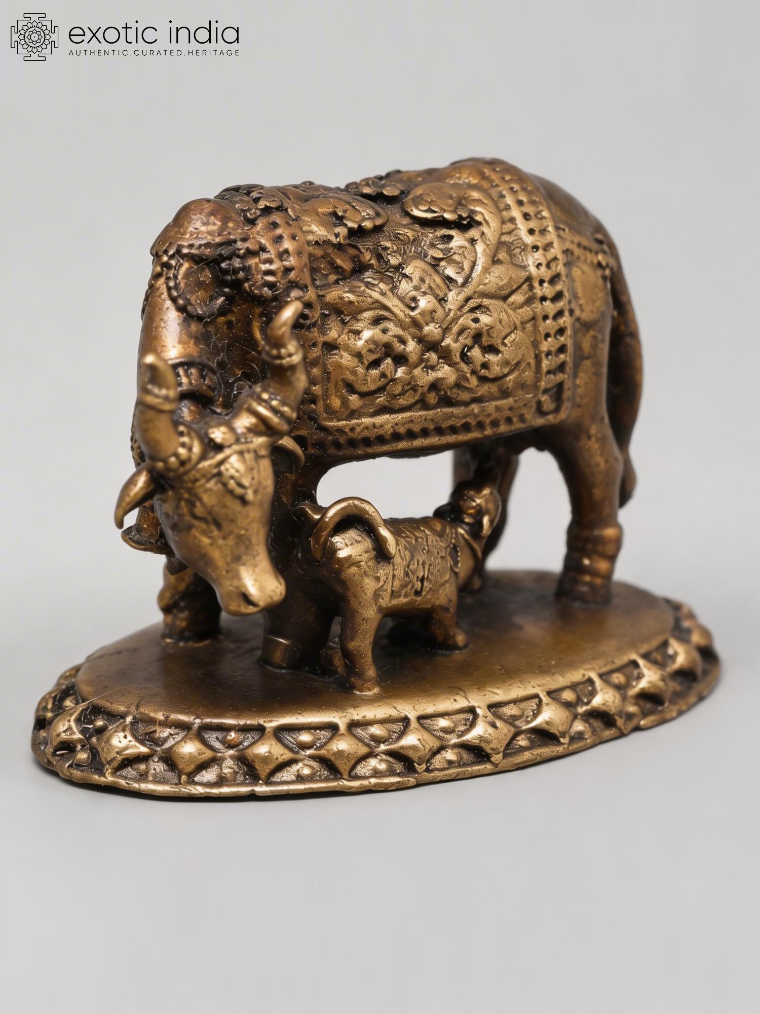 Small Idol of Goddess Kamadhenu with Calf | Copper Statue | Made in India